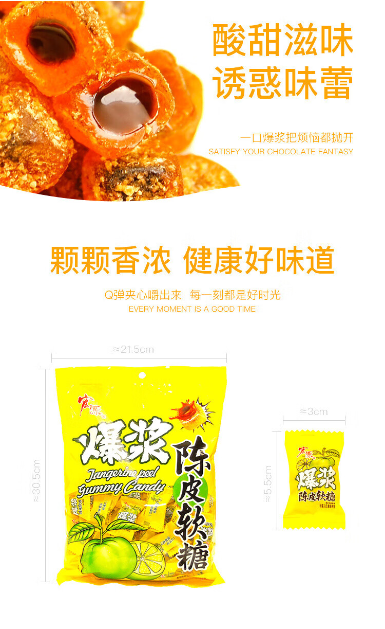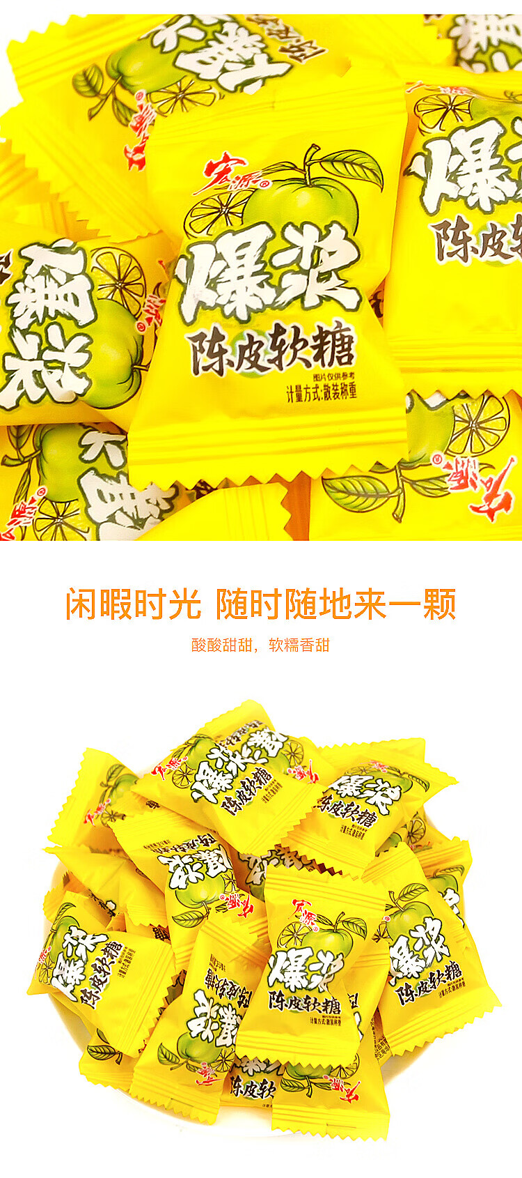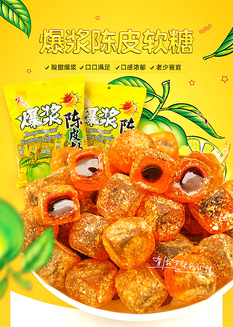 宏源爆浆陈皮糖软糖喜糖剥皮糖软糖橡皮糖批发万圣节糖果零食500克