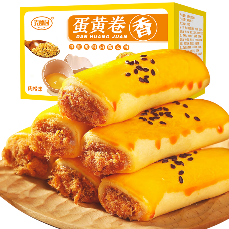 麦酥园蛋黄肉松卷酥小贝面包饼干蛋糕点心休闲零食儿童孕妇早餐食品500g
