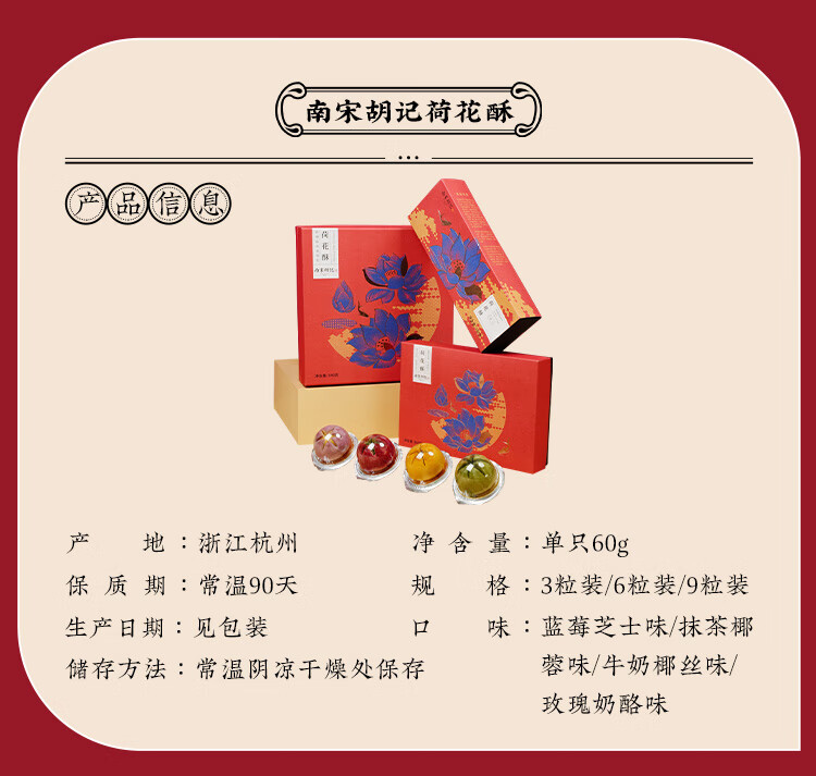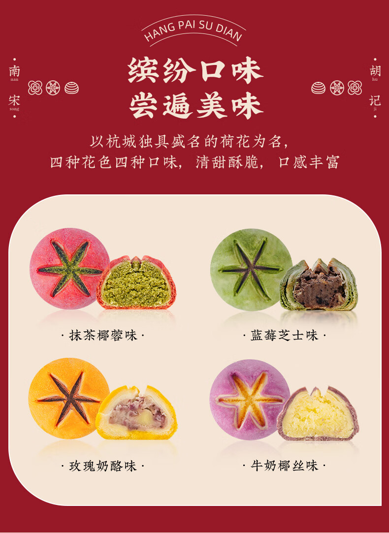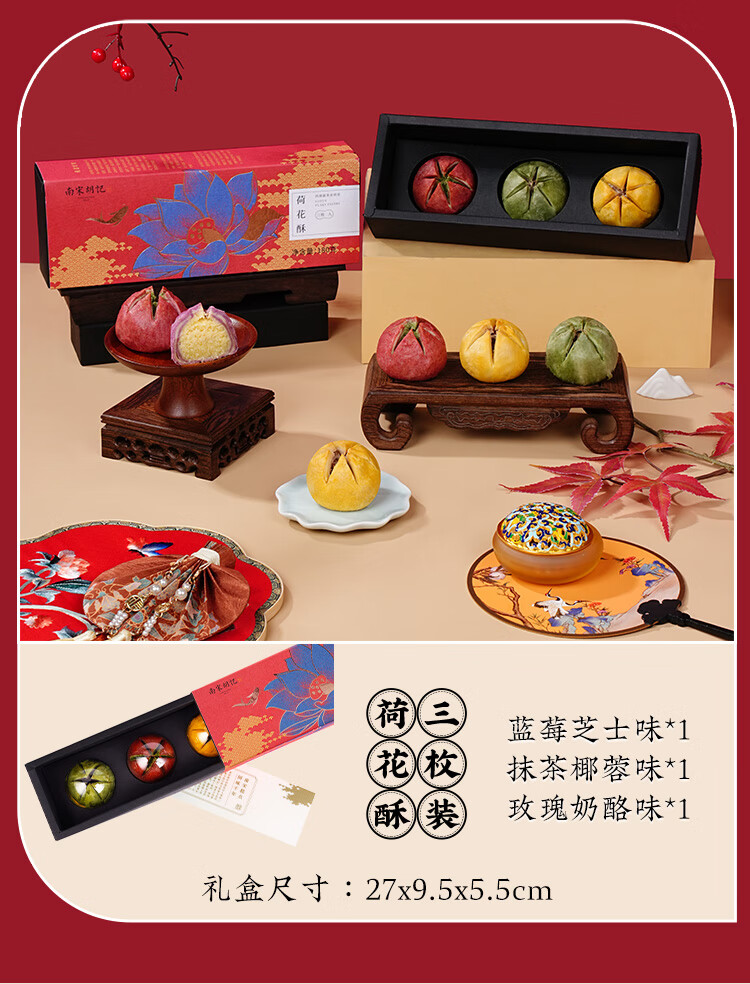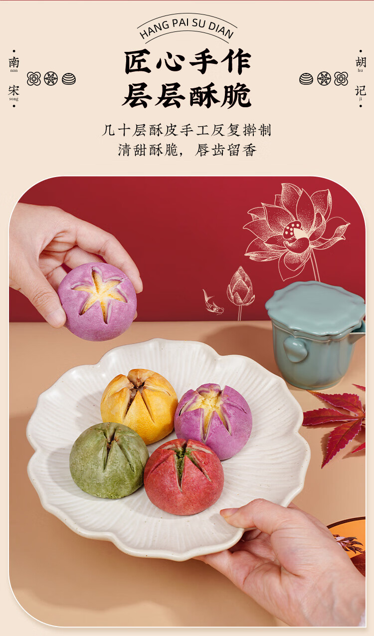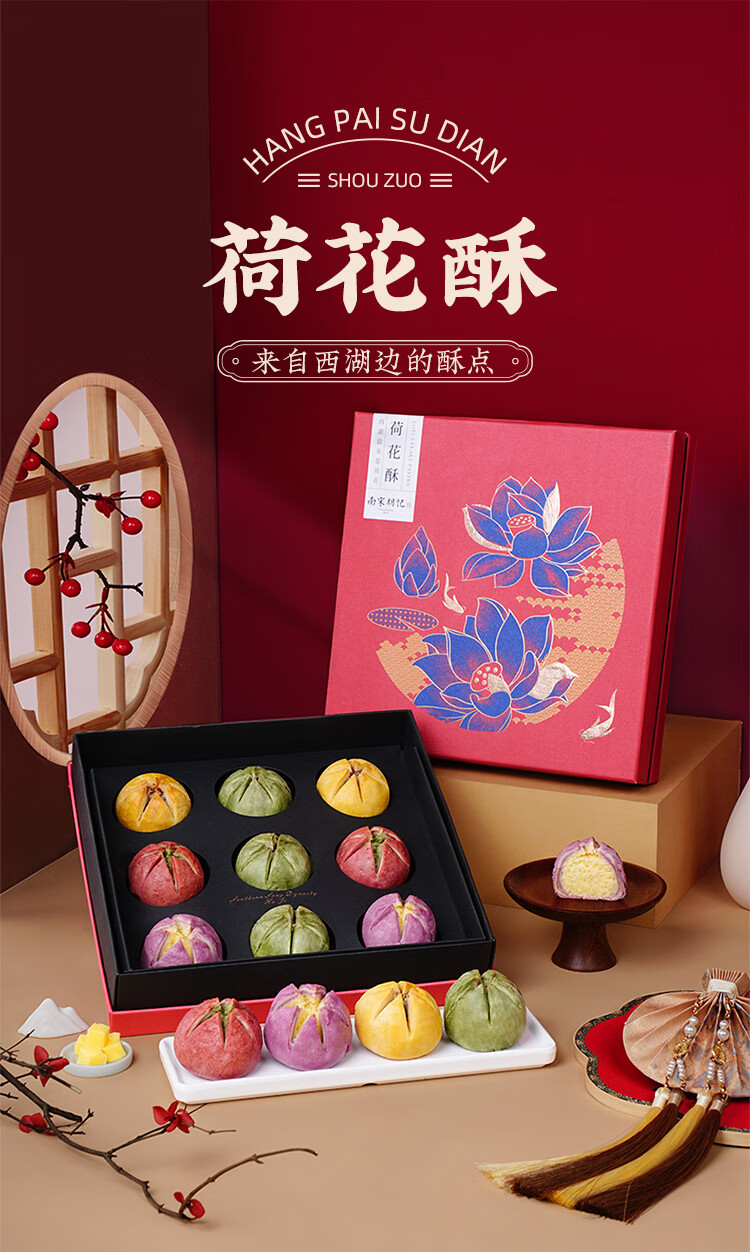 南宋胡记蛋黄杭州传统糕点中秋月饼礼盒团购定制点心伴手礼荷花酥540g/9枚