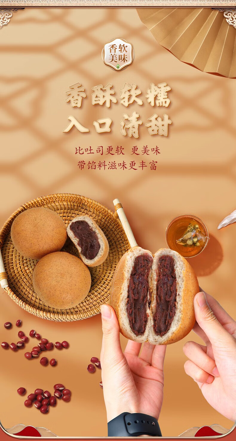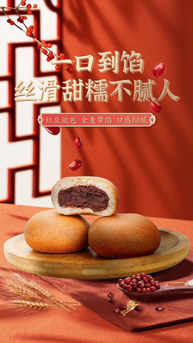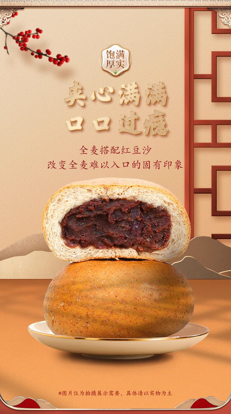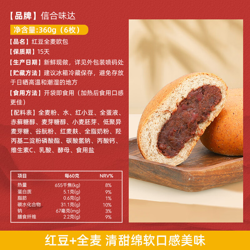 信合味达全麦面包欧包健身代餐饱腹粗粮早餐燕麦圆包无糖精轻卡零食-红豆