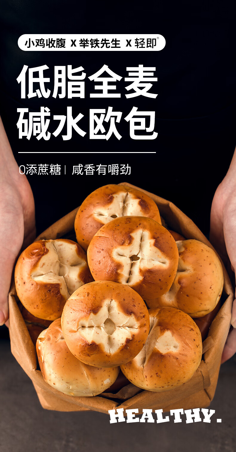 轻即芋泥奶酪碱水球全麦面包无糖精夹心欧包咸味代餐健身碱性饱腹零食