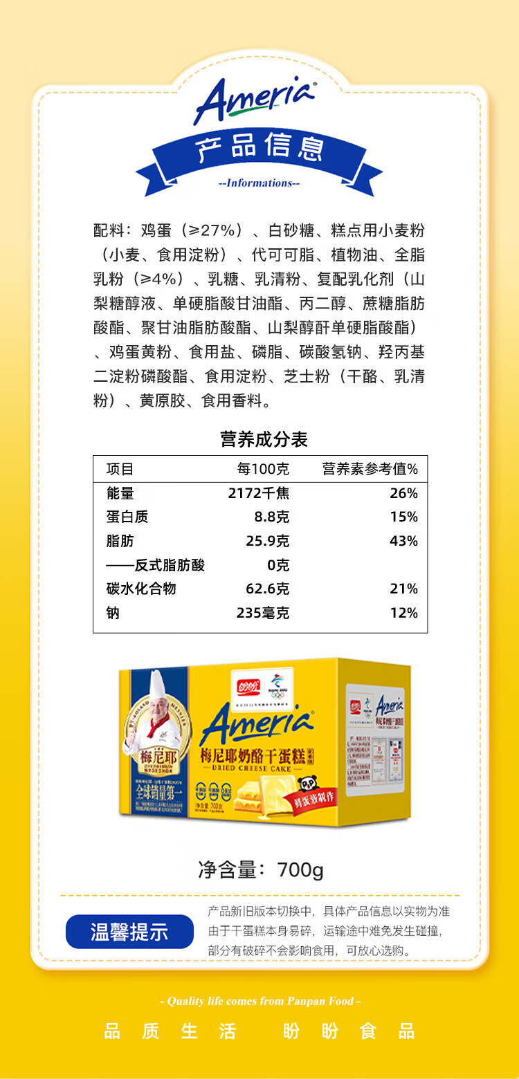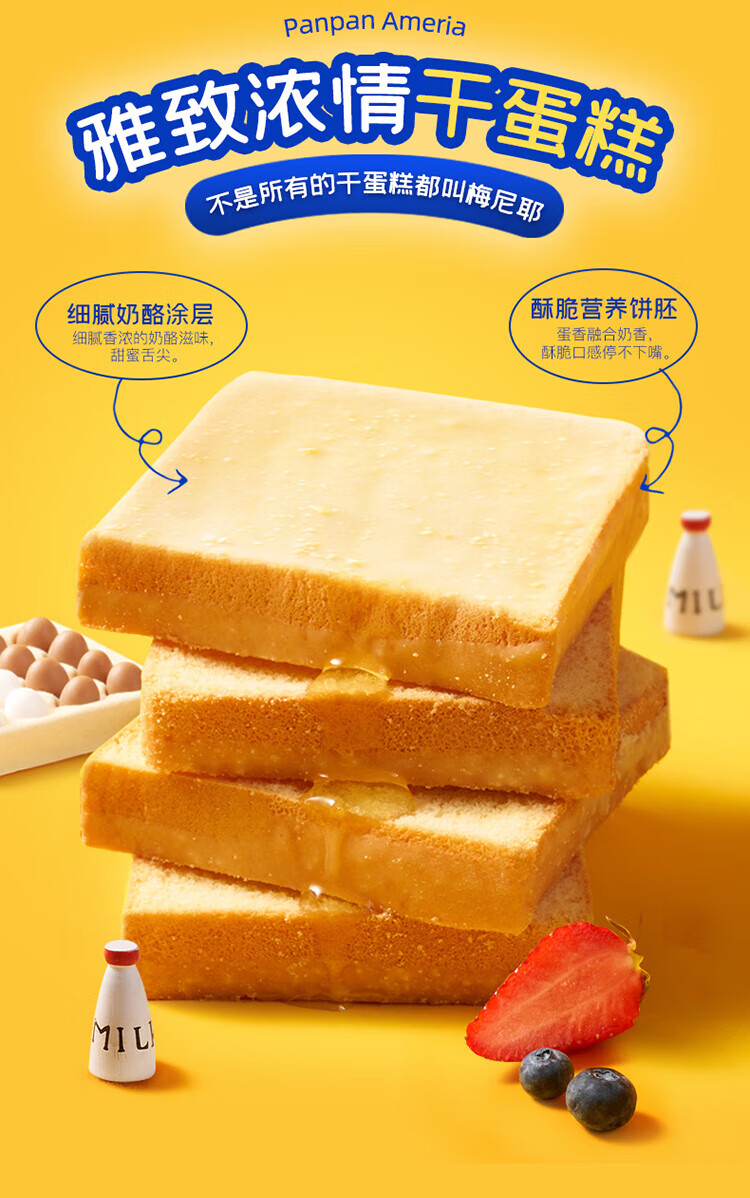 盼盼梅尼耶干蛋糕饼干 点心奶酪早餐休闲零食小吃奶香味700g/箱*2箱