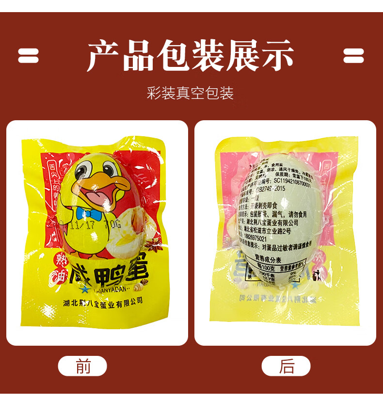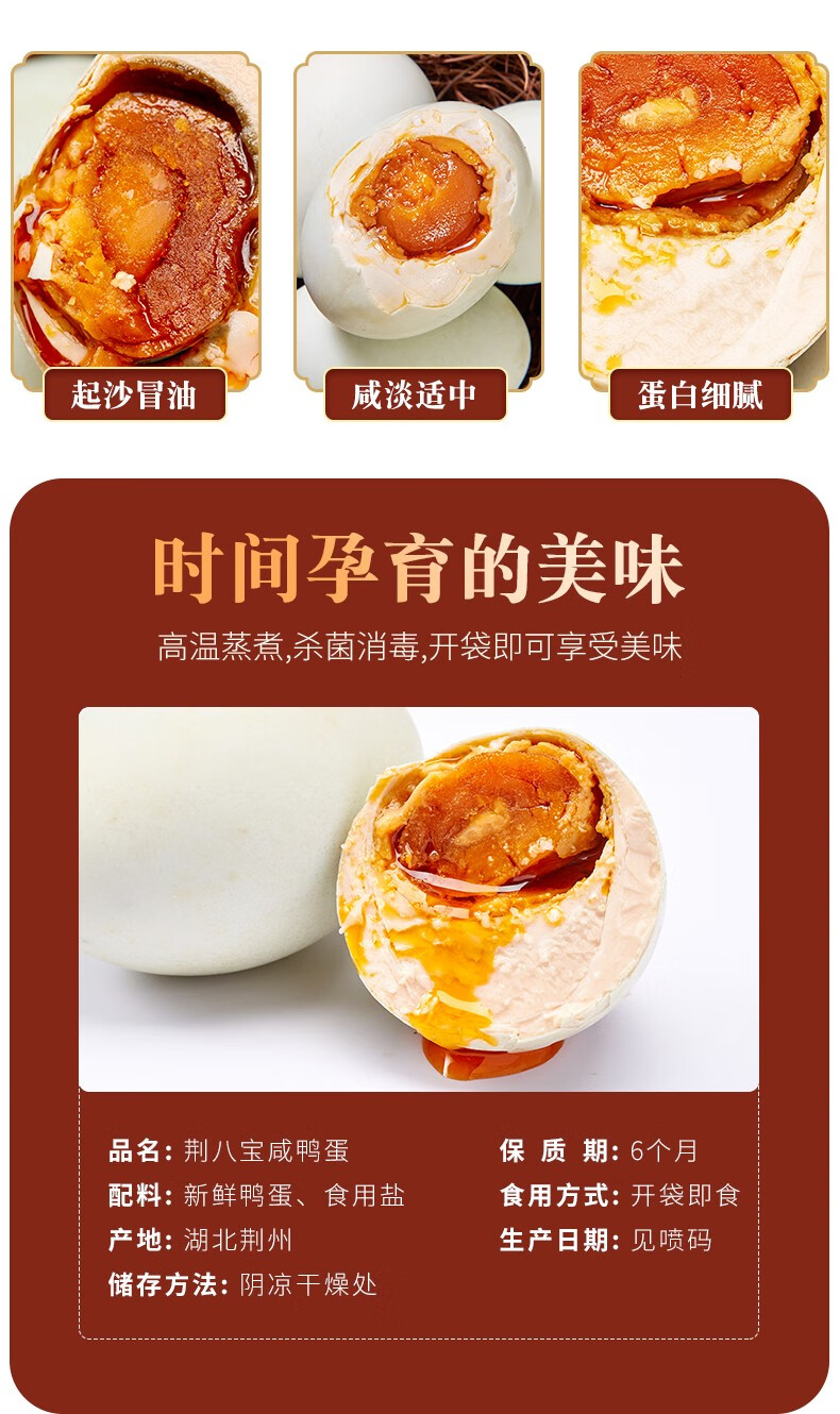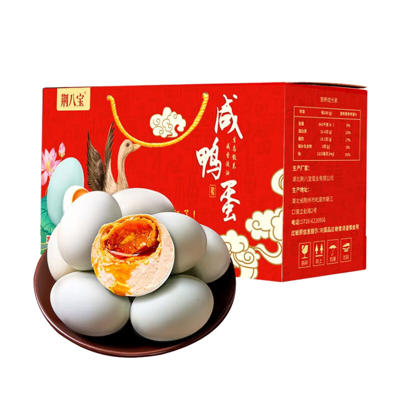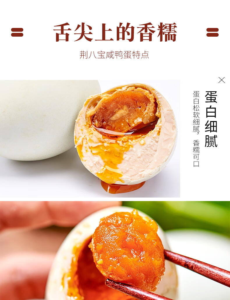 荆八宝 咸鸭蛋60g*20枚 湖北特产 红心流油蛋即食盐蛋腌鸭蛋 包装随机
