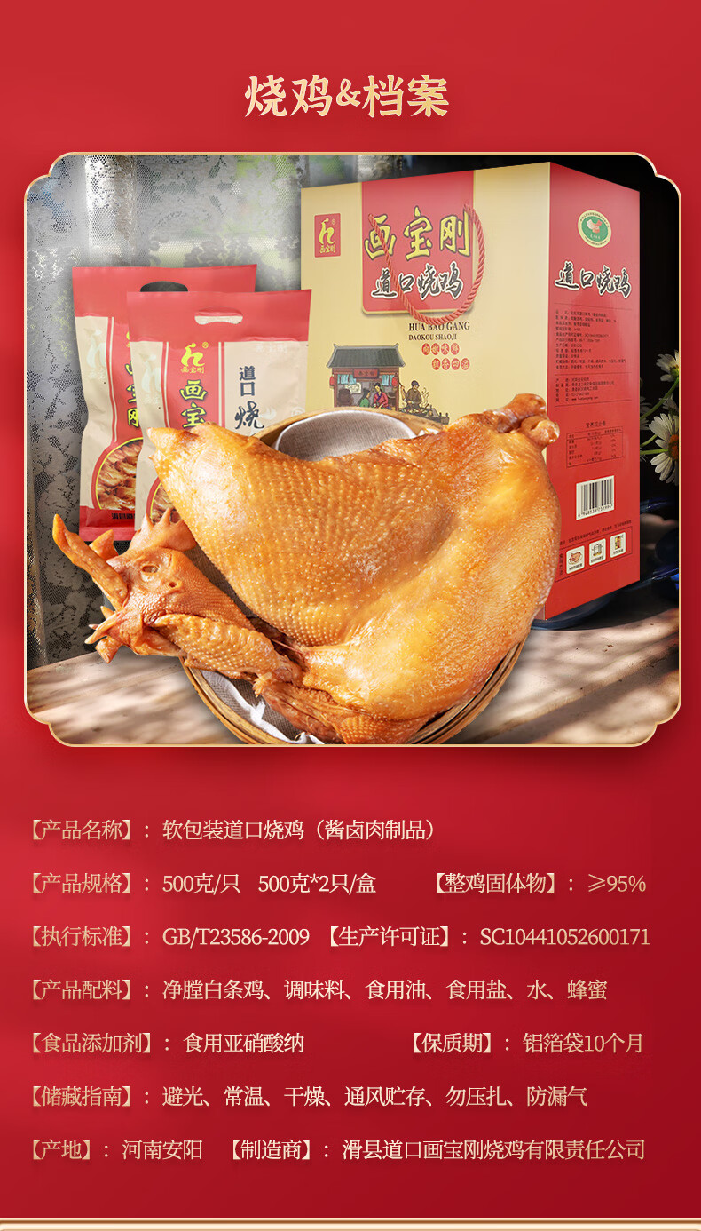 画宝刚道口烧鸡礼盒500克*2袋河南老字号特产中秋礼盒熟食腊味企业团购