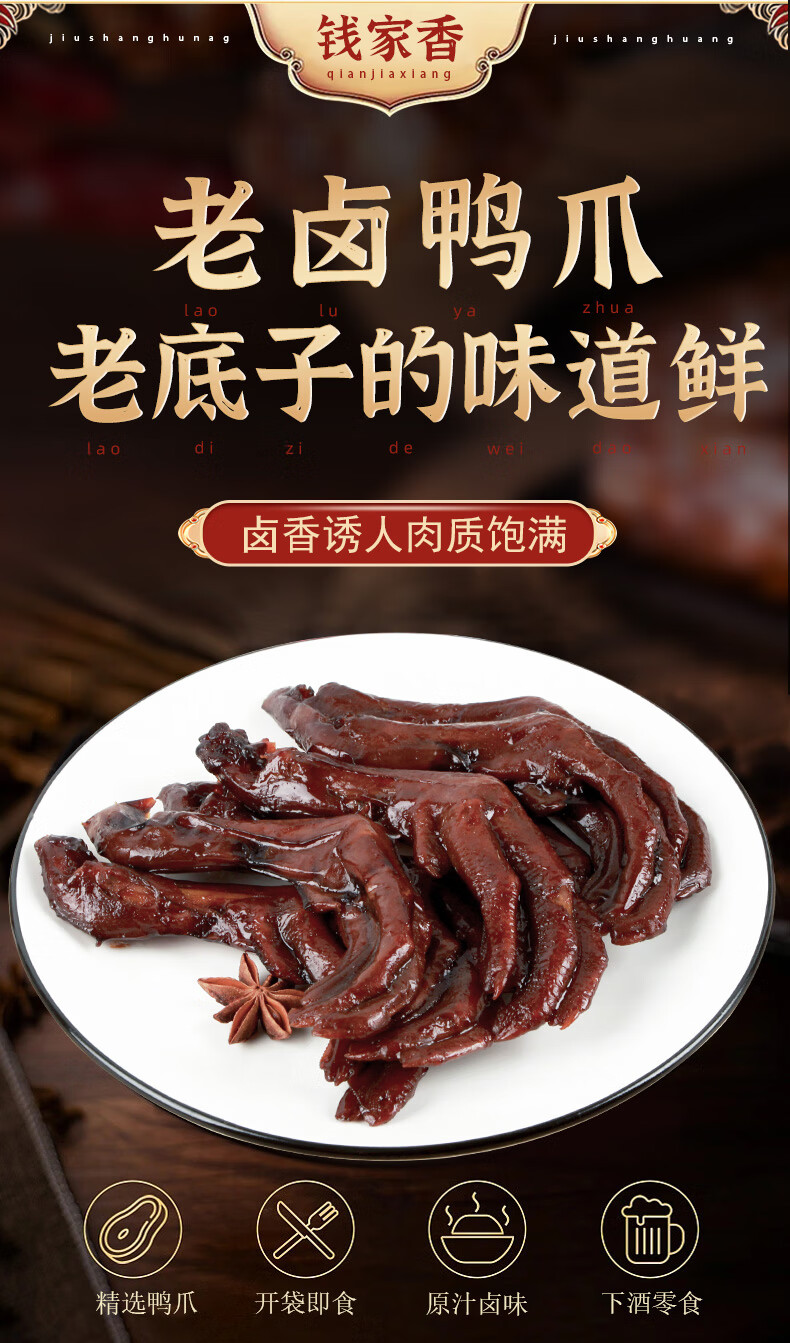 钱家香钱家香老卤鸭爪土鸭掌卤休闲零食真空独立小包装鸭爪麻辣味10个装