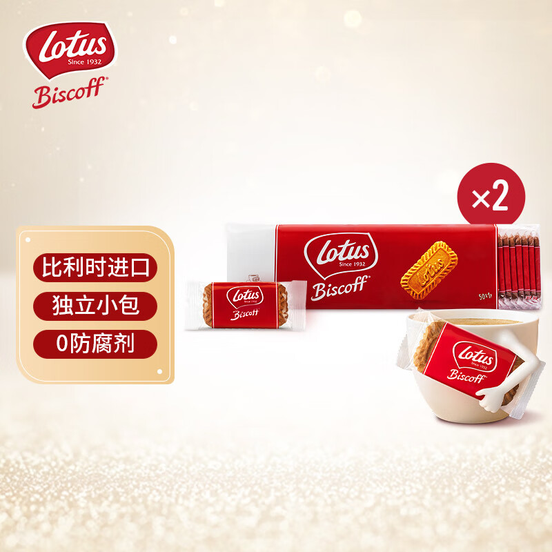 和情(LOTUS)比利时原装进口缤咖时焦糖饼干312.5g*2办公室下午茶独立装100片