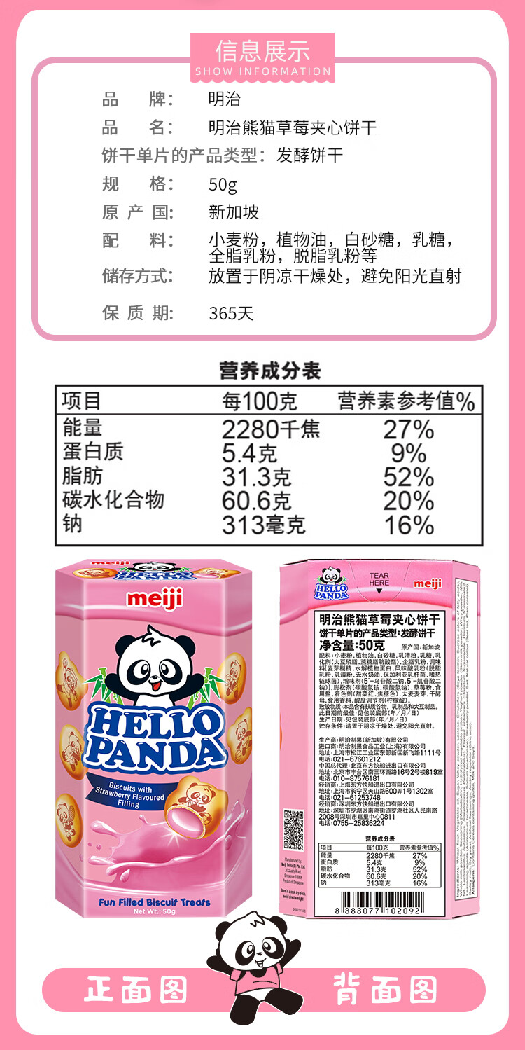 明治(Meiji)小熊饼干草莓夹心儿童零食饼干蛋糕休闲食品小零食 独立包装50g