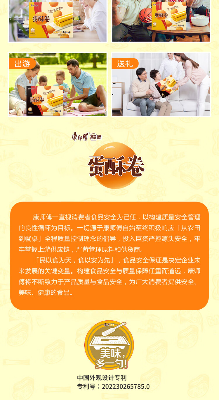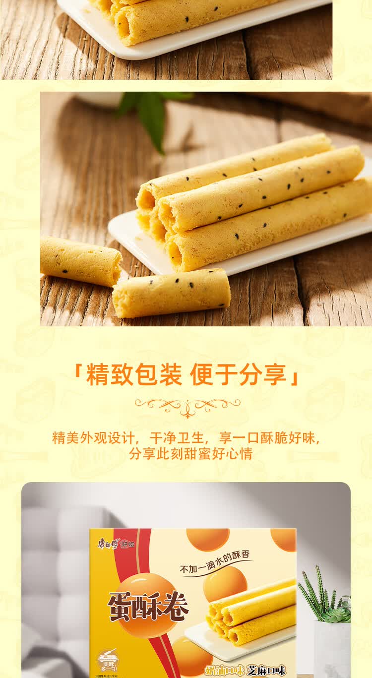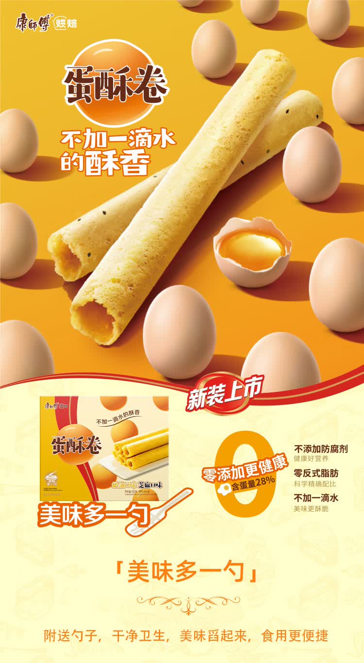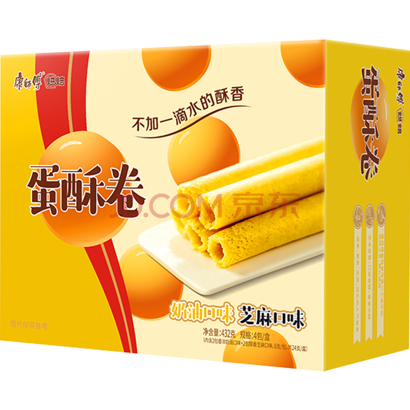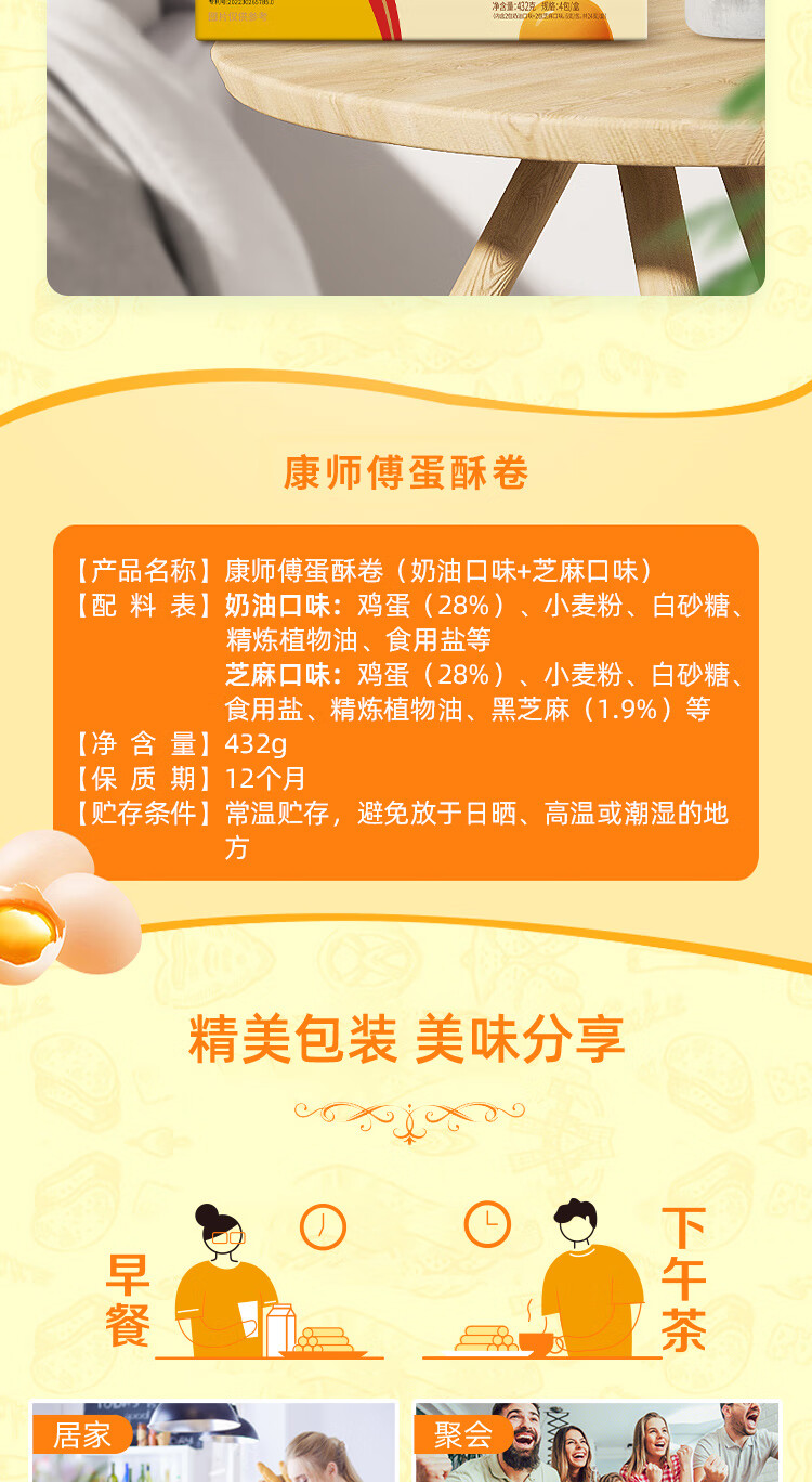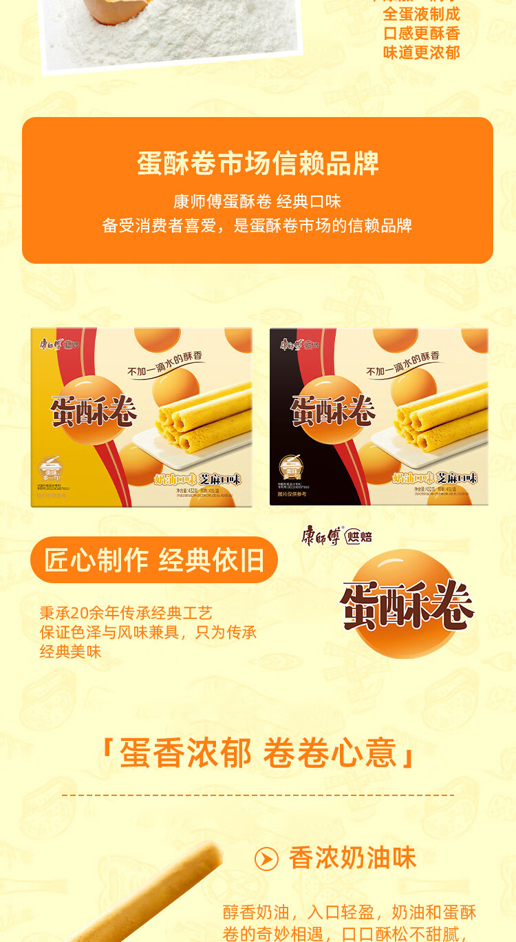 康师傅 蛋卷鸡蛋卷饼干糕点儿童休闲零食礼盒28%含蛋0添加水混合味432g