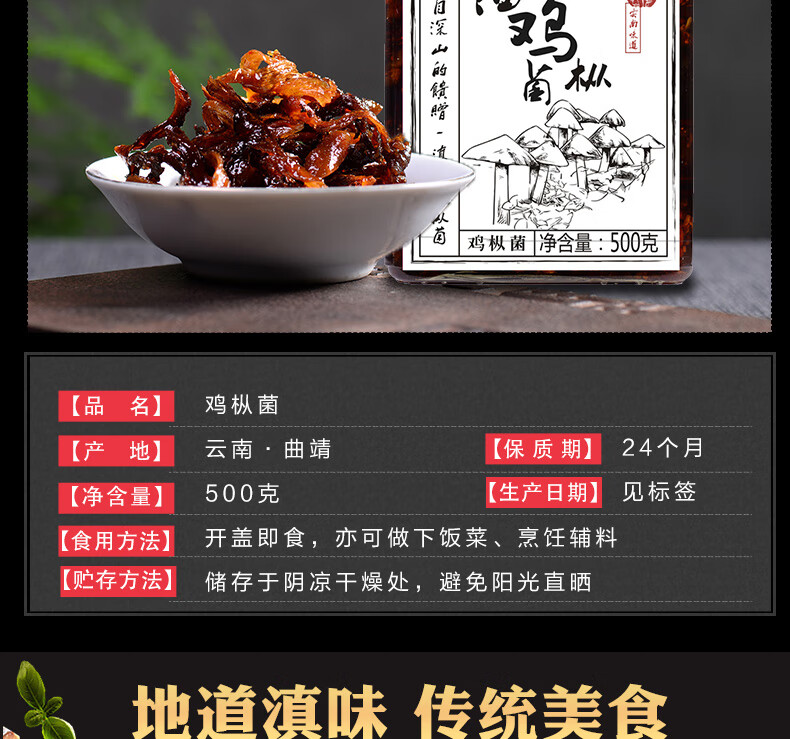 滇园 油鸡枞菌500g 云南特产 调味品 休闲零食 下饭菜 即食蘑菇 鸡枞油