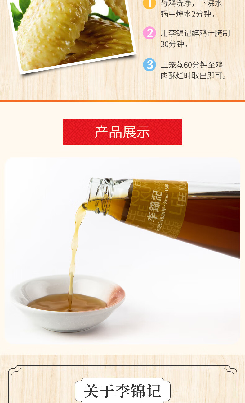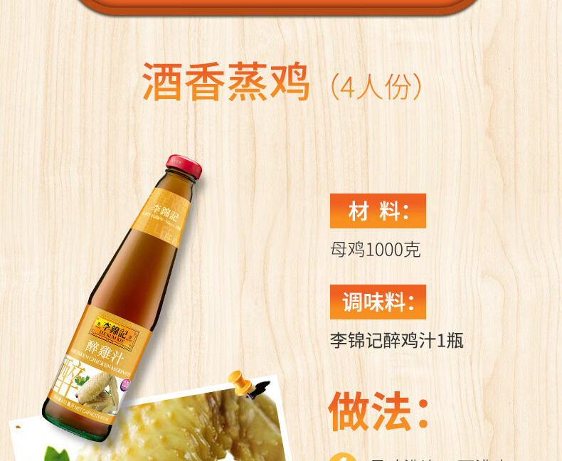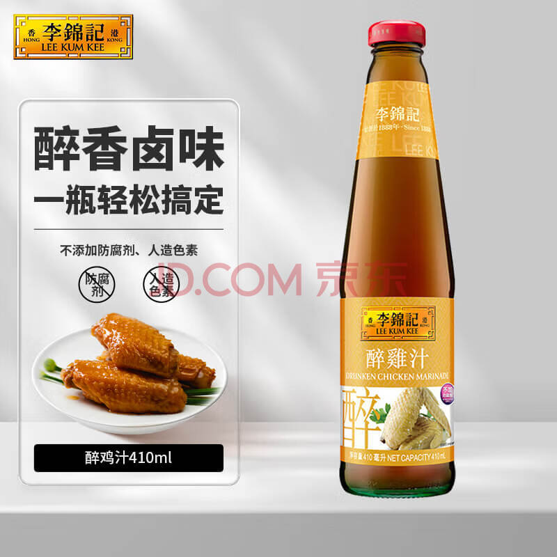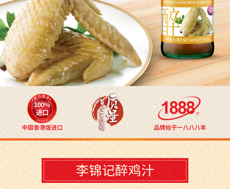 李锦记醉鸡汁410ml 0添加防腐剂 中国香港版进口 卤汁醉虾烹饪料