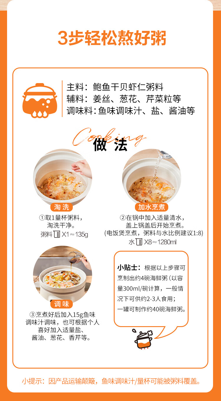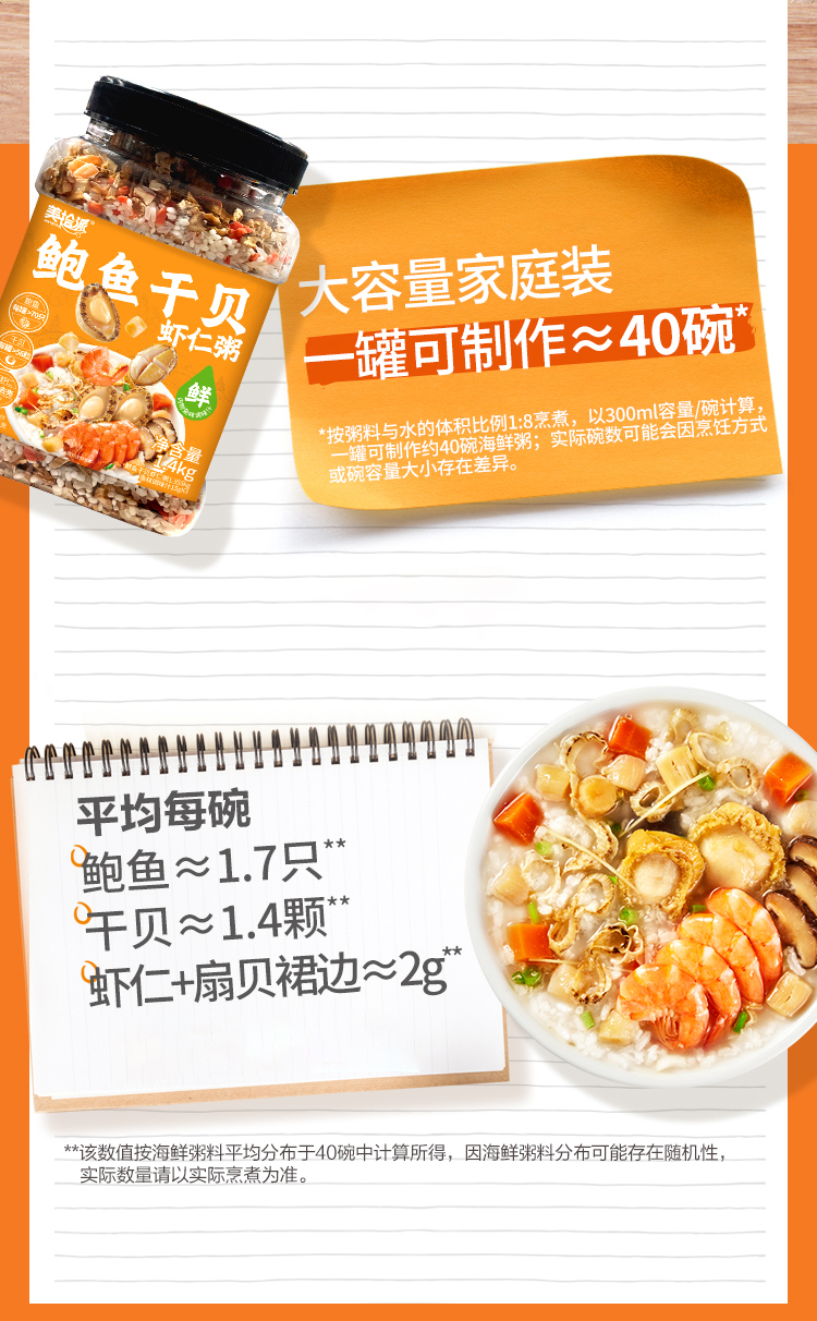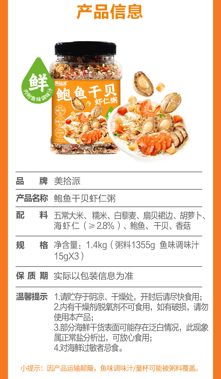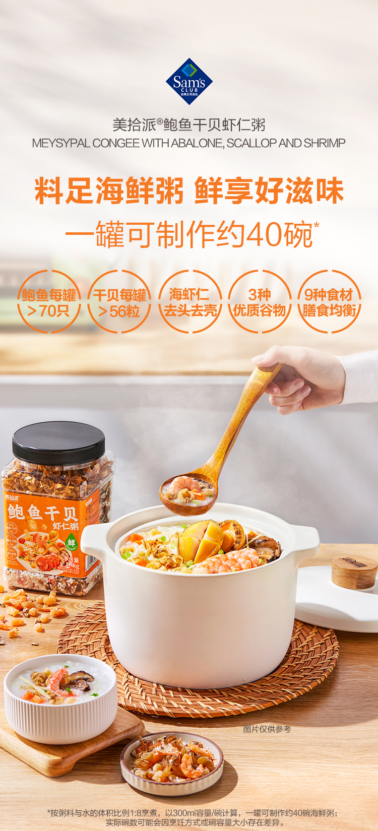 Sam's美拾派 鲍鱼干贝虾仁粥1.4kg(粥料1355g+鱼味调味汁15g*3)