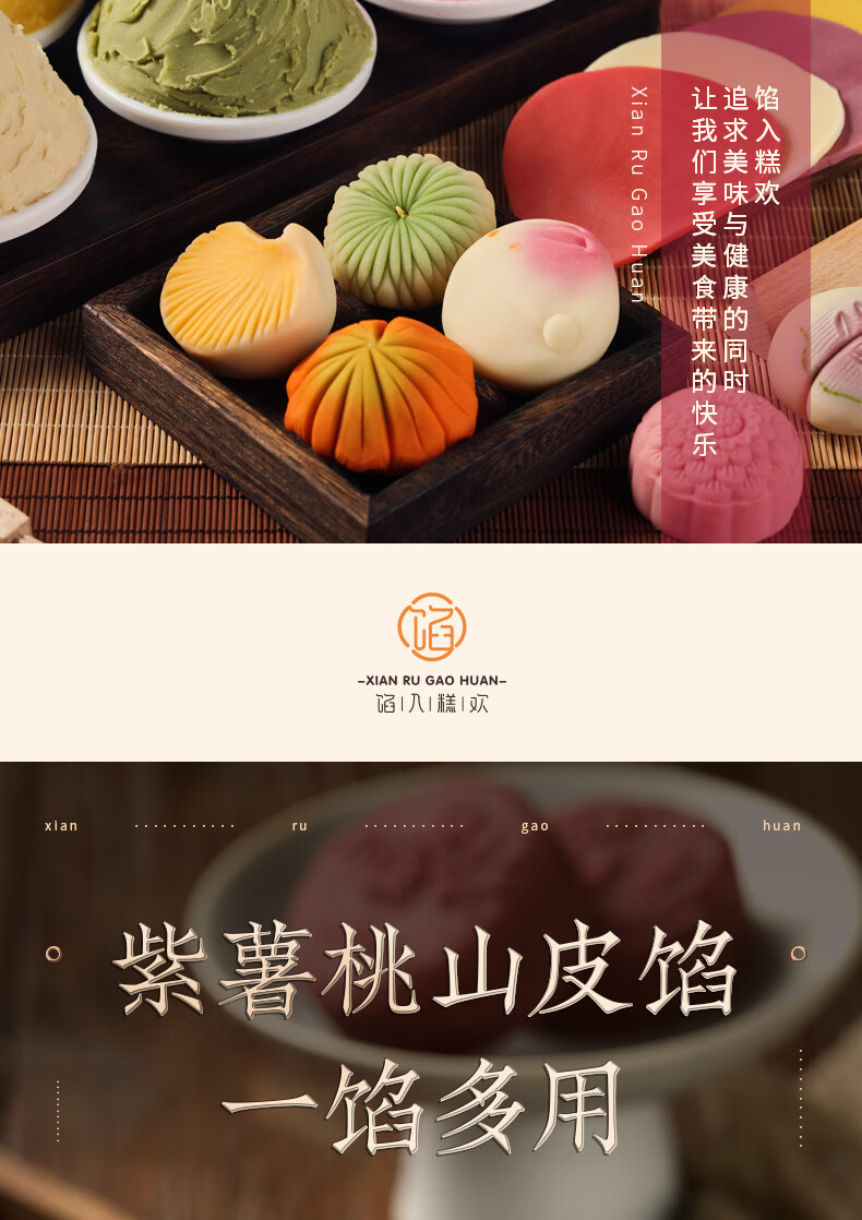 馅入糕欢 紫薯桃山皮500g 月饼皮馅料糕点心和果子DIY材料半成品烘焙原料