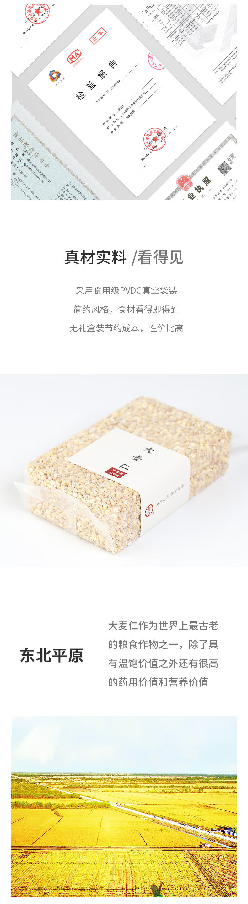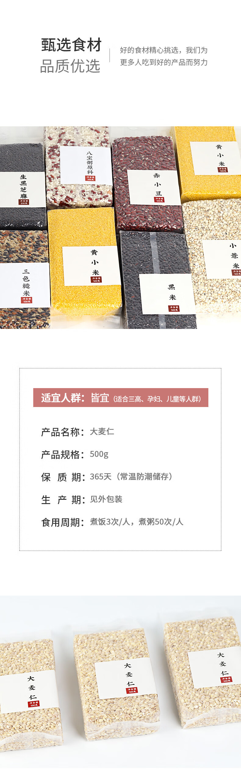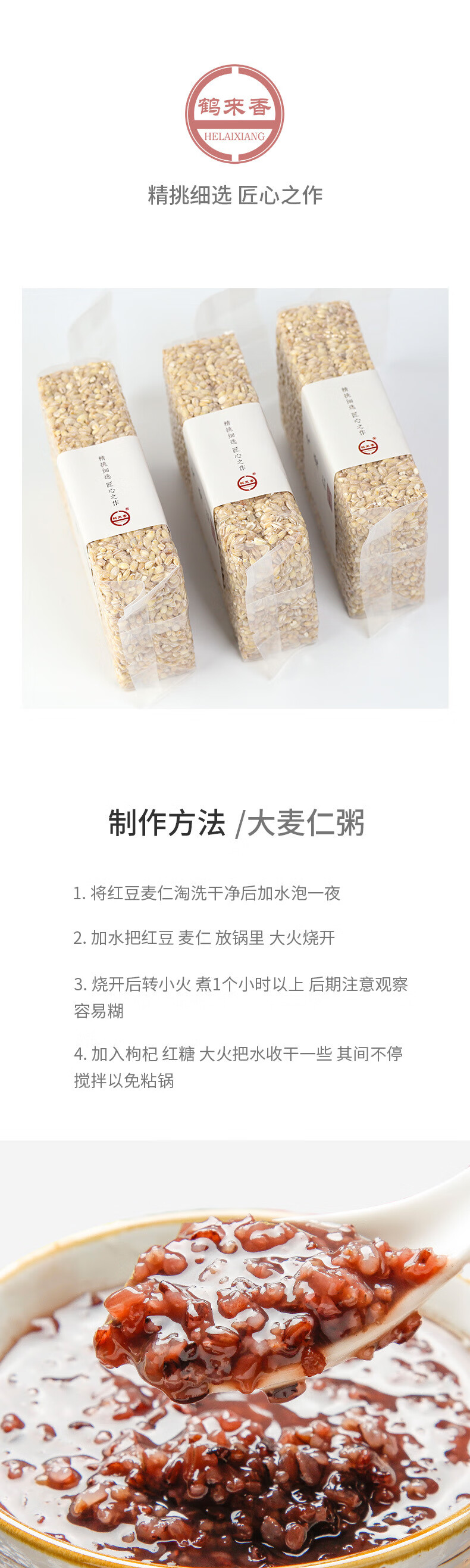 鹤来香(HELAIXIANG)五谷杂粮粗粮 养生粥原料 真空包装大麦仁500g*3袋