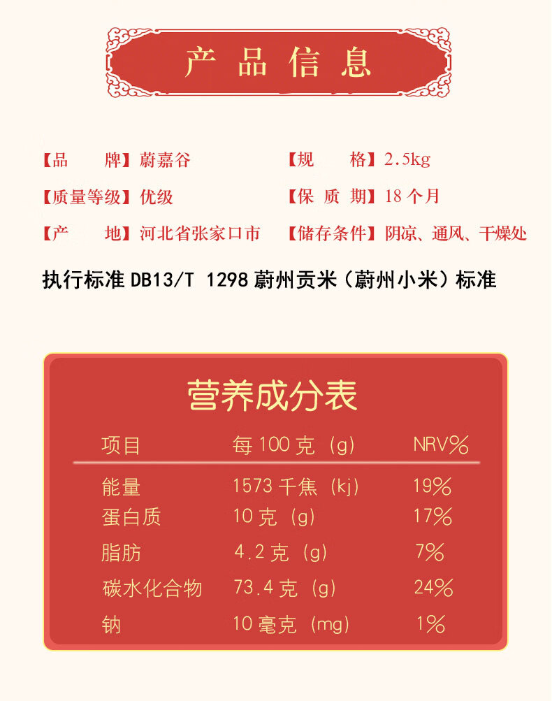 蔚嘉谷黄小米 蔚州贡米 蔚县小米 2.5kg/5斤 真空包装 五谷杂粮 粥米