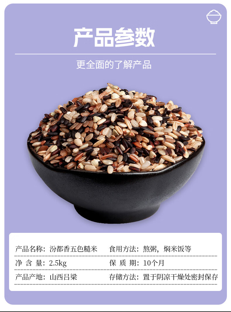 汾都香五色糙米 2.5kg(黑米 糙米 燕麦 红米 青稞 杂粮 粗粮 大米伴侣