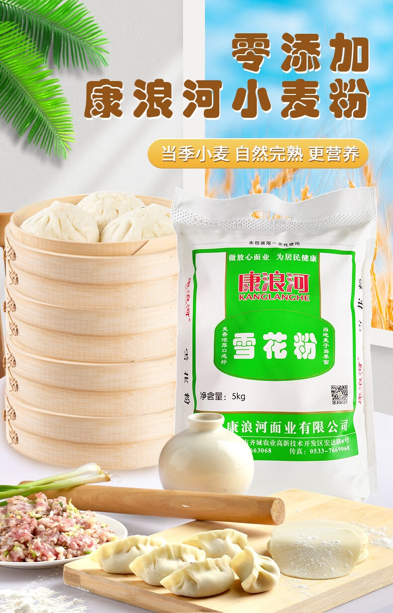 康浪河面粉中筋小麦粉 5kg雪花粉 包子馒头水饺烘焙白面粉 家用面粉