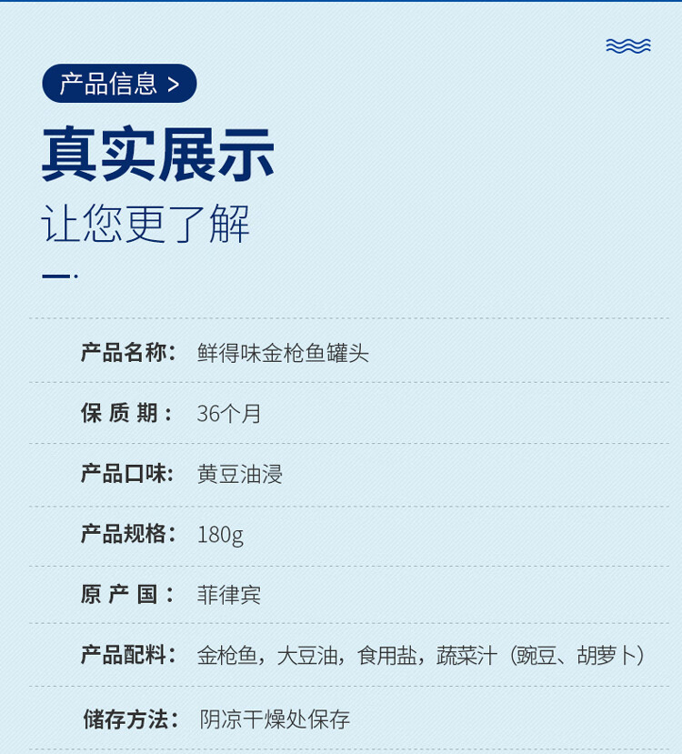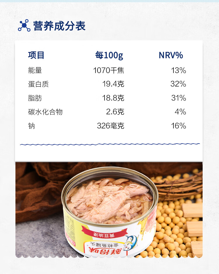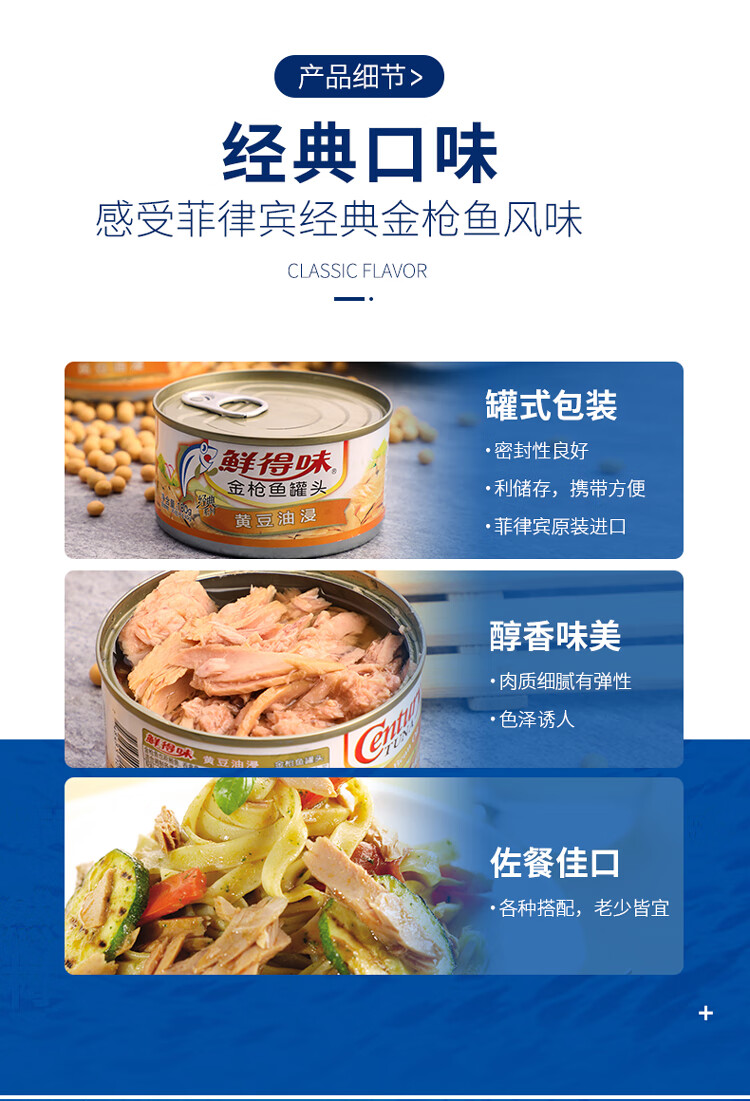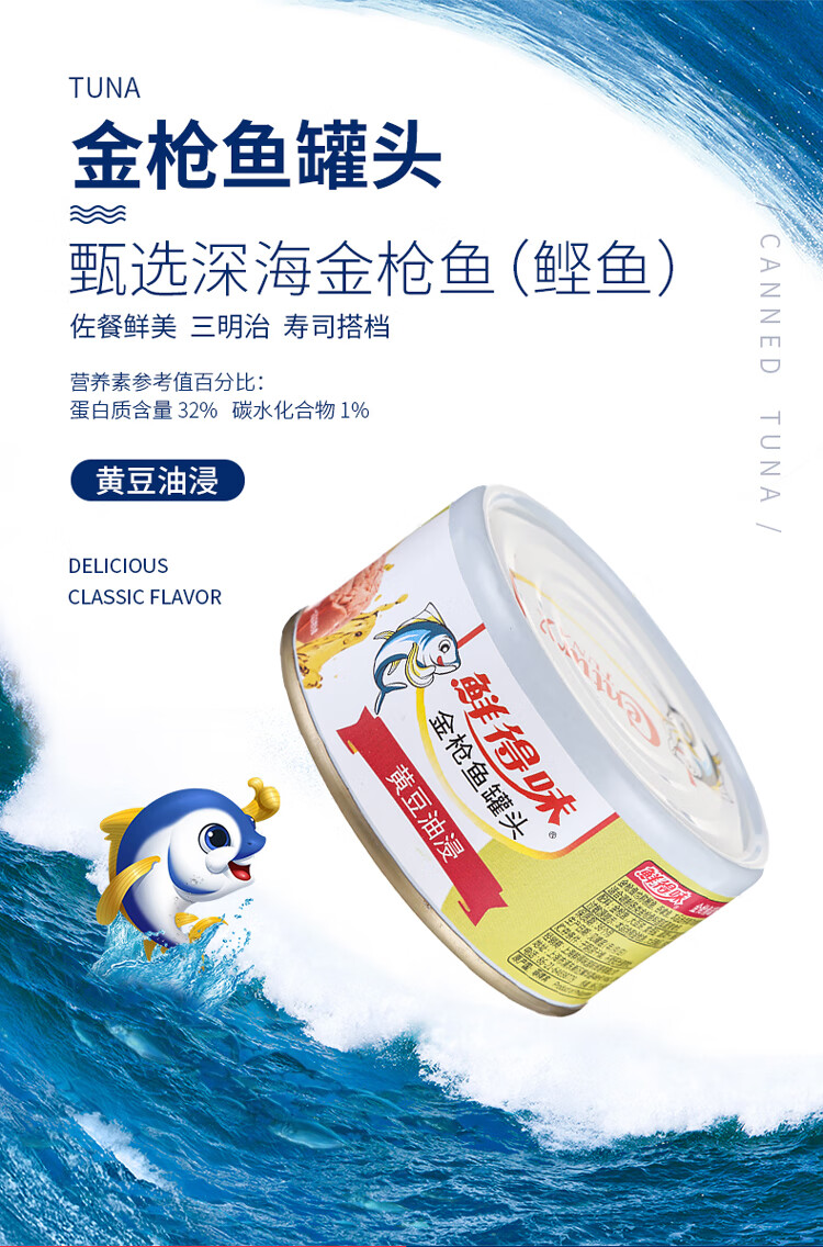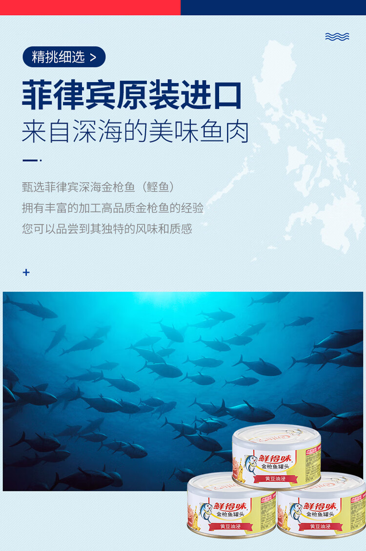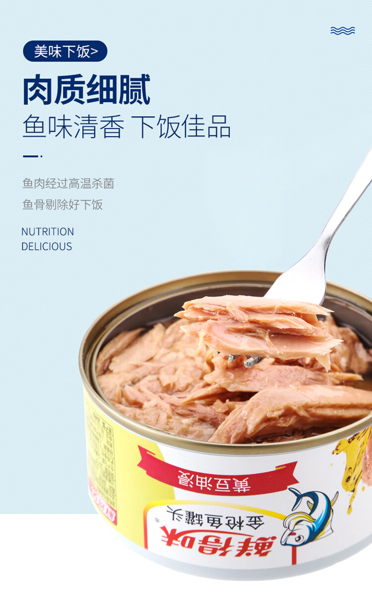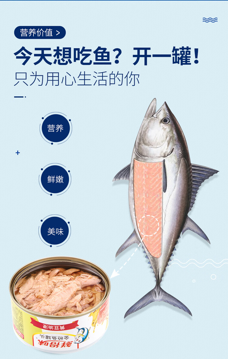 鲜得味 金枪鱼罐头180g 黄豆油浸 方便速食 即食健身轻食