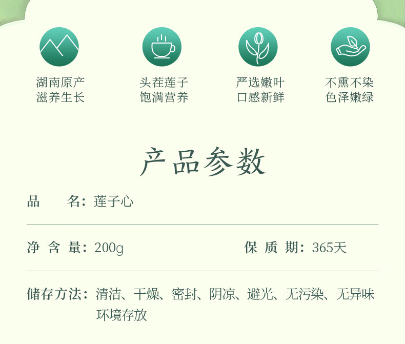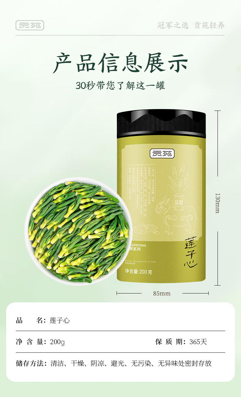 贡苑莲子心200g莲子芯精选品质湘潭干货莲子心搭淡竹叶麦冬菊花养生茶