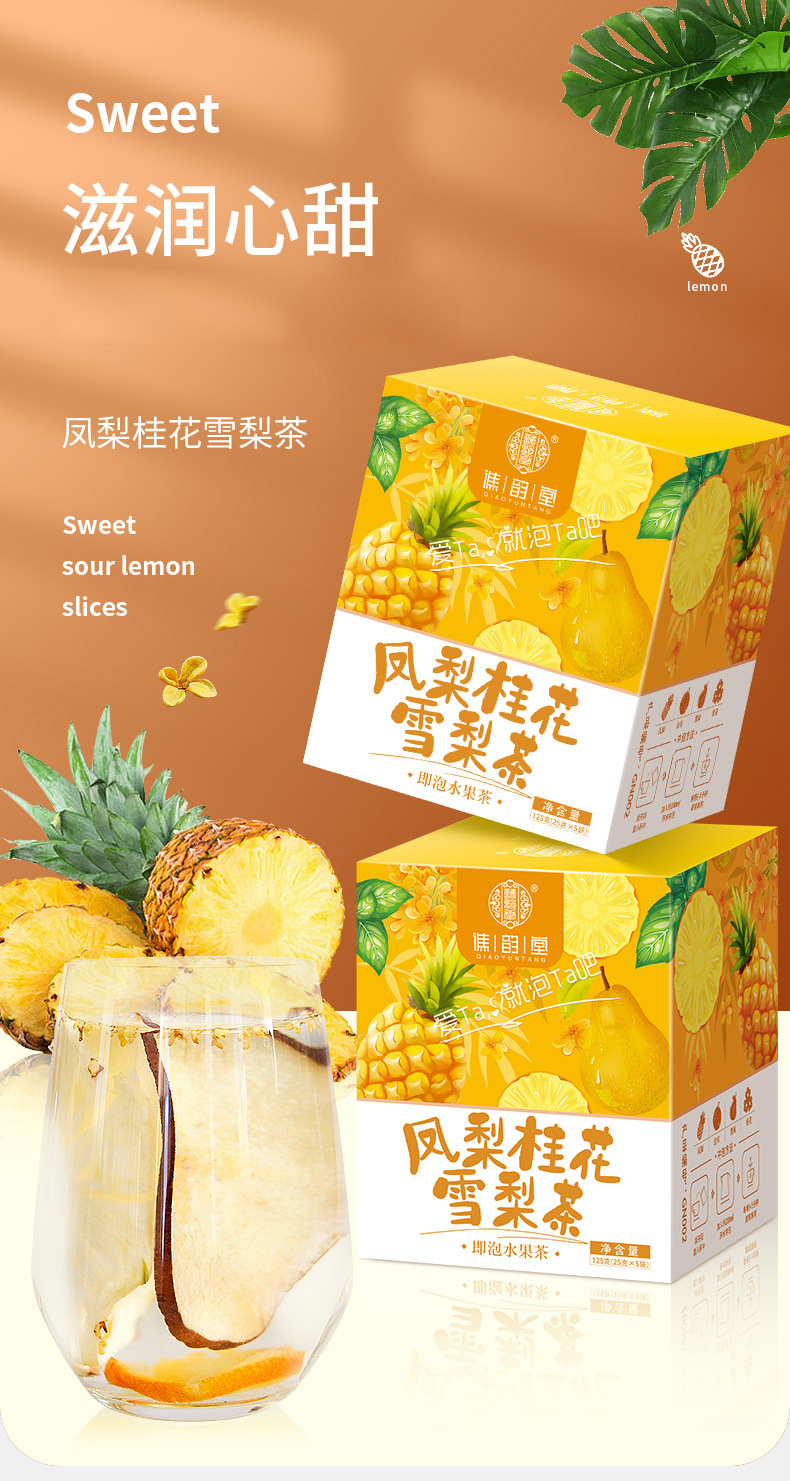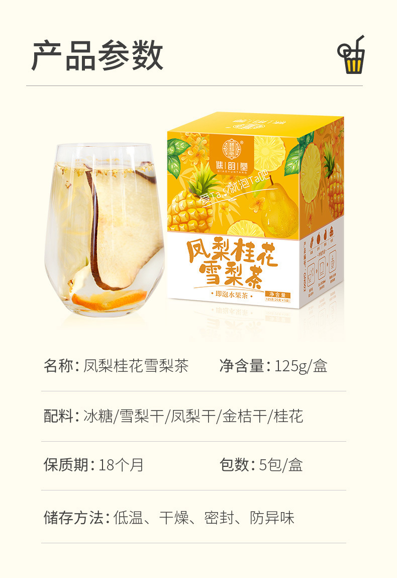 谯韵堂 凤梨桂花雪梨茶 125g/盒(5小袋)3盒装 GN002