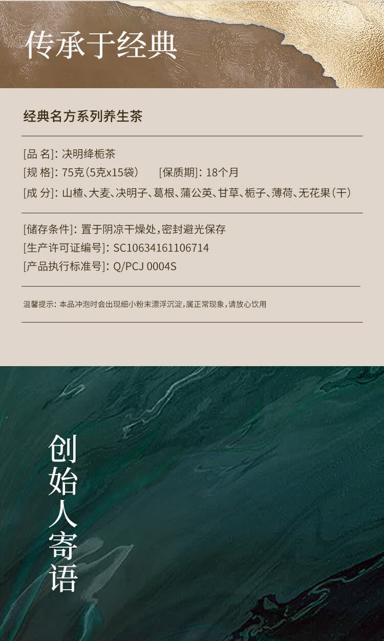 正执新汉方养生茶决明子山楂蒲公英绛栀茶(5g*15袋)解腻泡水喝的茶包
