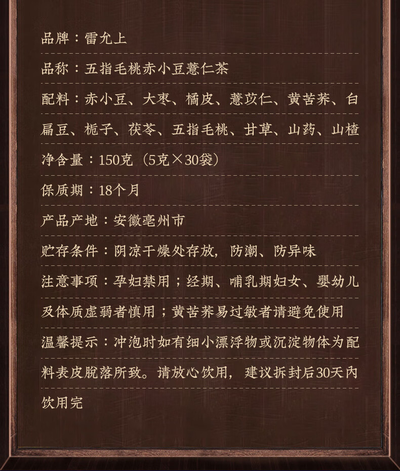 雷允上养生茶 五指毛桃红豆薏米茶苦荞茶赤小豆薏仁茶组合花茶 150g/袋