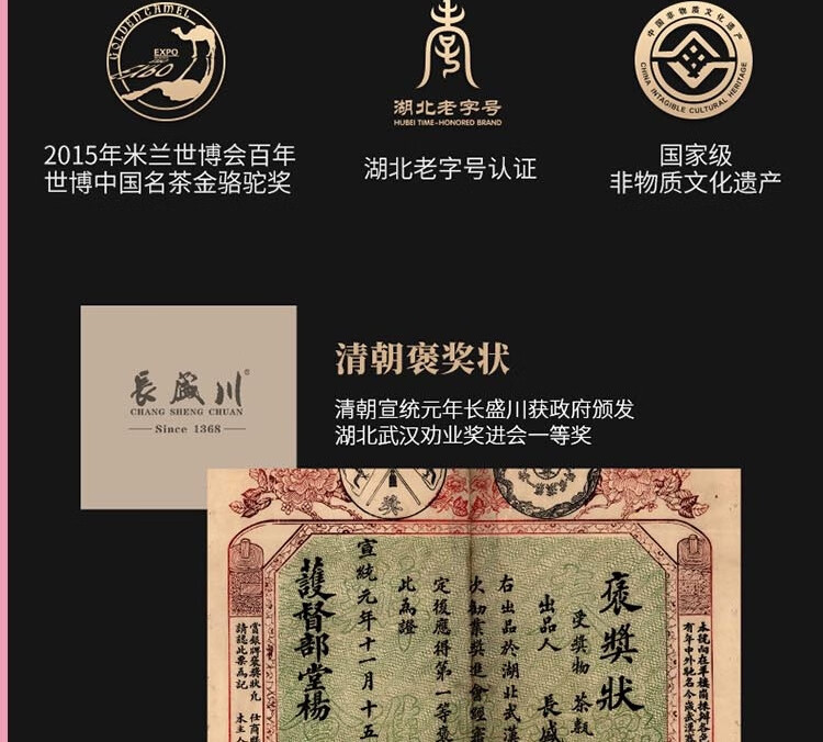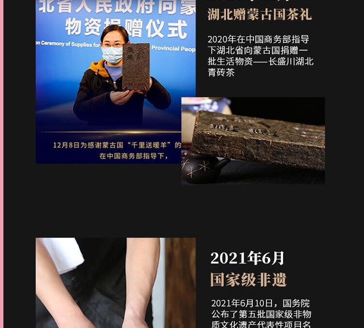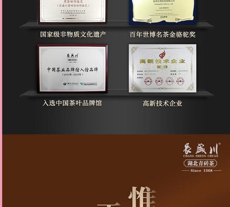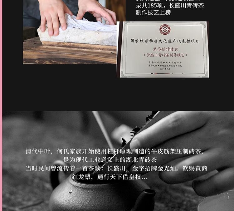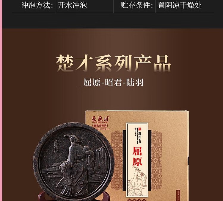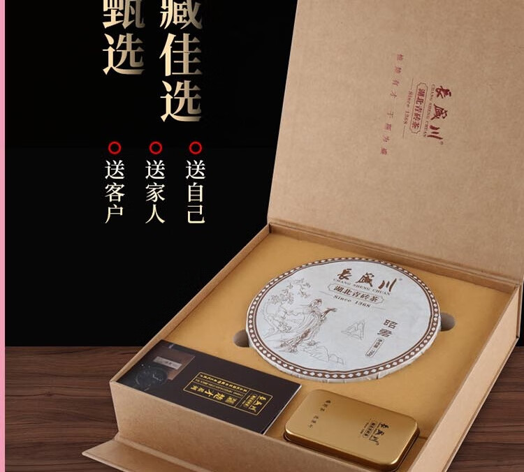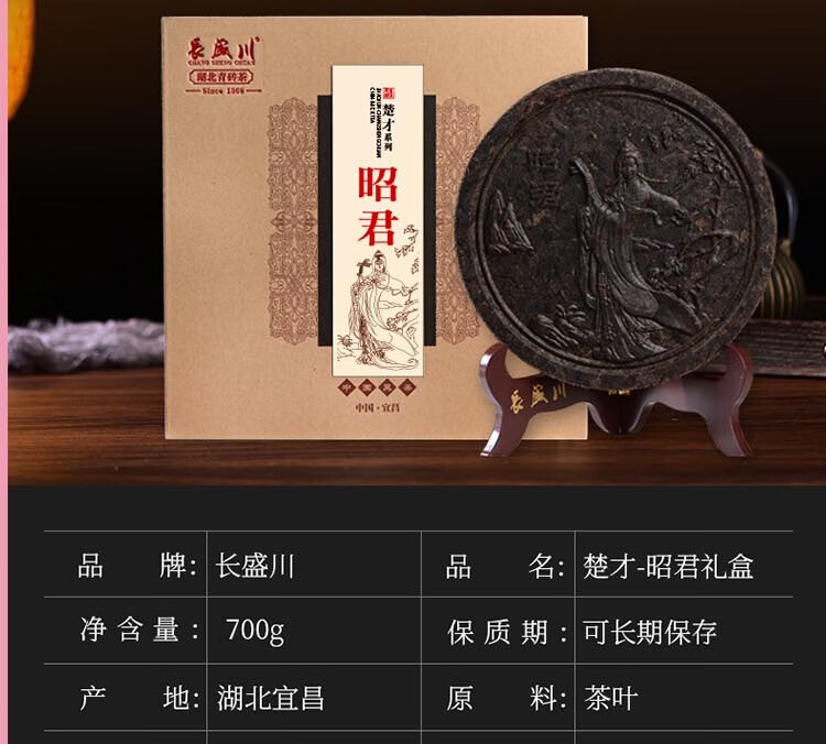 長盛川茶叶黑茶青砖茶精选陈化五年特级老料湖北老字号昭君700g礼盒装