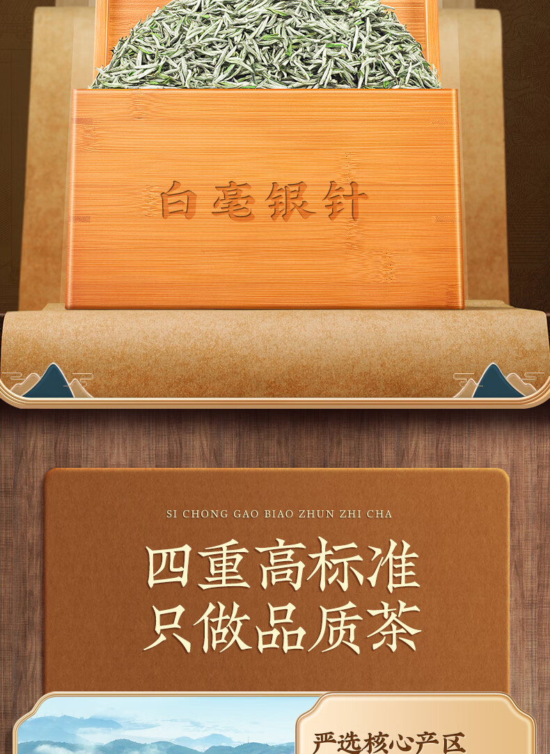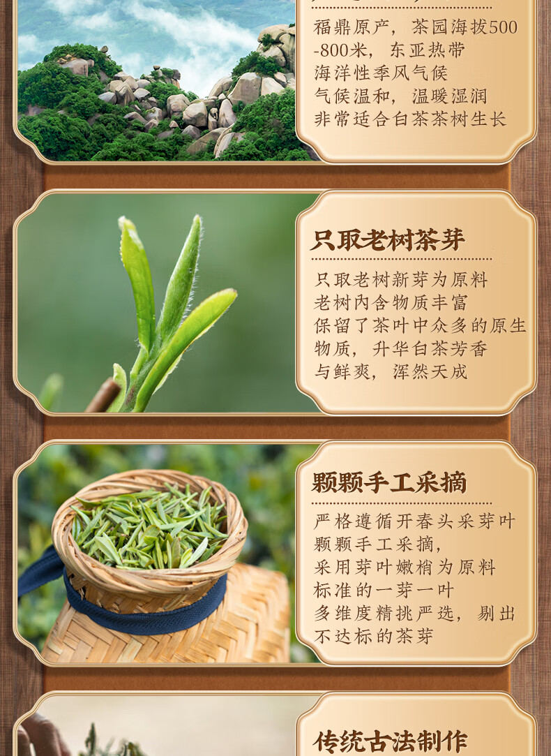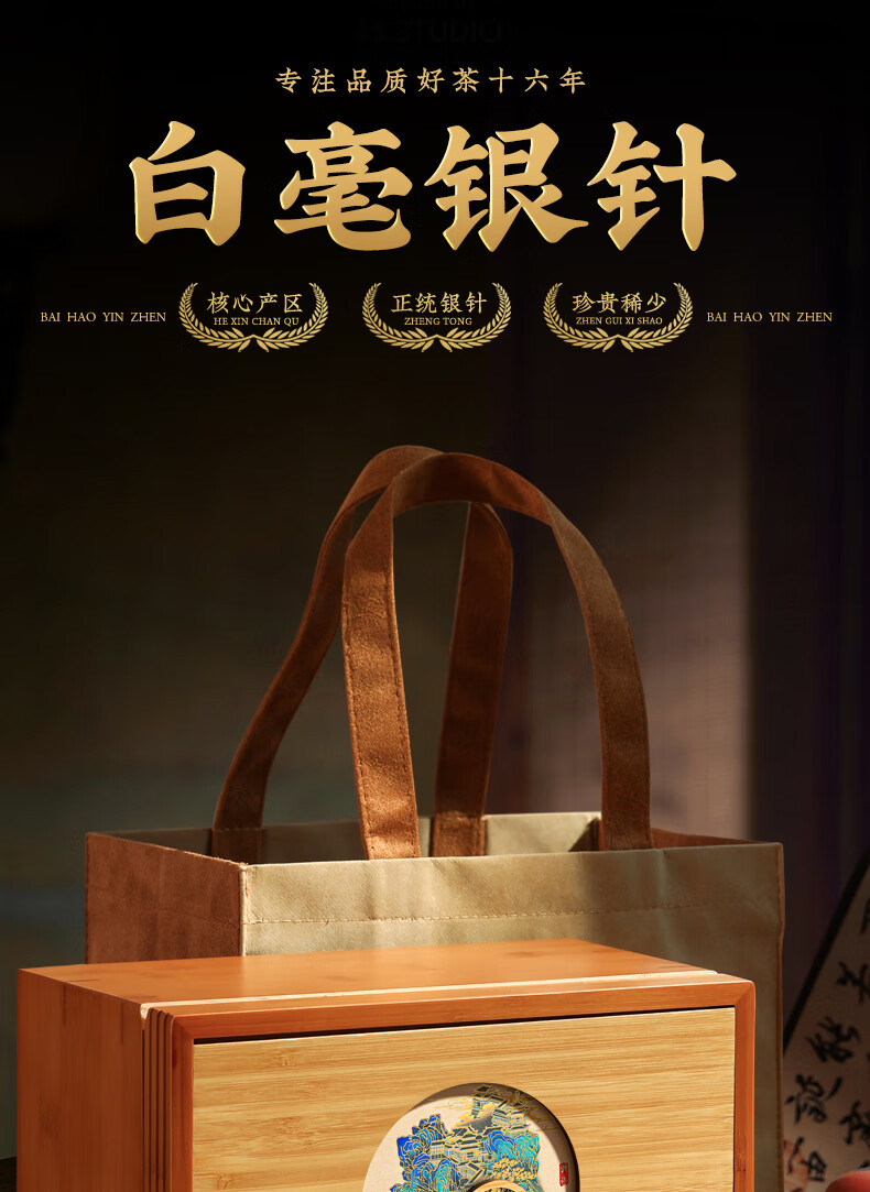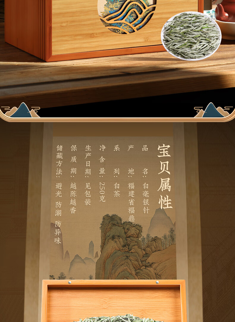 音朗茶叶 白茶 白毫银针 特级福鼎白茶高山陈年老白茶叶礼盒装250g