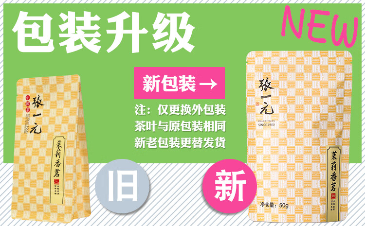 张一元 茶叶茉莉花茶特级茉莉香茗浓香花茶袋装50g