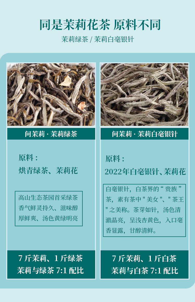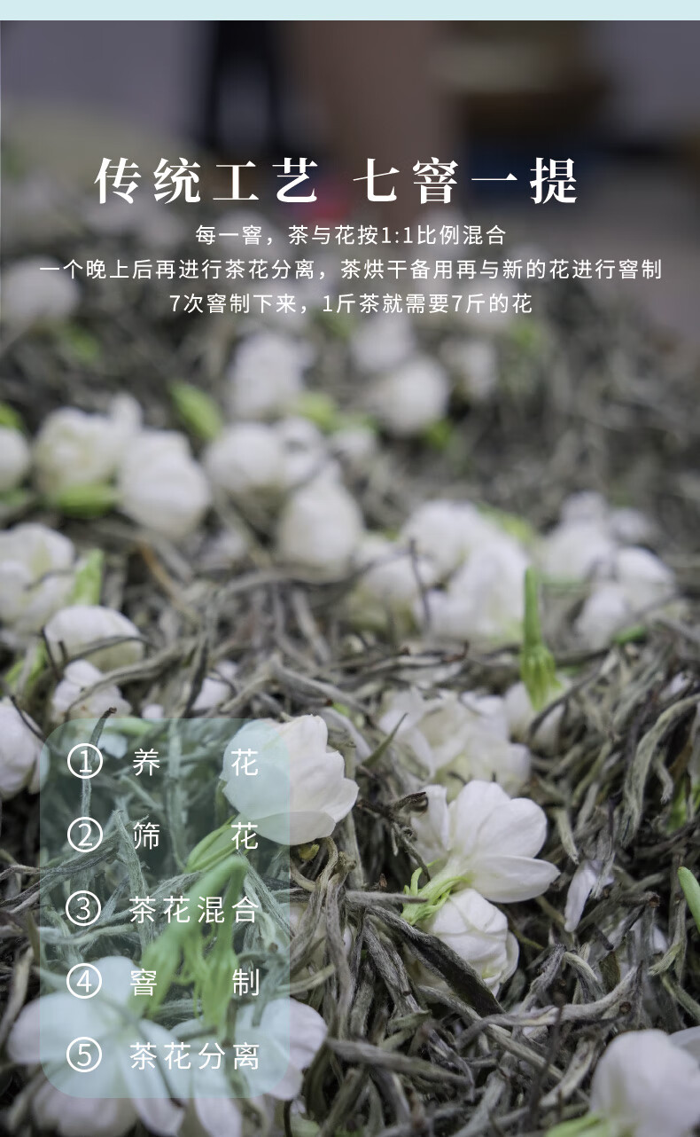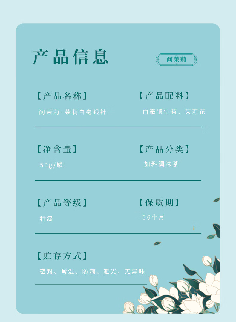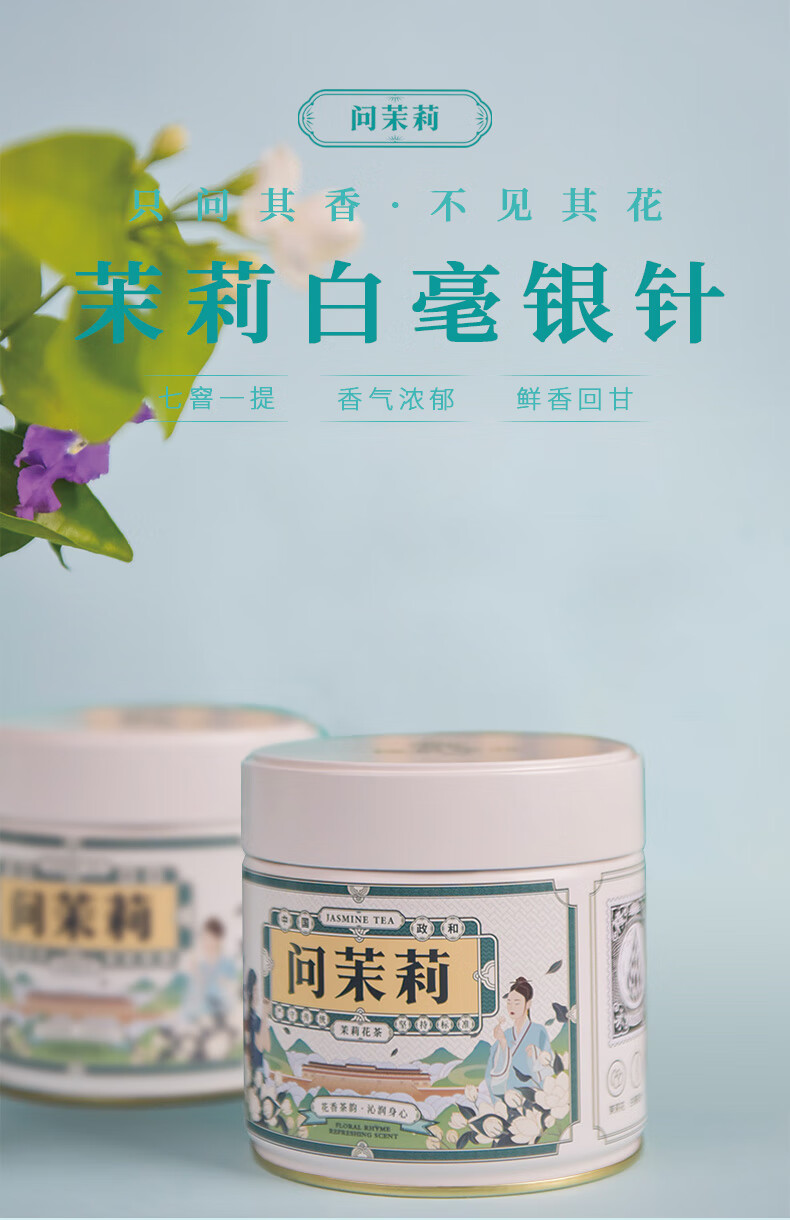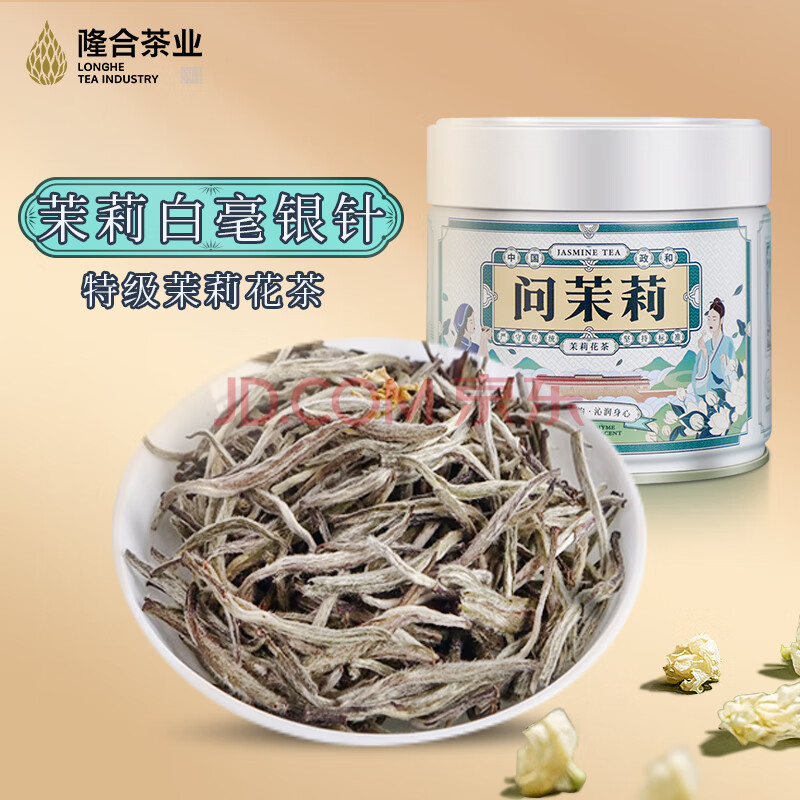 隆合(long he)茶叶茉莉花茶 2022年特级白毫银针 隆合问茉莉花草茶冷泡茶50g