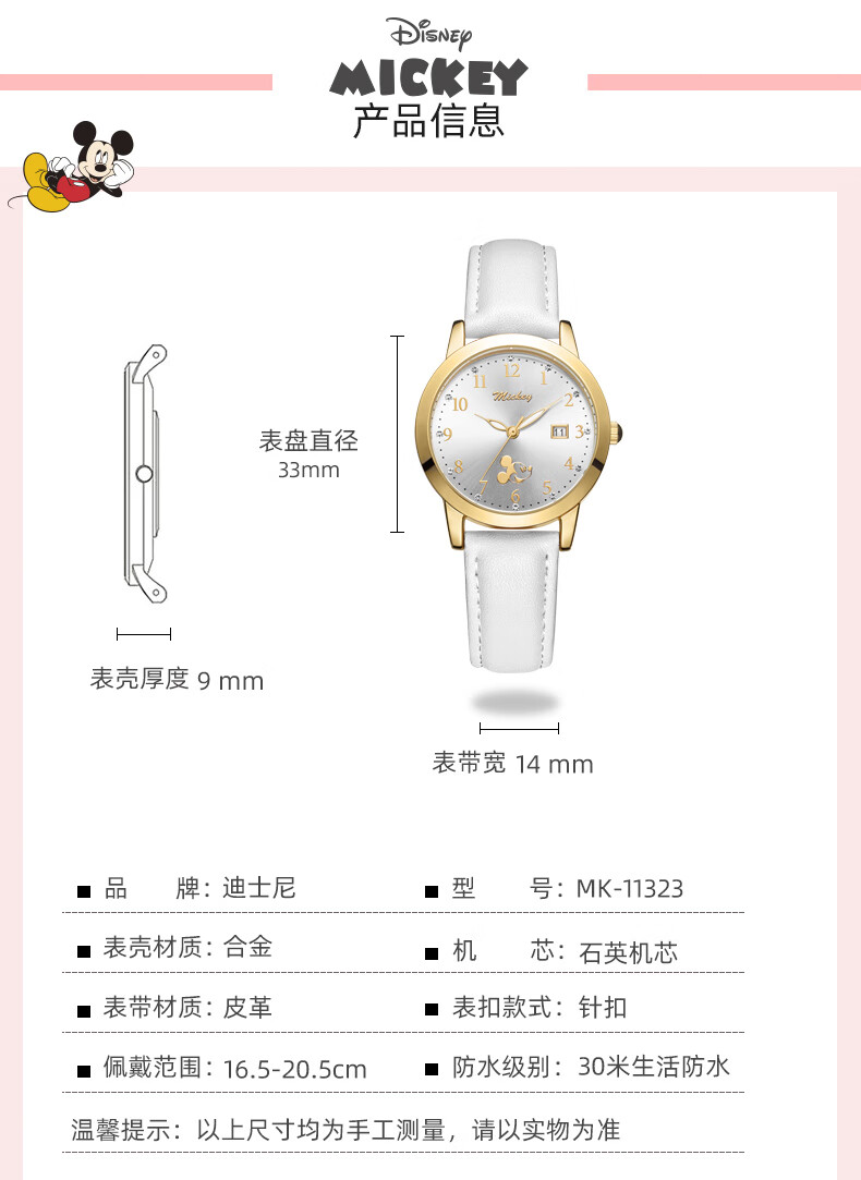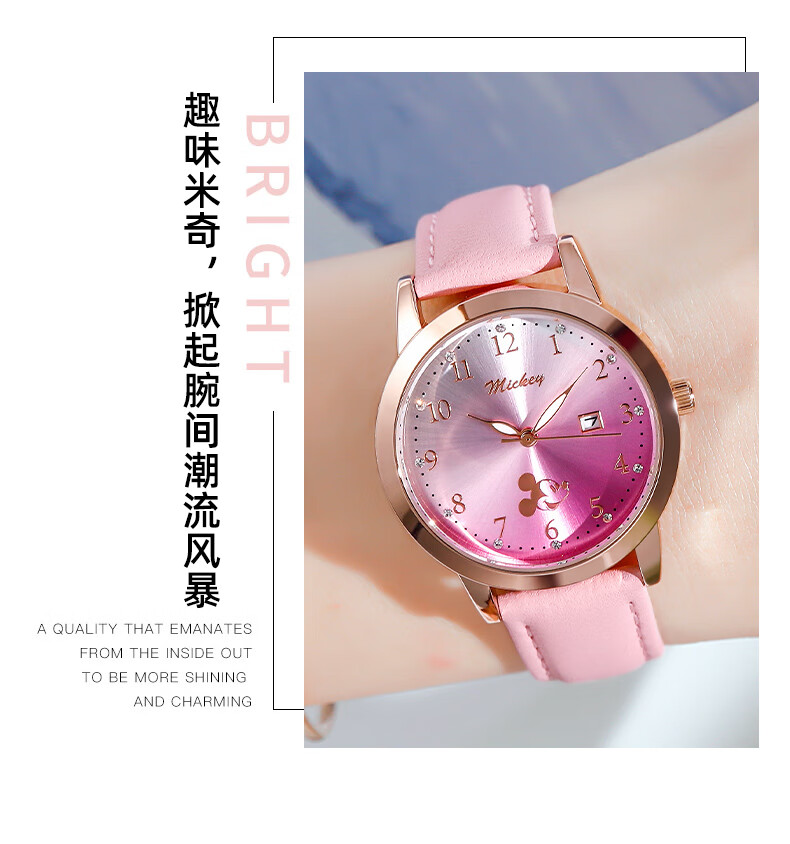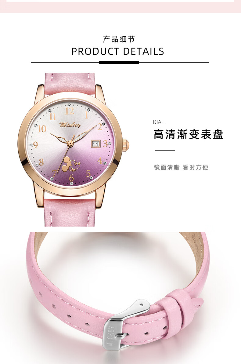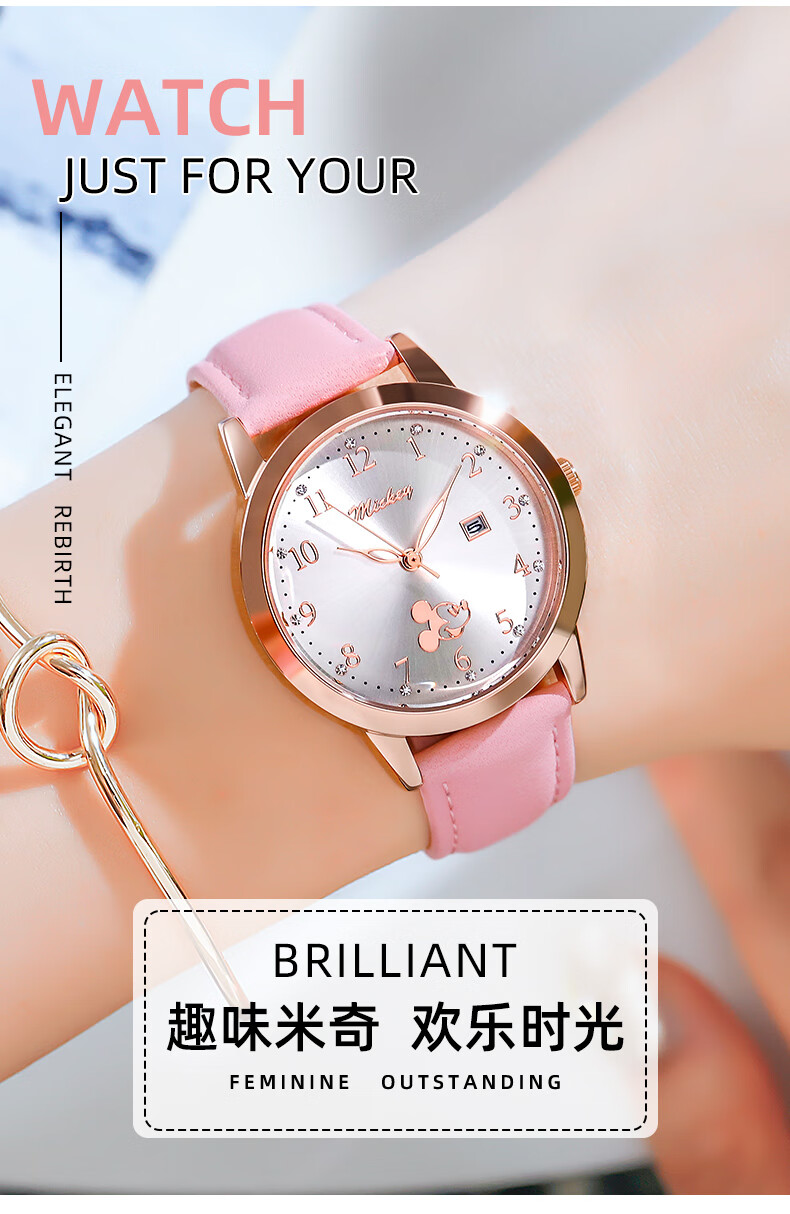 迪士尼(Disney)手表女生学生青少年开学礼物考试用表指针日历石英表 MK-11323P1
