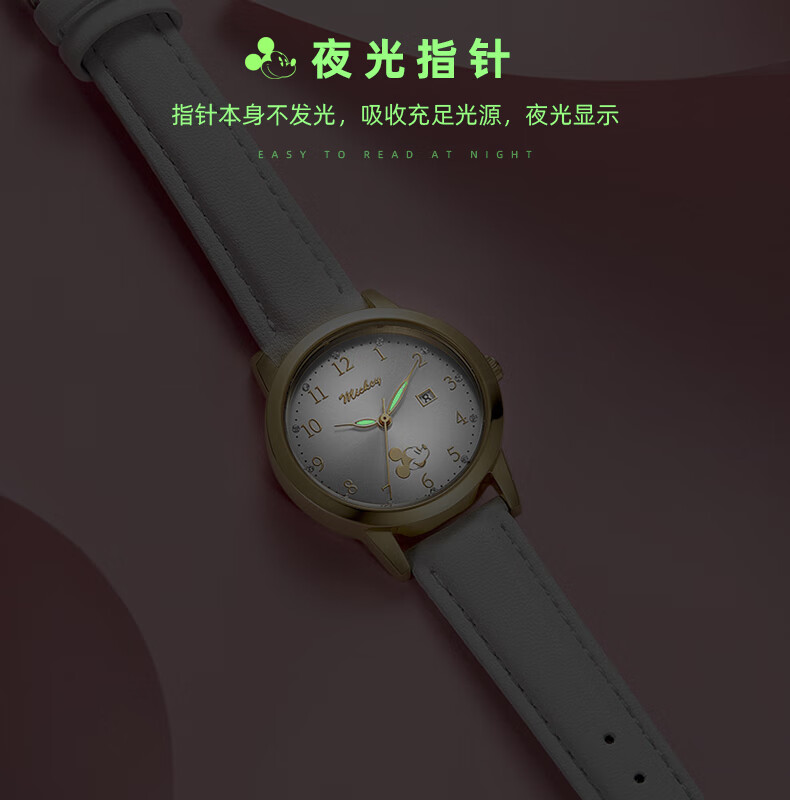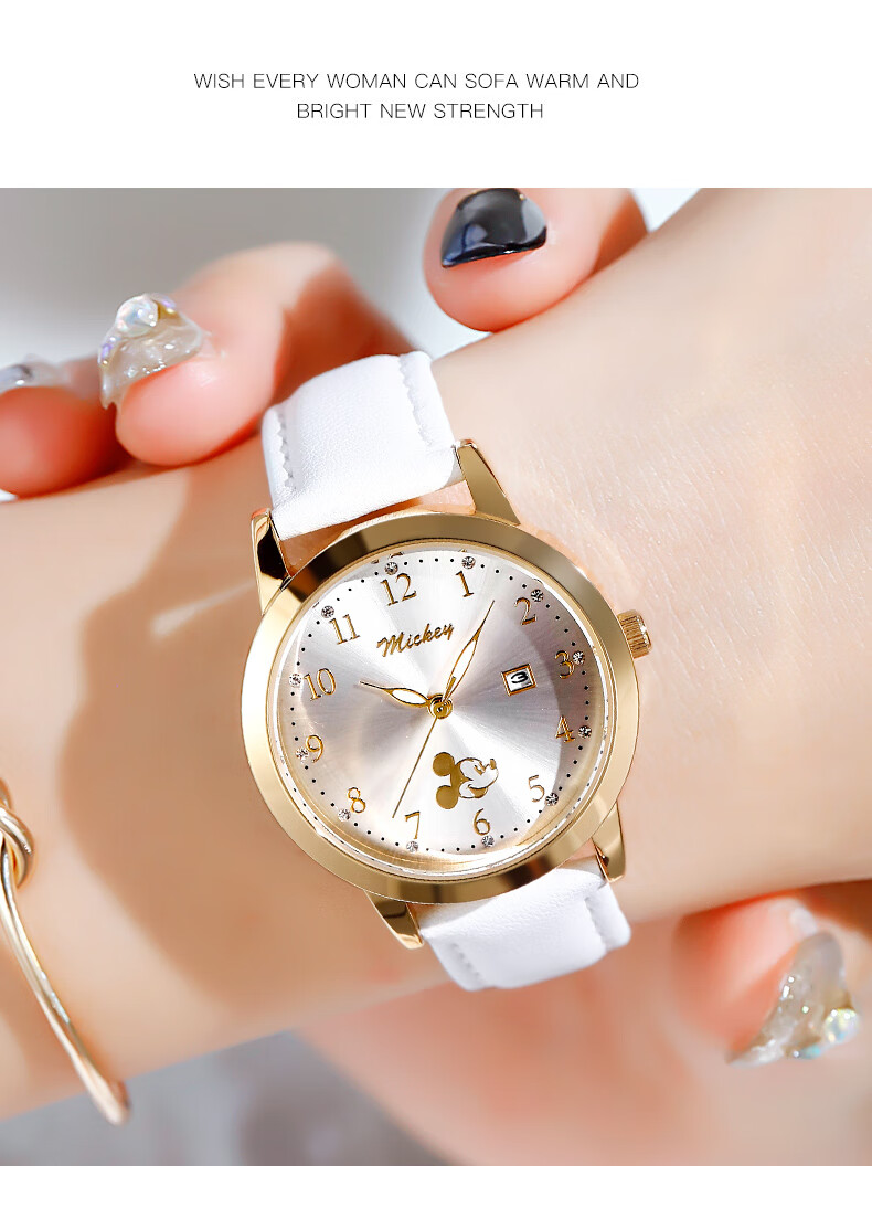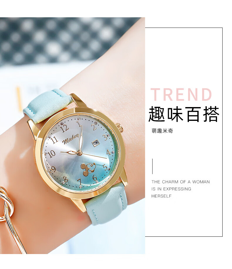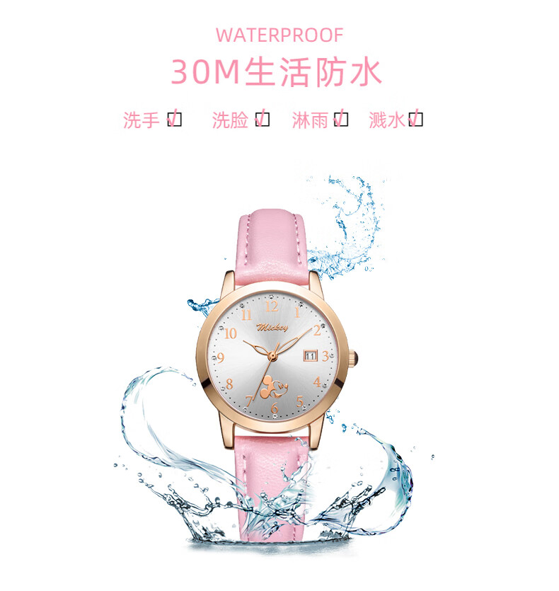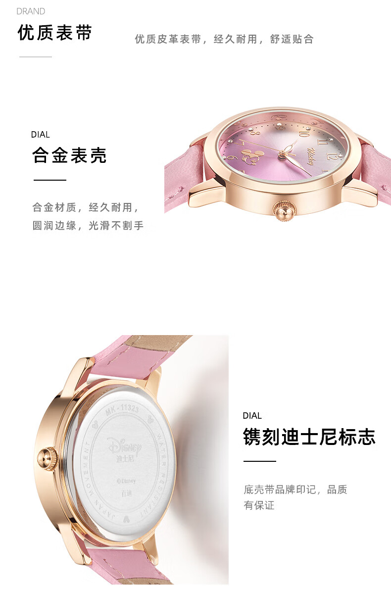 迪士尼(Disney)手表女生学生青少年开学礼物考试用表指针日历石英表 MK-11323P1