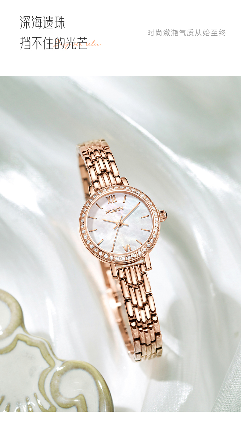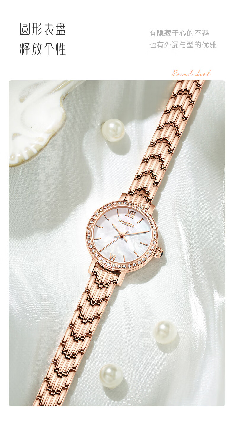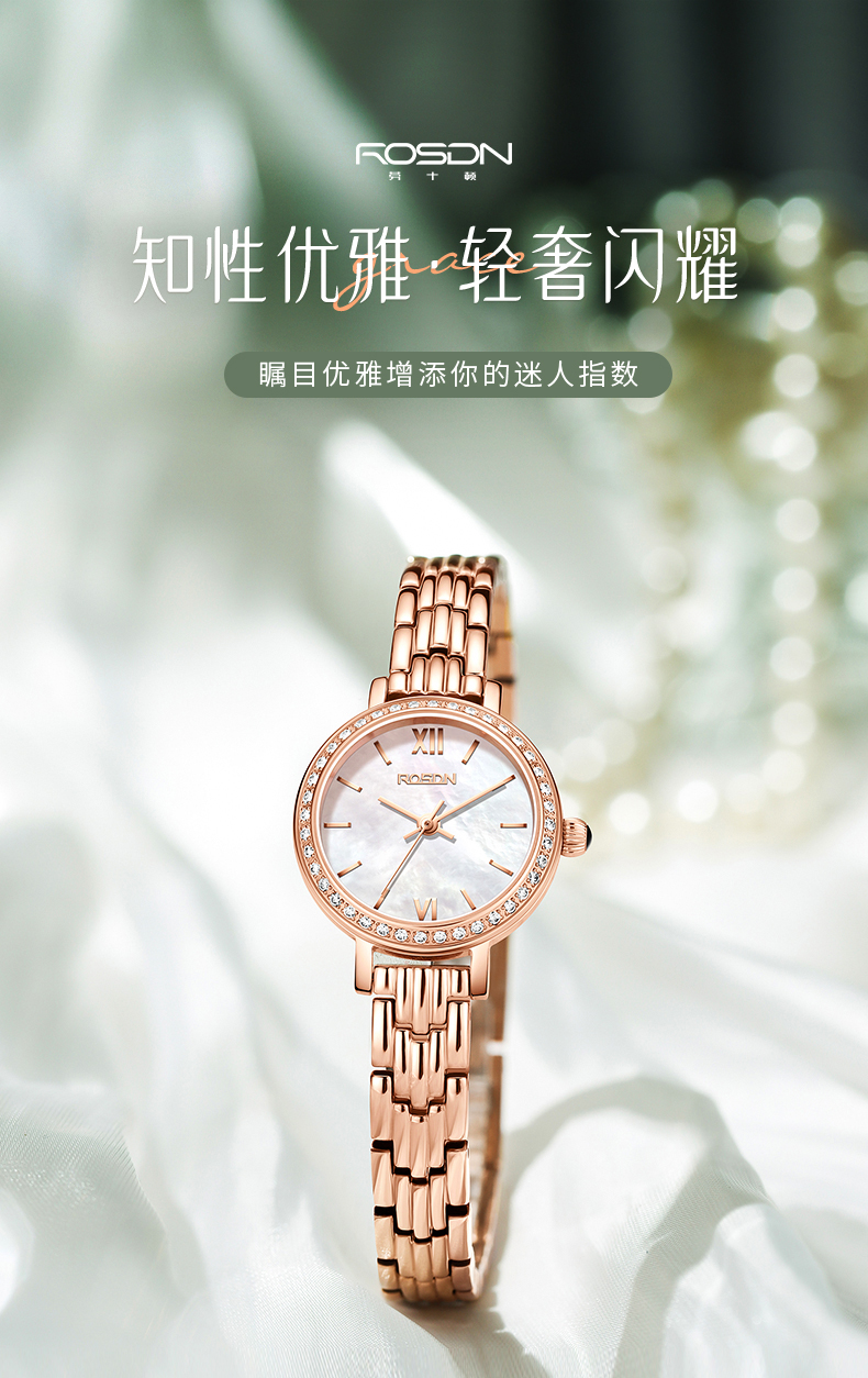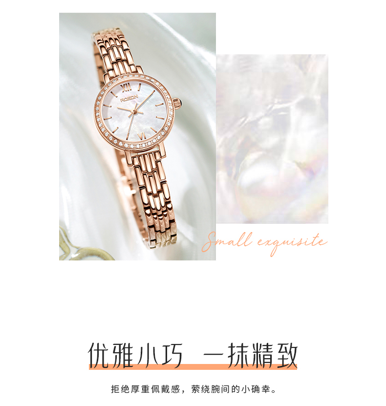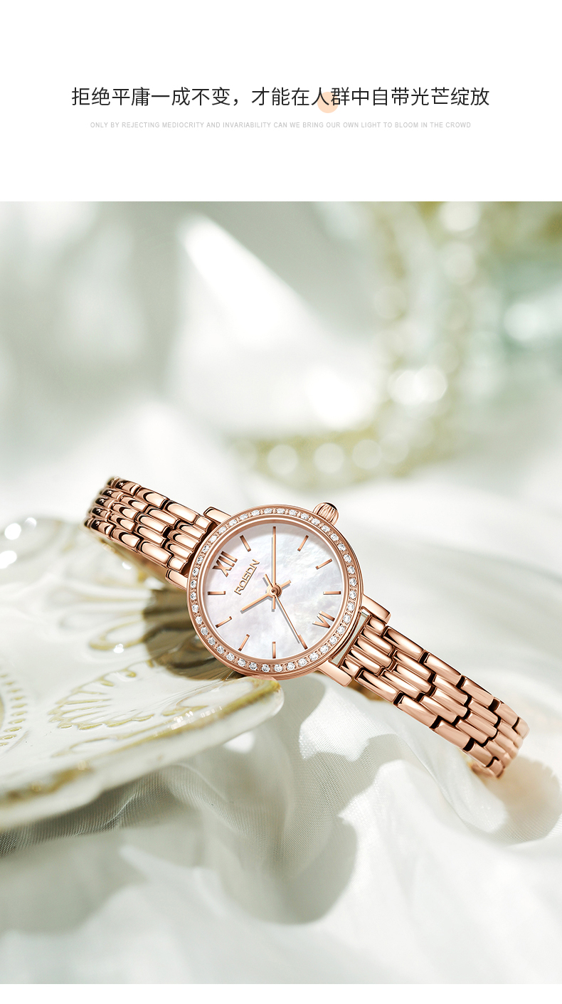 劳士顿(ROSDN)时尚小金表手表女小巧百搭防水石英女士手表送女友礼物