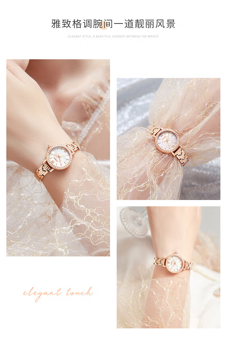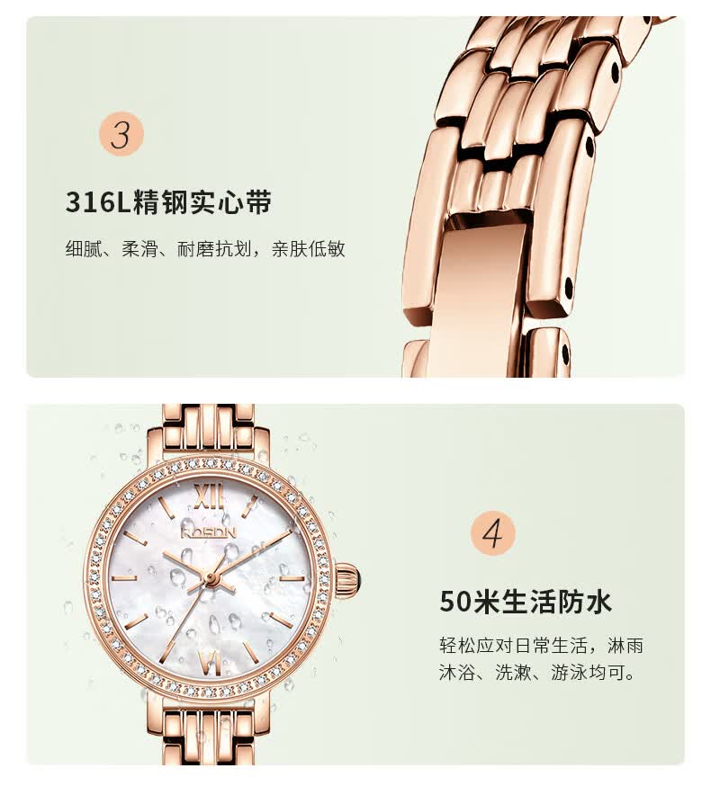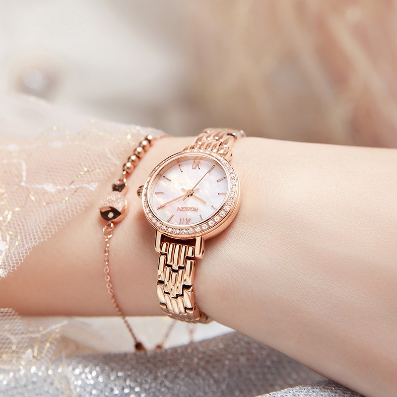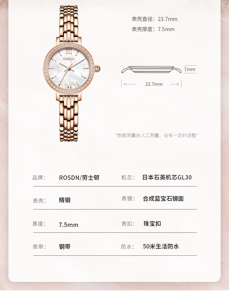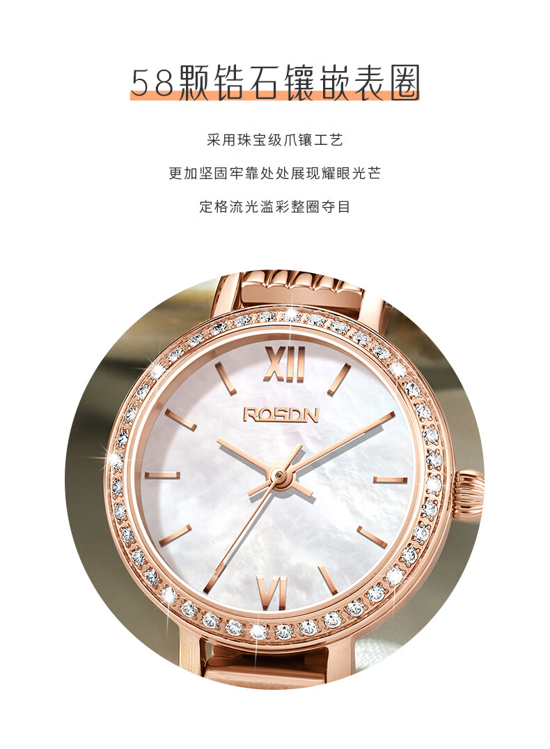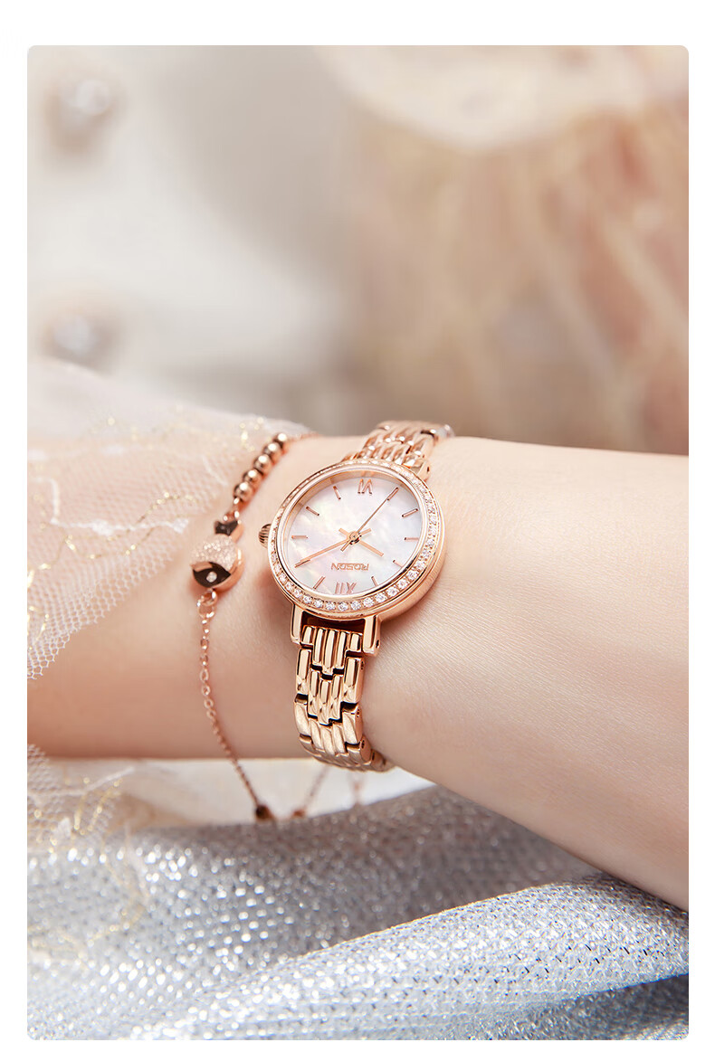劳士顿(ROSDN)时尚小金表手表女小巧百搭防水石英女士手表送女友礼物
