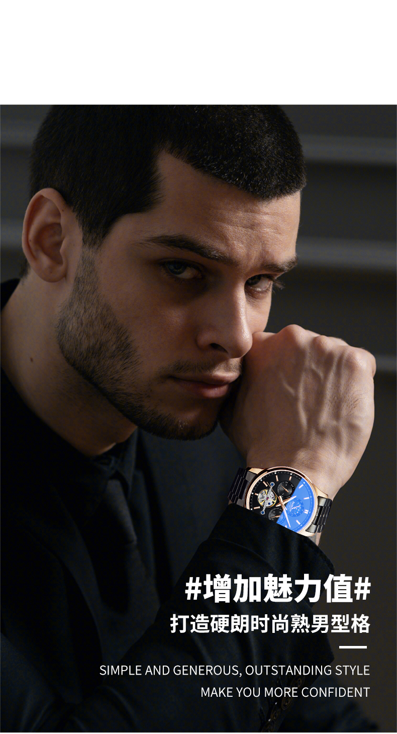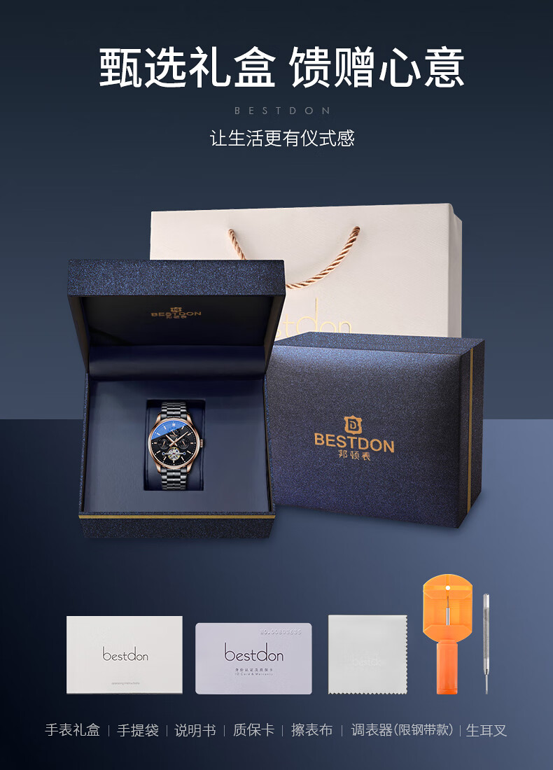 邦顿(Bestdon)手表男机械表全自动镂空防水商务男士手表BD71110G-B01