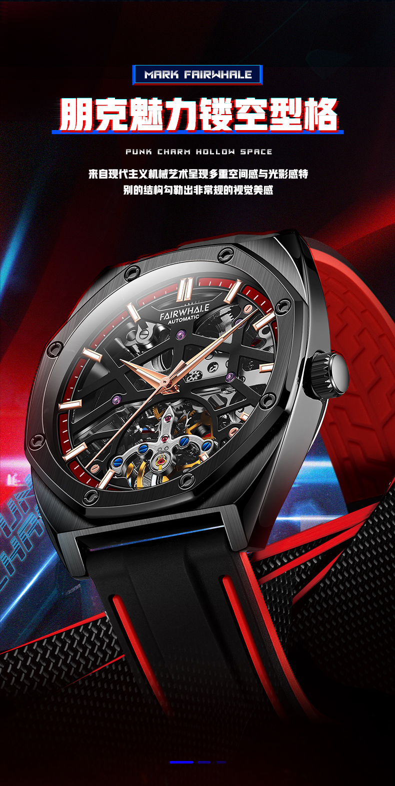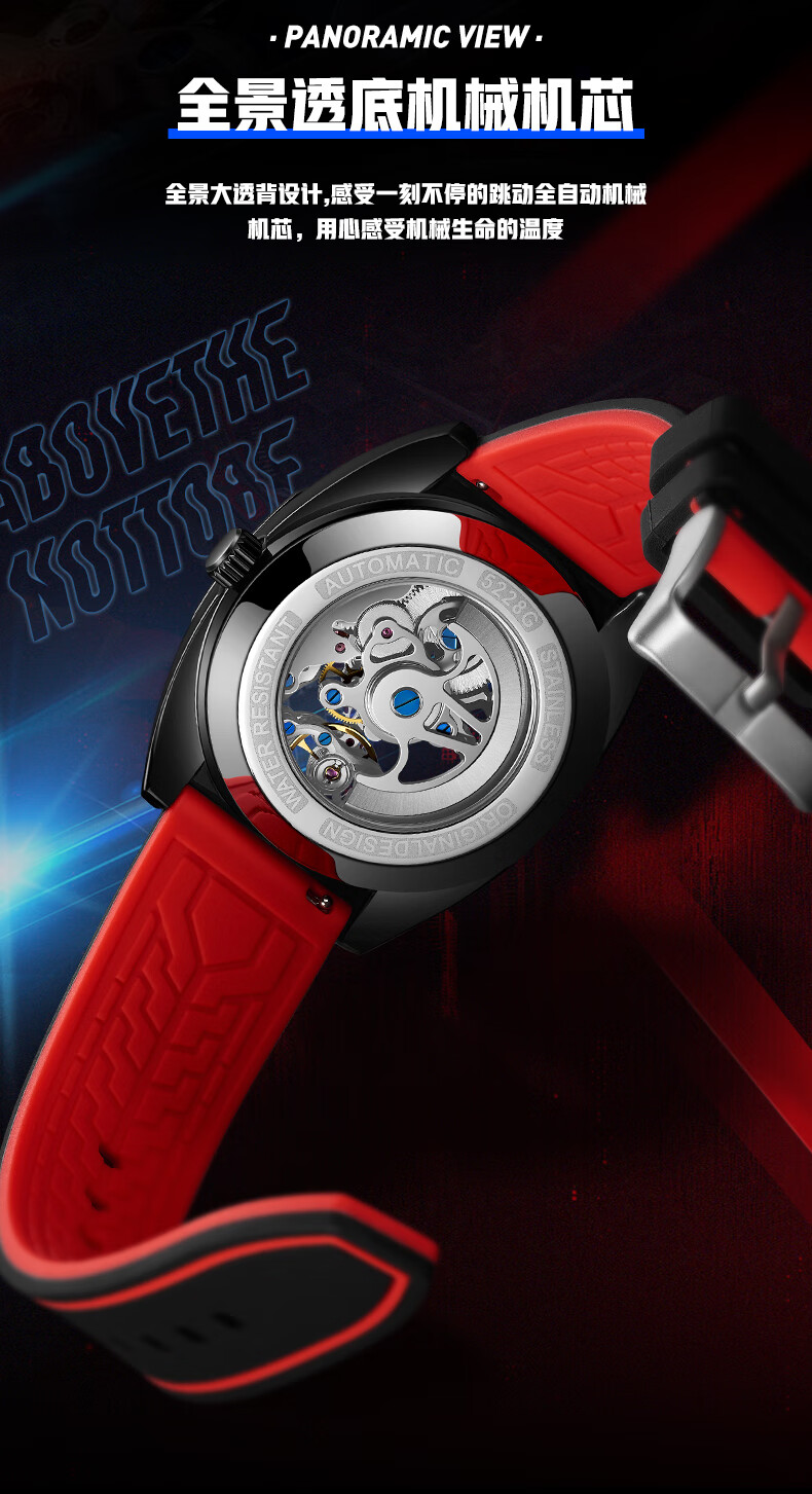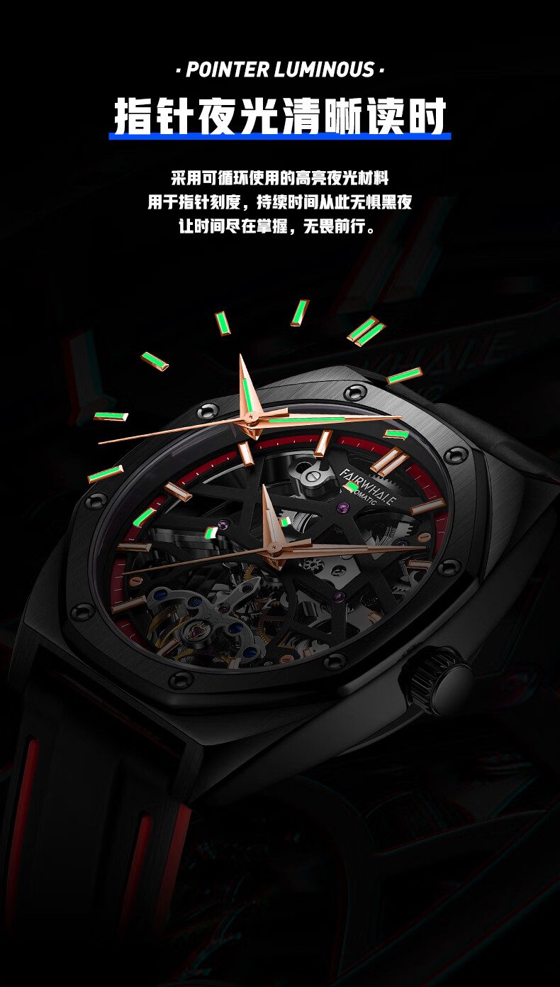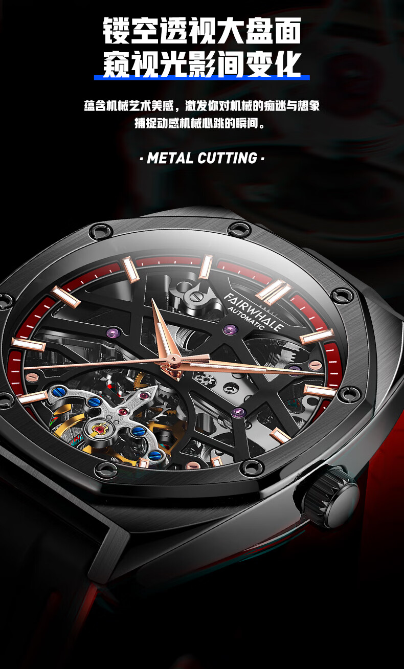 马克华菲(FAIRWHALE)手表全自动镂空机械手表瑞士品质国表防水夜光学生腕表FW-6130-3初高中学生手表开学季礼物