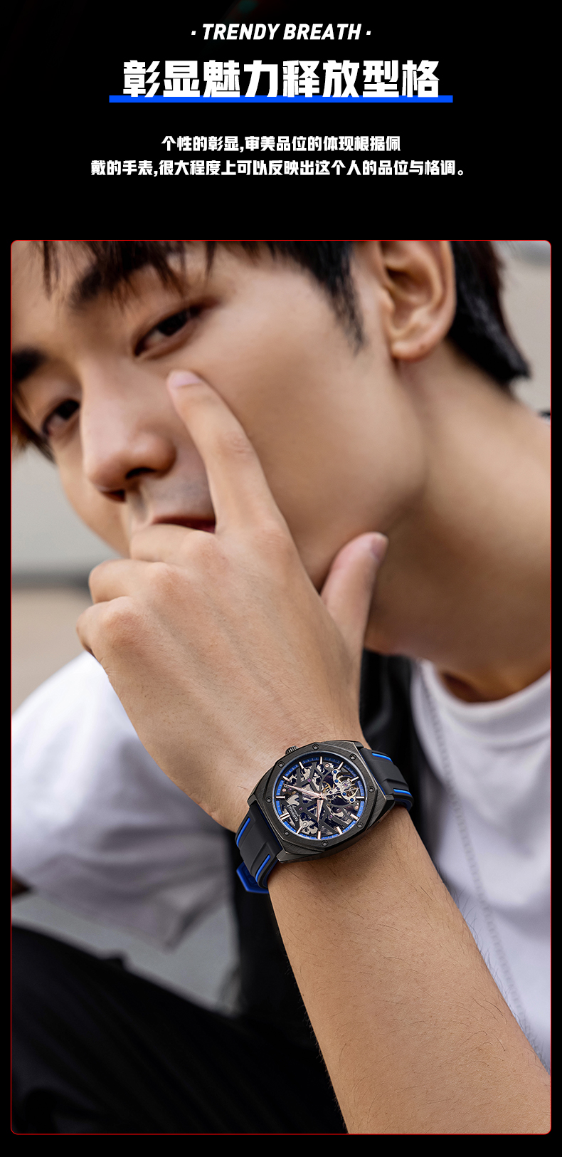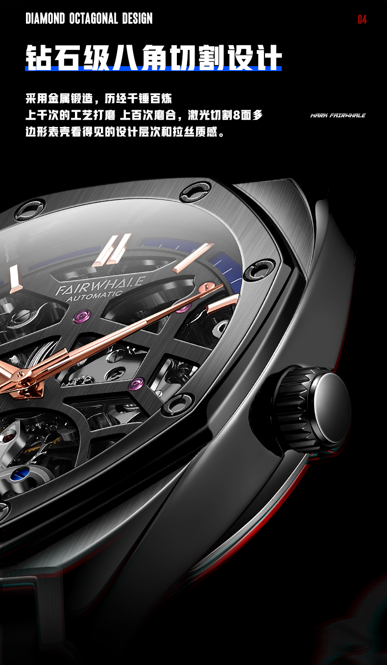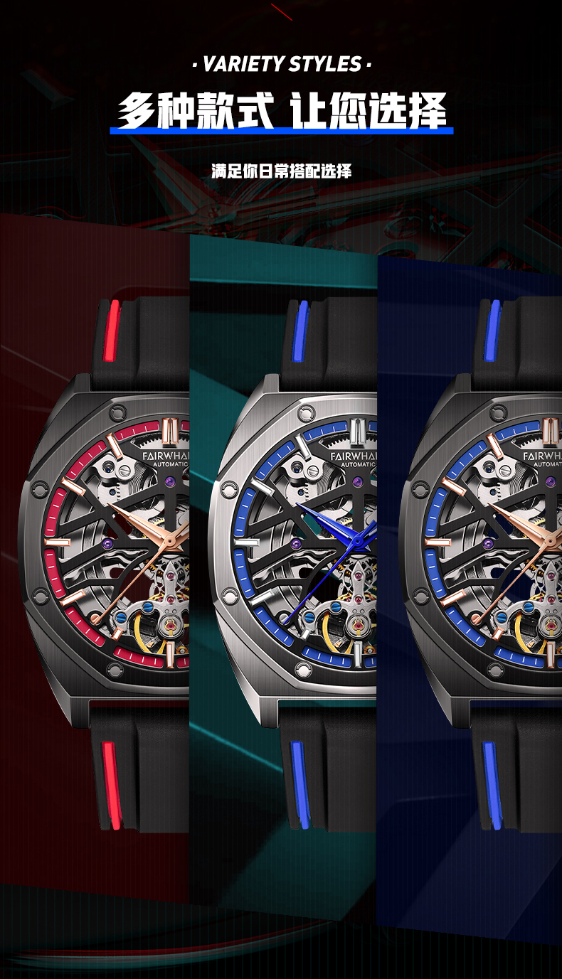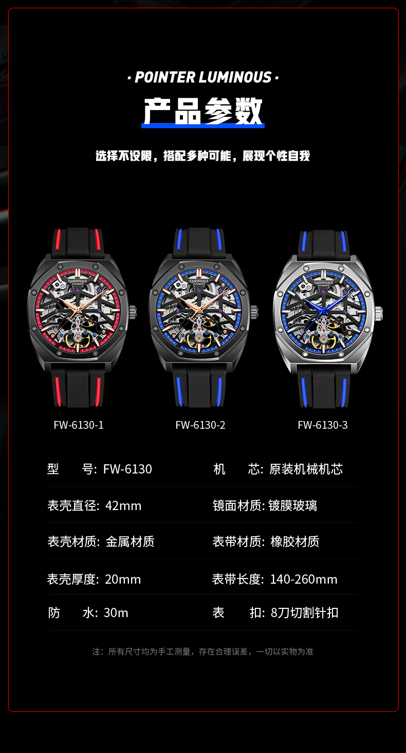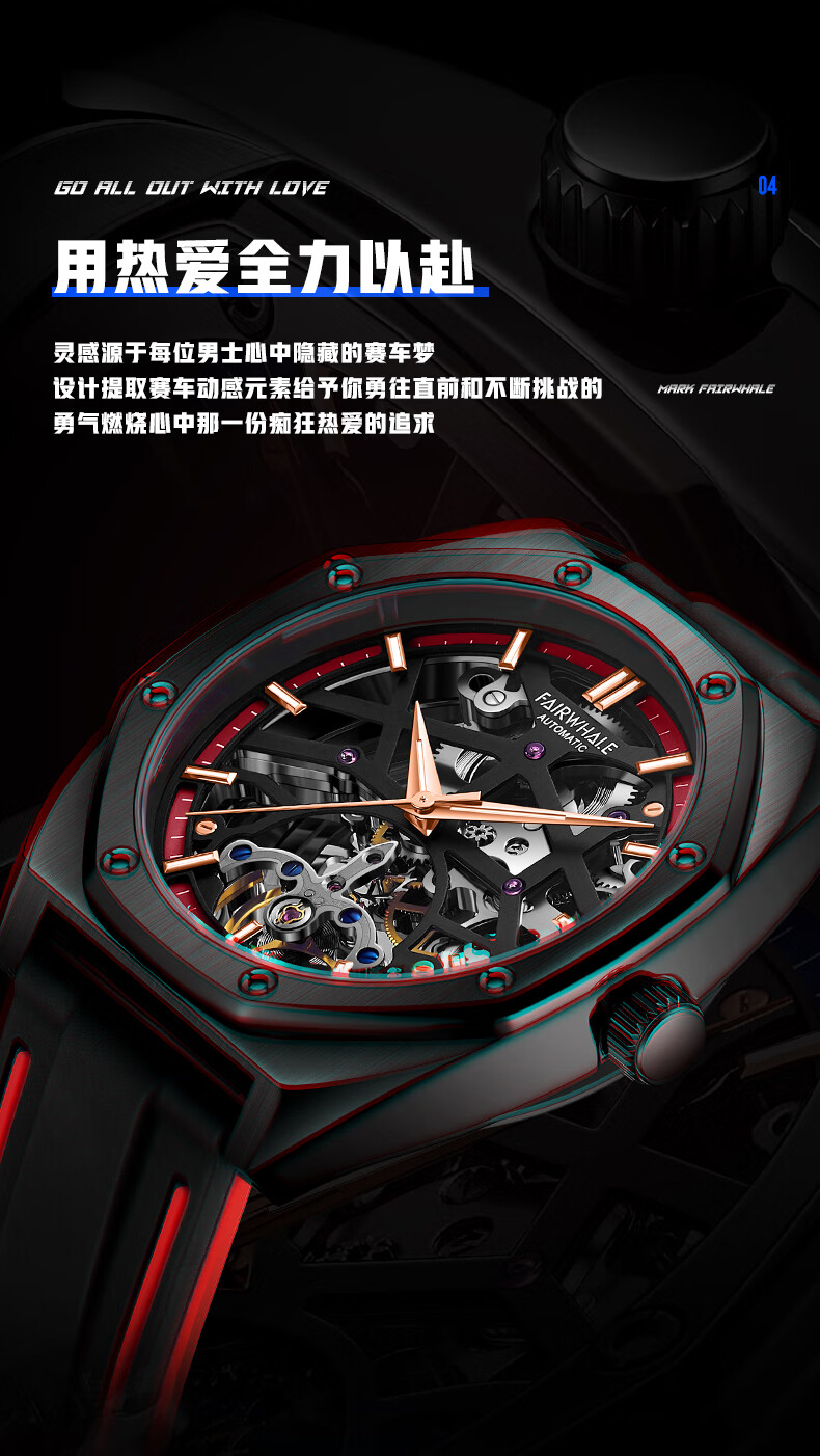 马克华菲(FAIRWHALE)手表全自动镂空机械手表瑞士品质国表防水夜光学生腕表FW-6130-3初高中学生手表开学季礼物