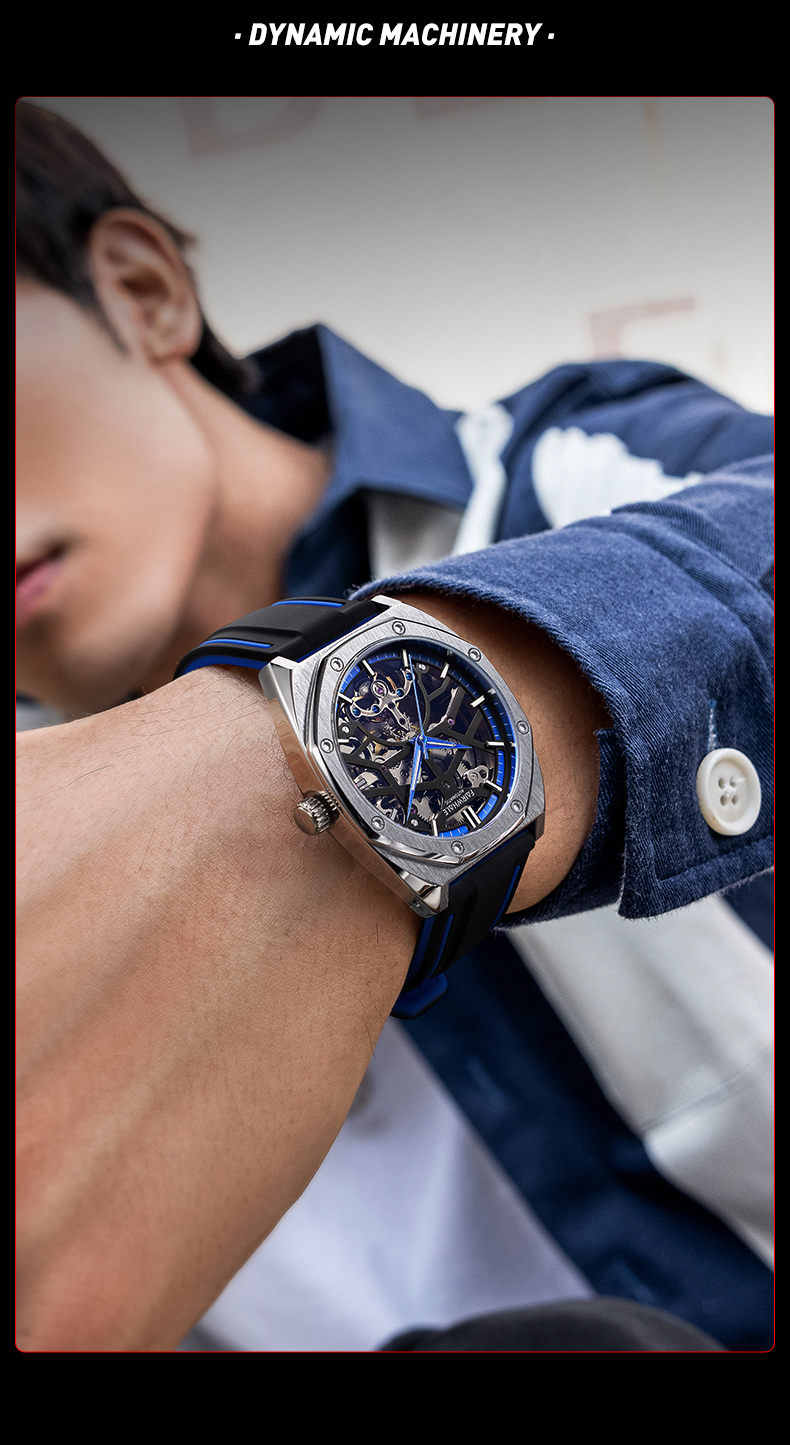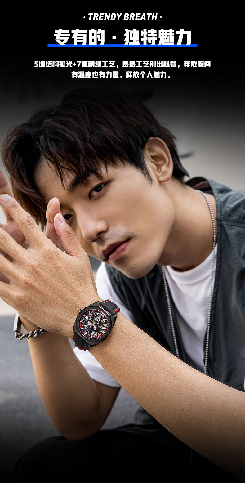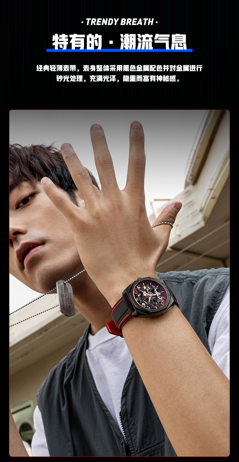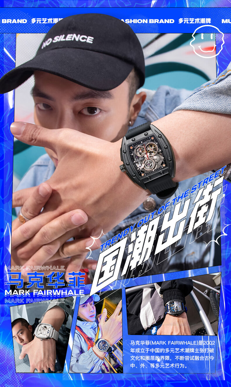 马克华菲(FAIRWHALE)手表全自动镂空机械手表瑞士品质国表防水夜光学生腕表FW-6130-3初高中学生手表开学季礼物