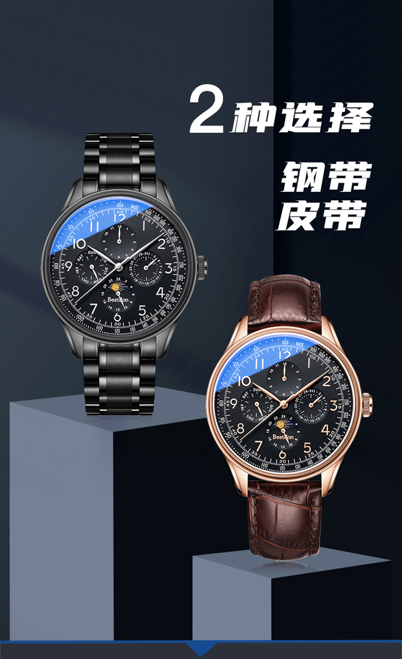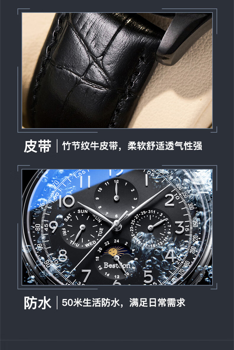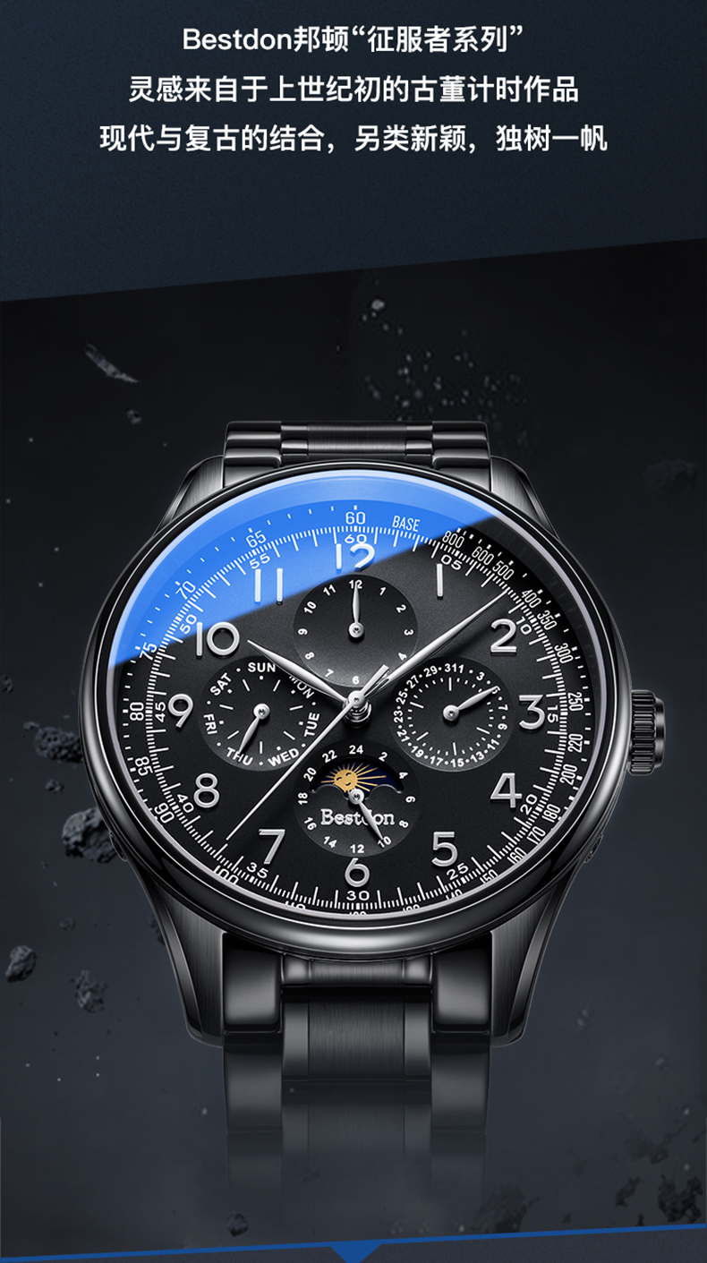 邦顿(Bestdon)男士手表机械表全自动月相防水大表盘国表BD71107G-B03