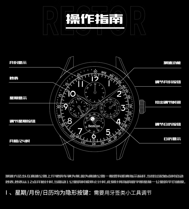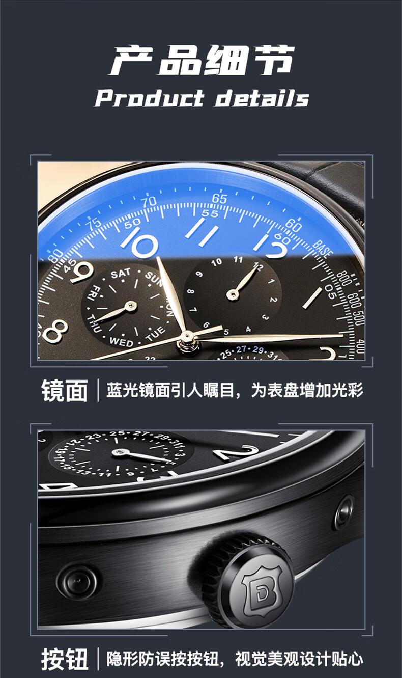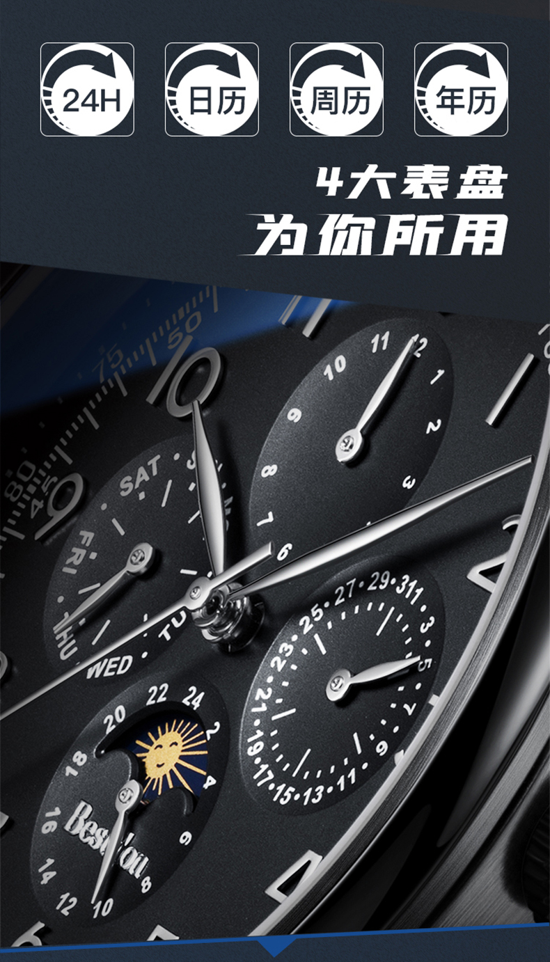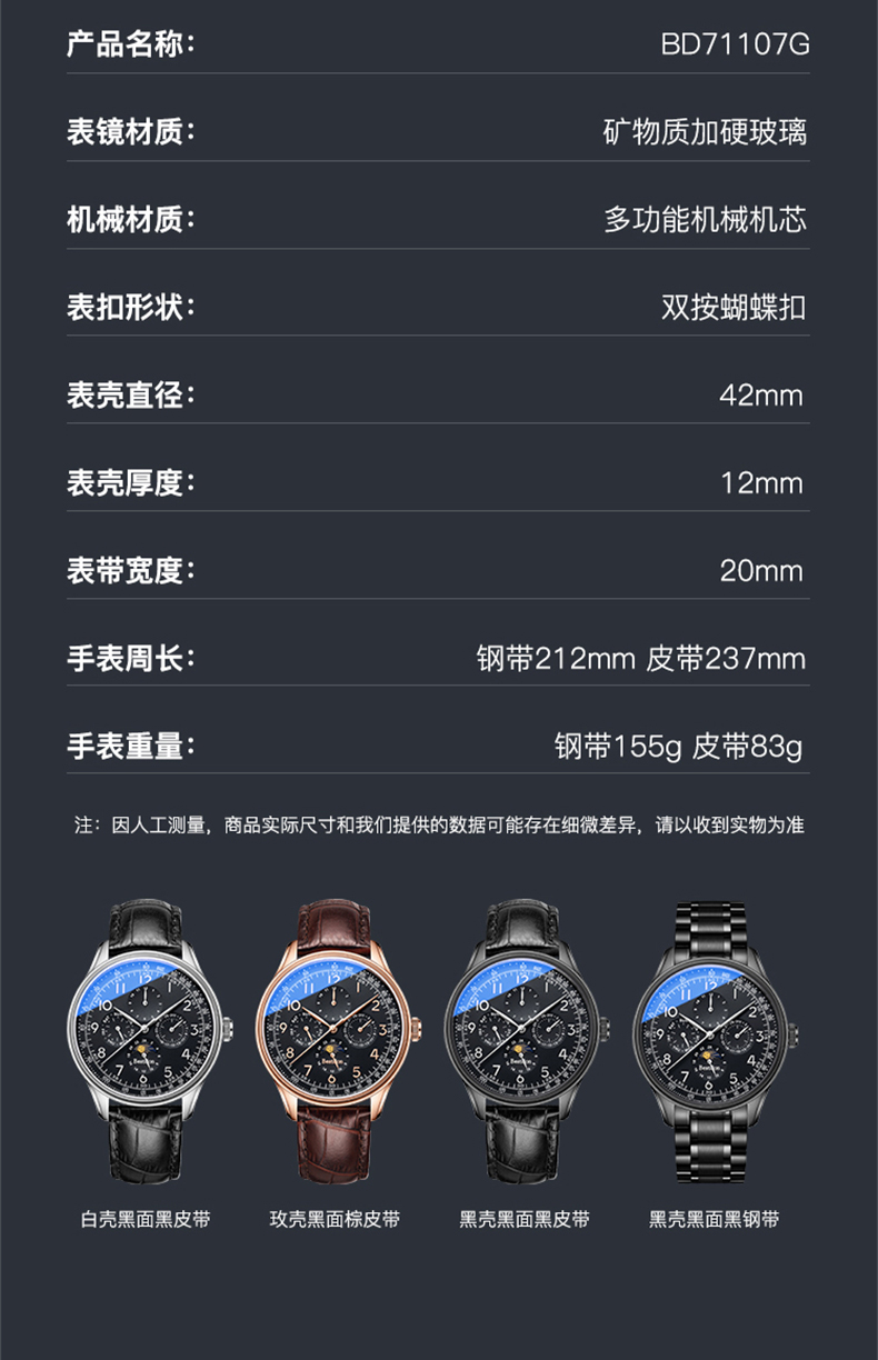 邦顿(Bestdon)男士手表机械表全自动月相防水大表盘国表BD71107G-B03