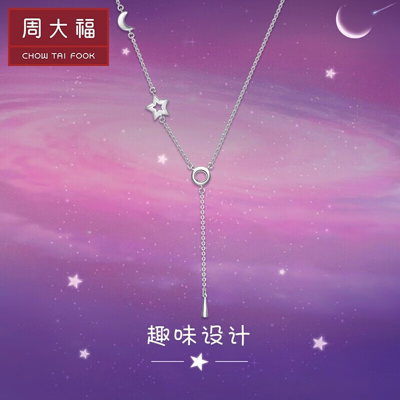 周大福 星月相伴 925银项链吊坠 AB39111 40cm
