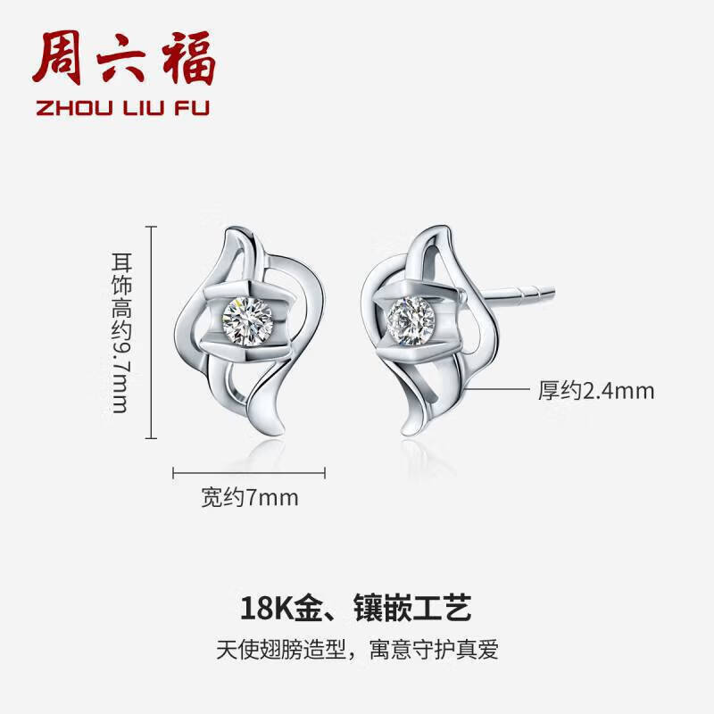 周六福珠宝 女款时尚18K金钻石耳钉 天使之吻 KGDB091275 约10分