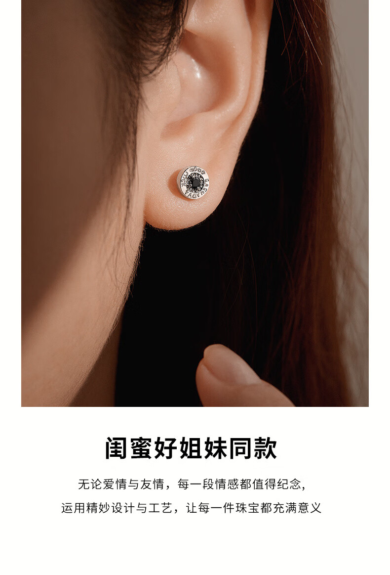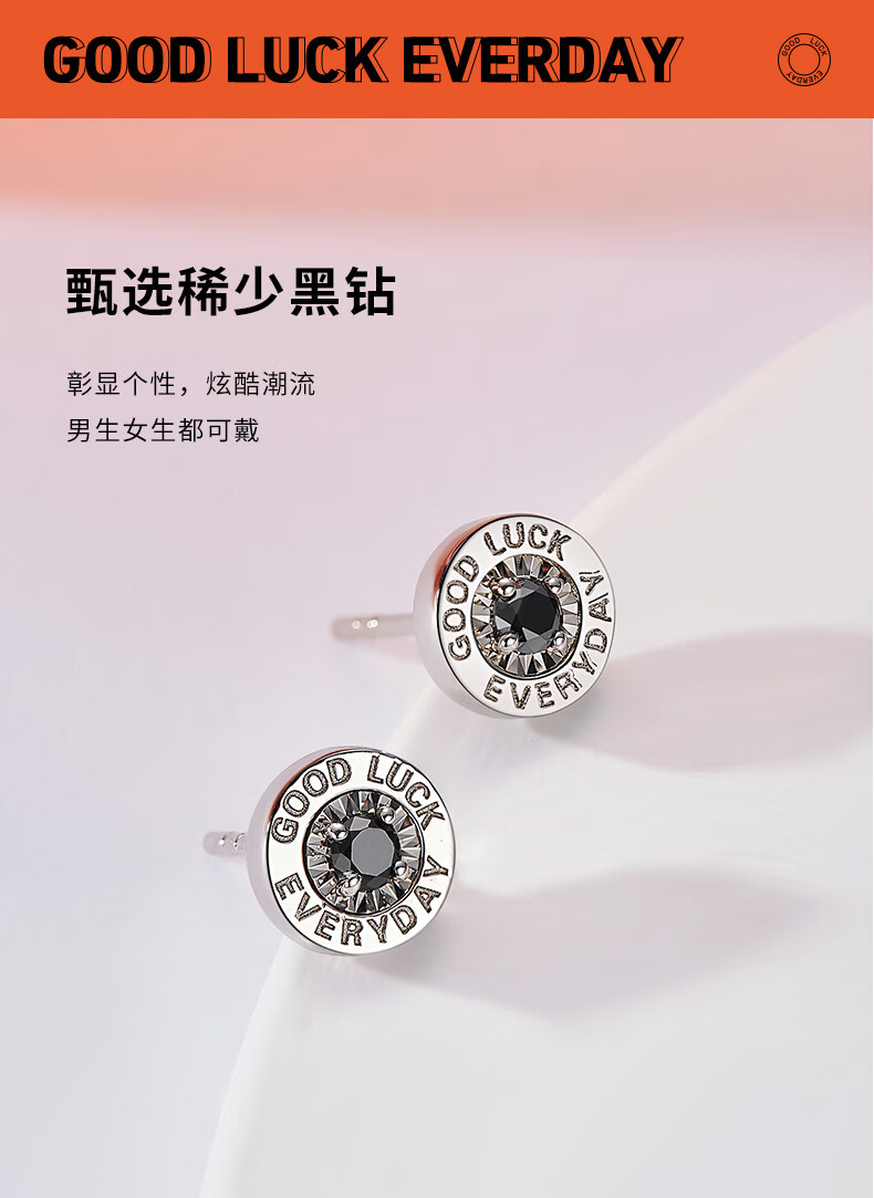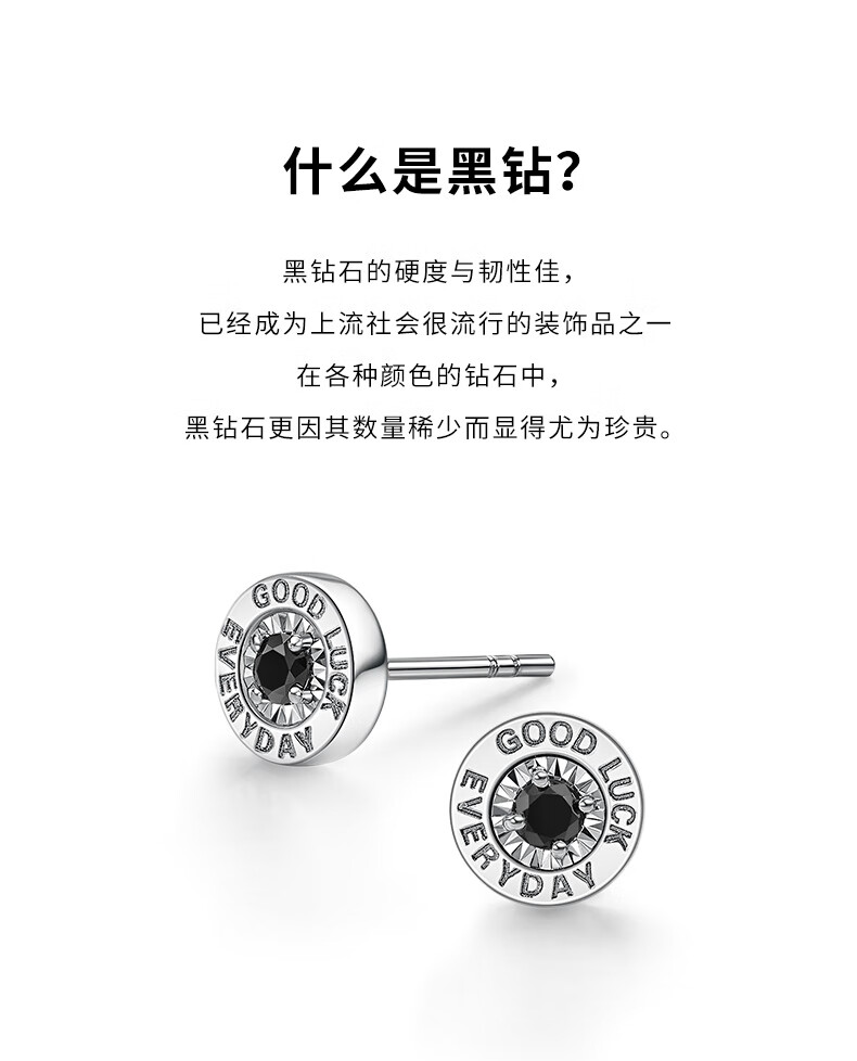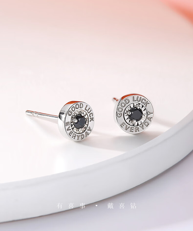 喜钻18K金50分效果黑钻石耳钉情侣钻石耳饰送女友