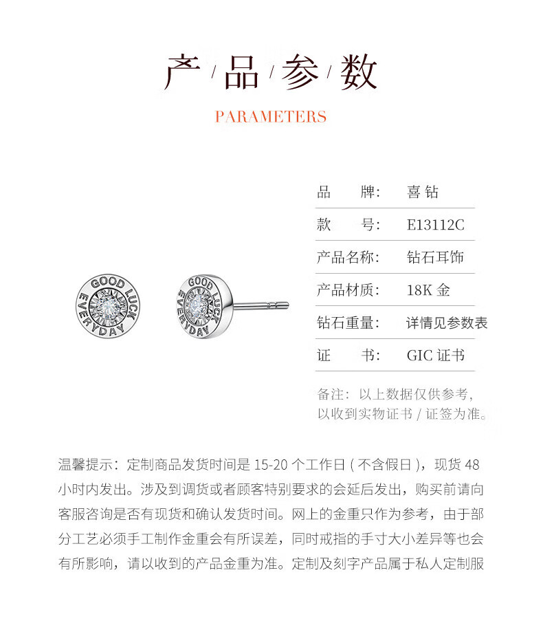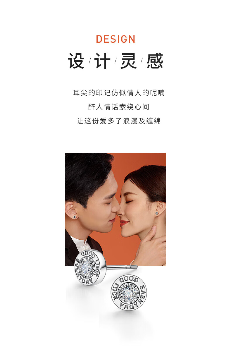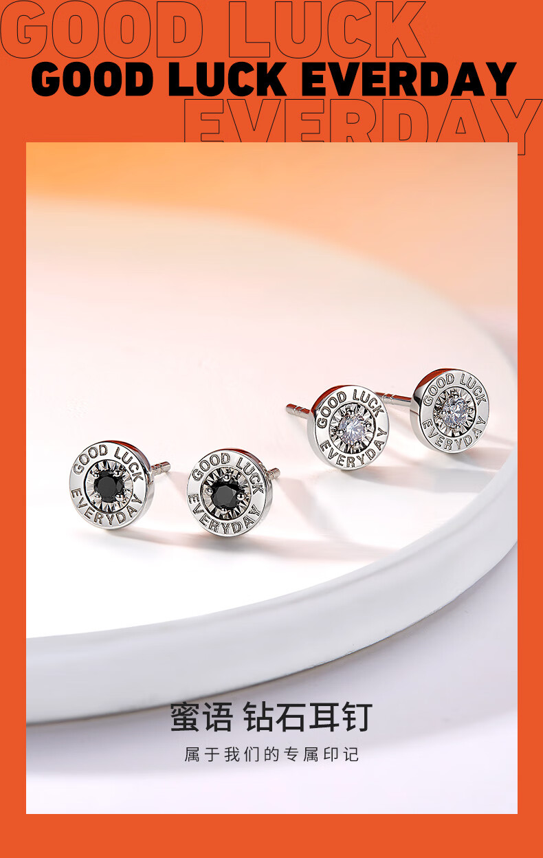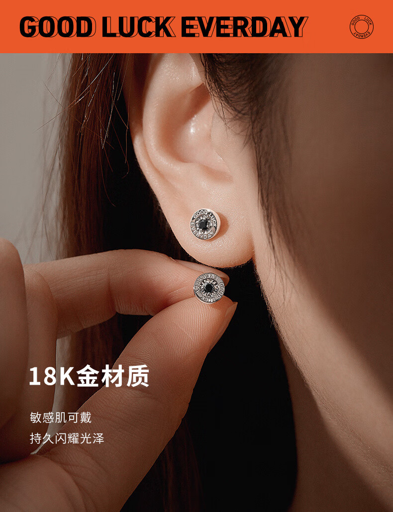 喜钻18K金50分效果黑钻石耳钉情侣钻石耳饰送女友