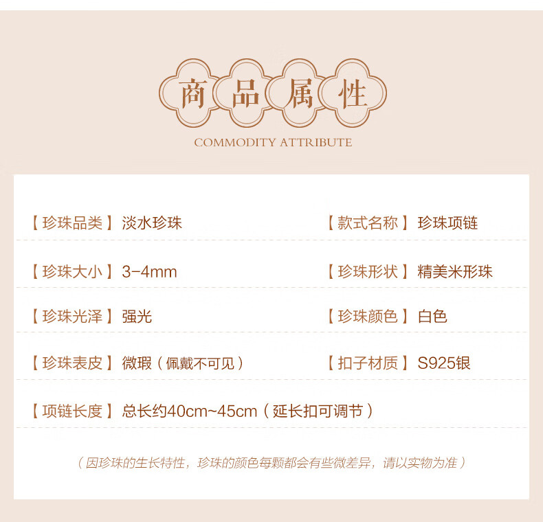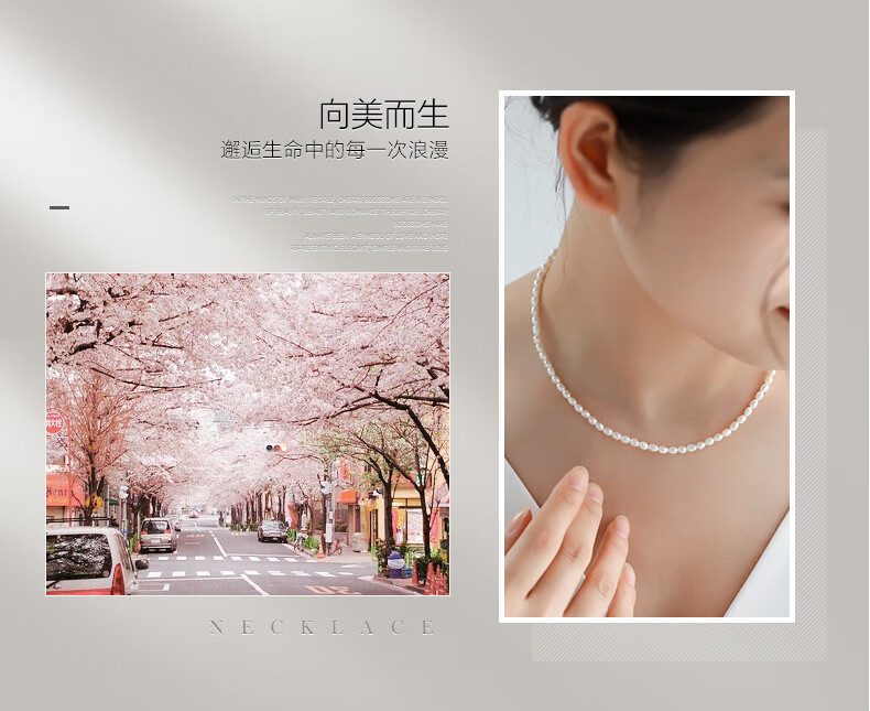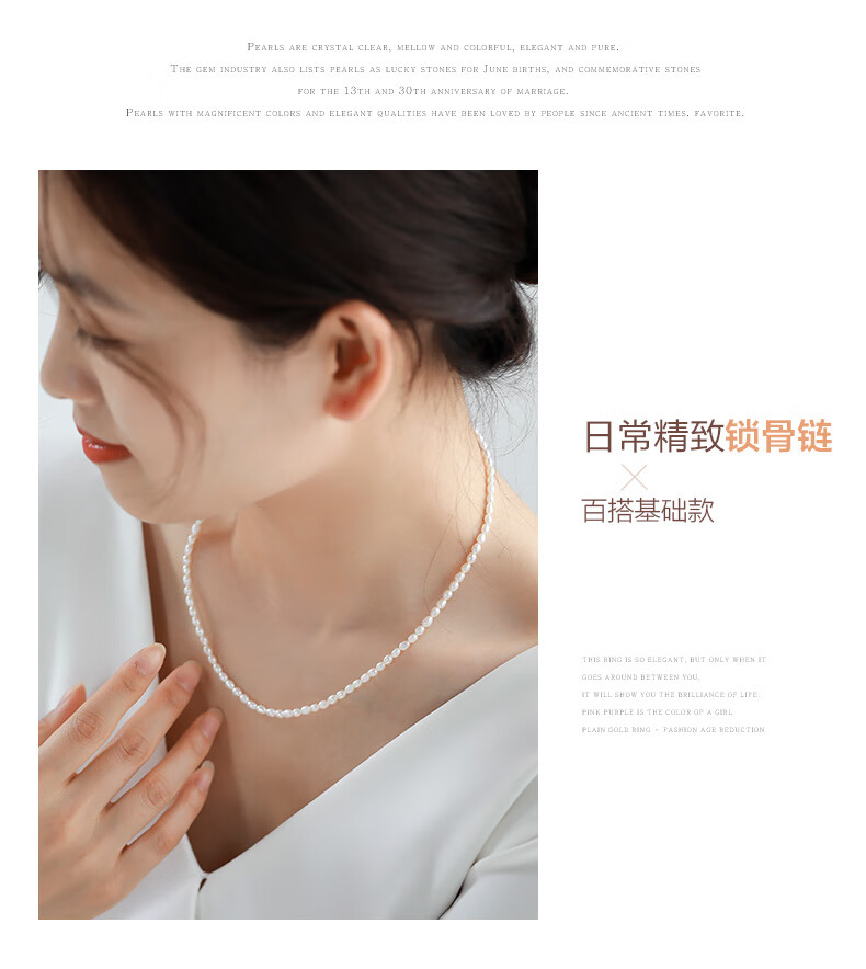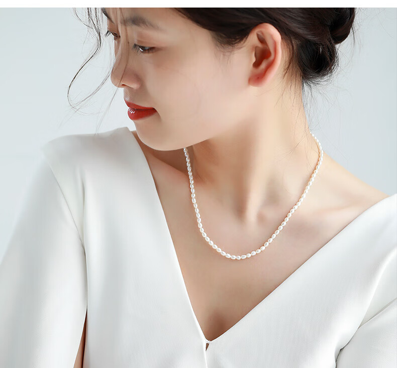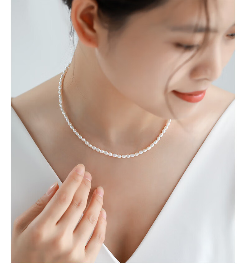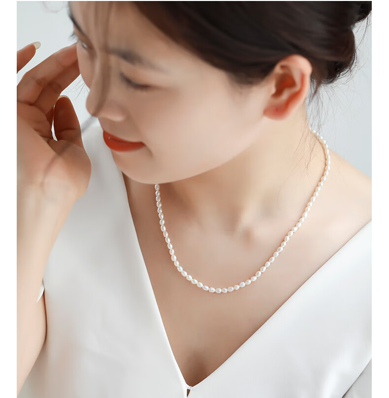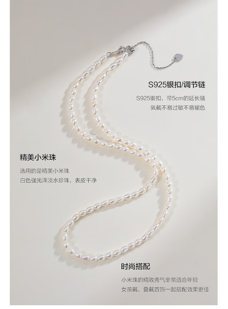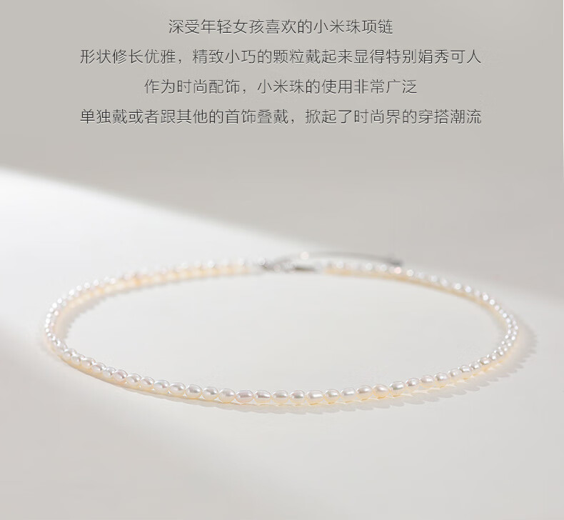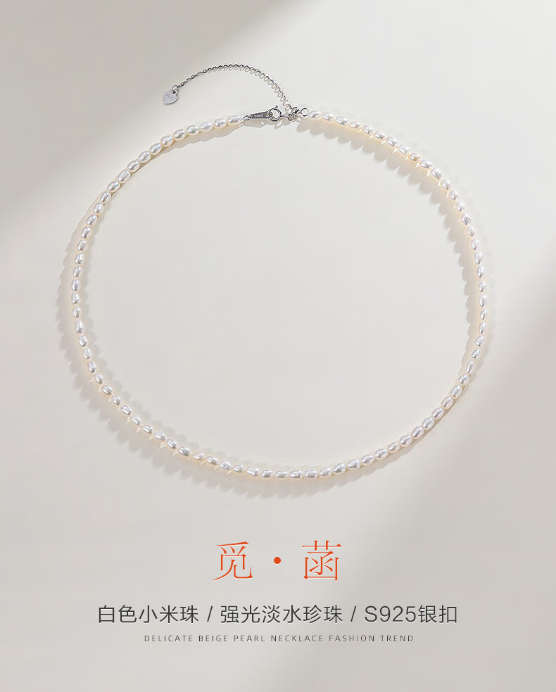 海蒂(haidi)3-4mmS925银小米珠淡水珍珠项链送女友礼物年轻款 附证书