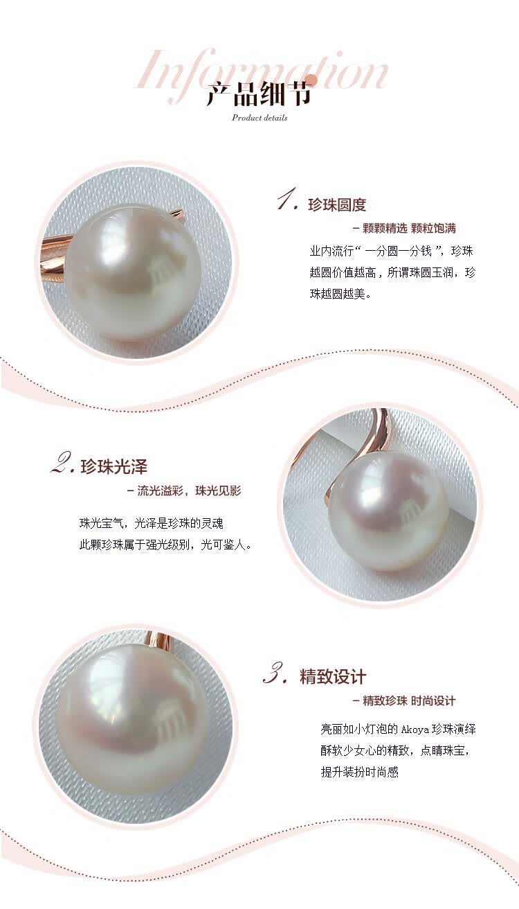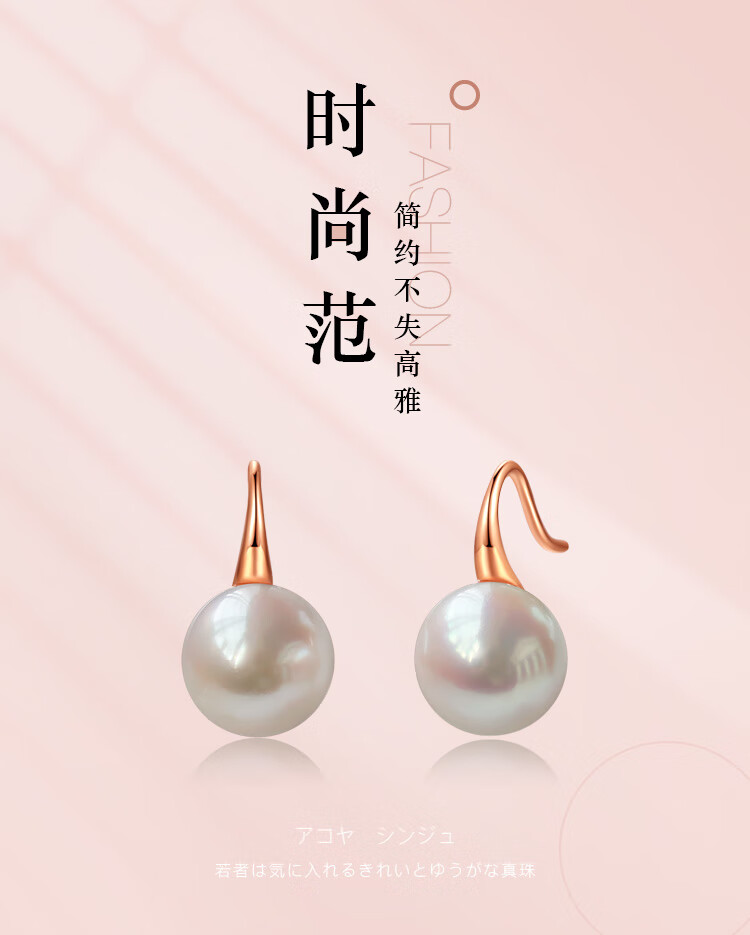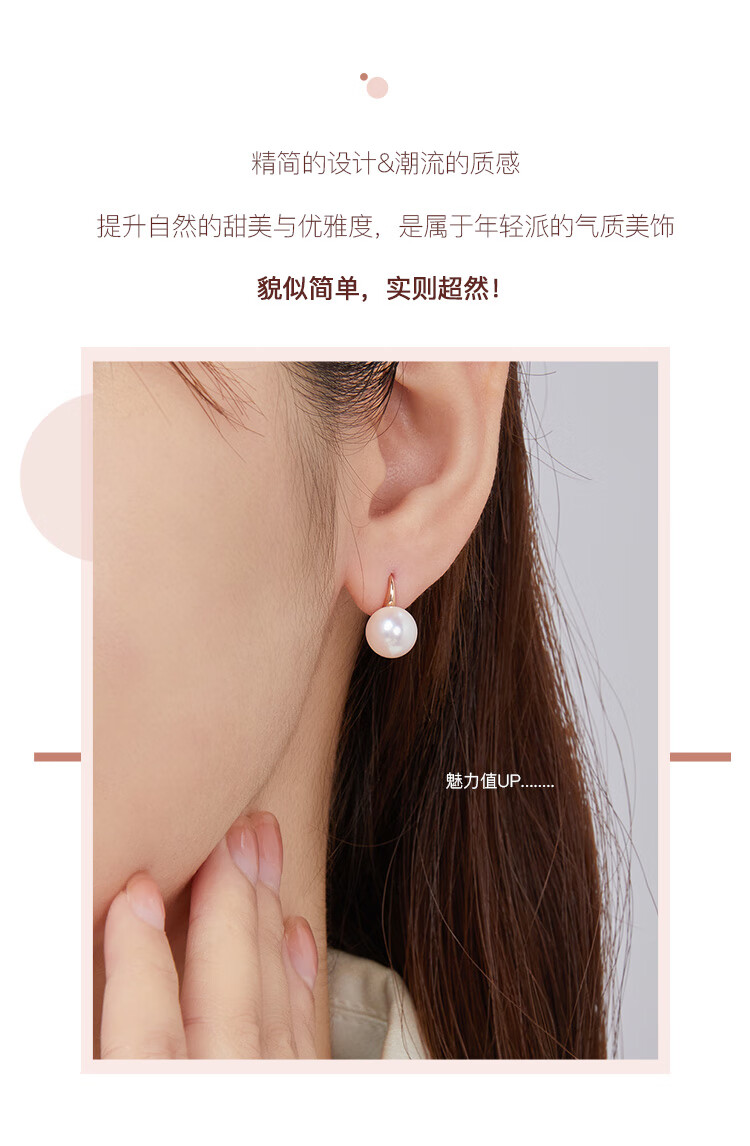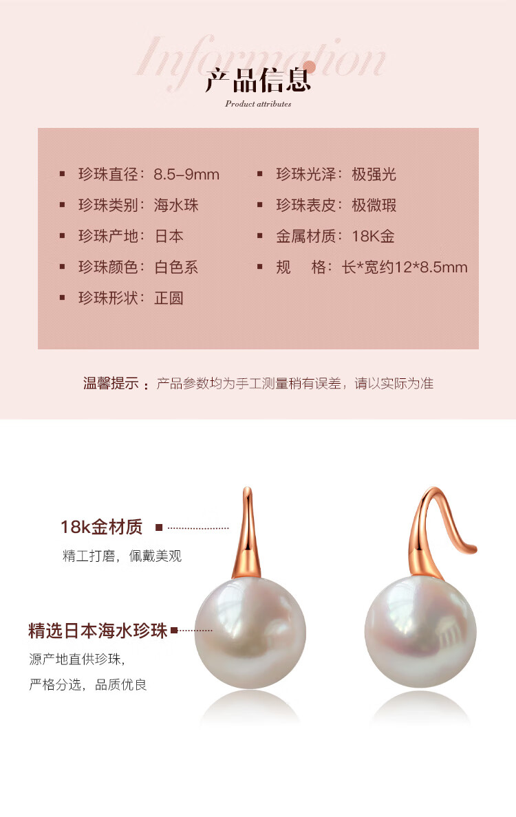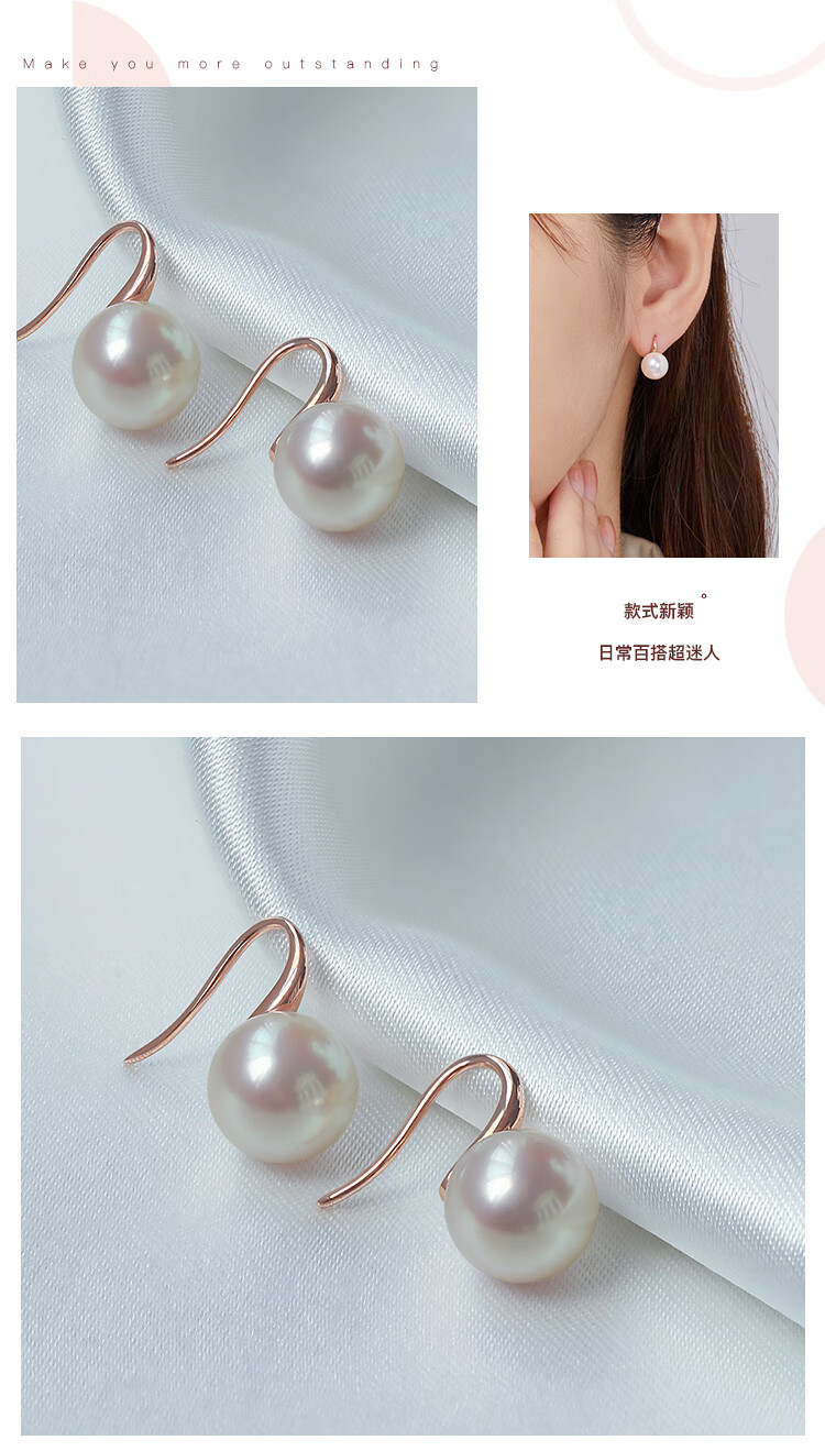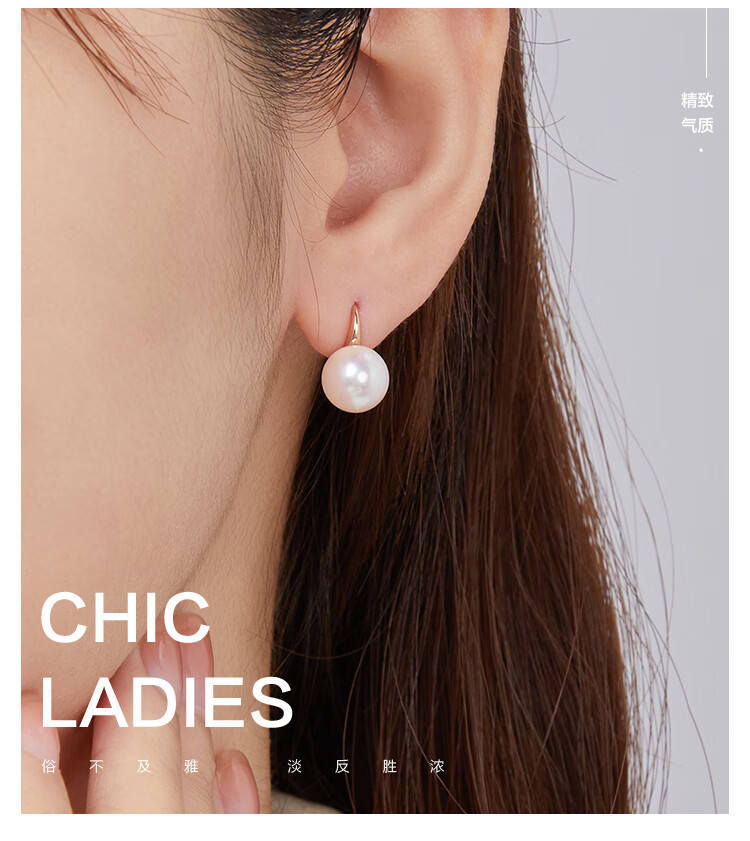 珍珠皇后 18K金珍珠耳饰 日本Akoya8.5-9mm海水珍珠耳环/轻奢职场风