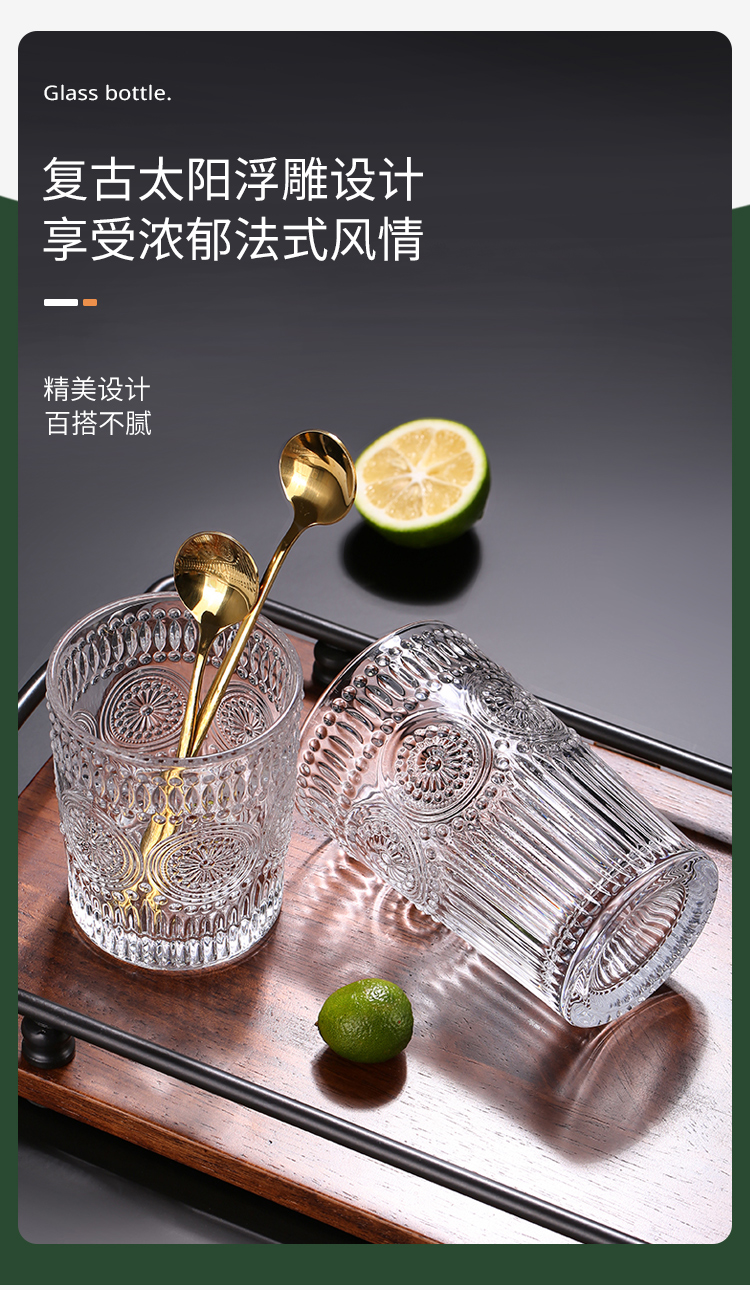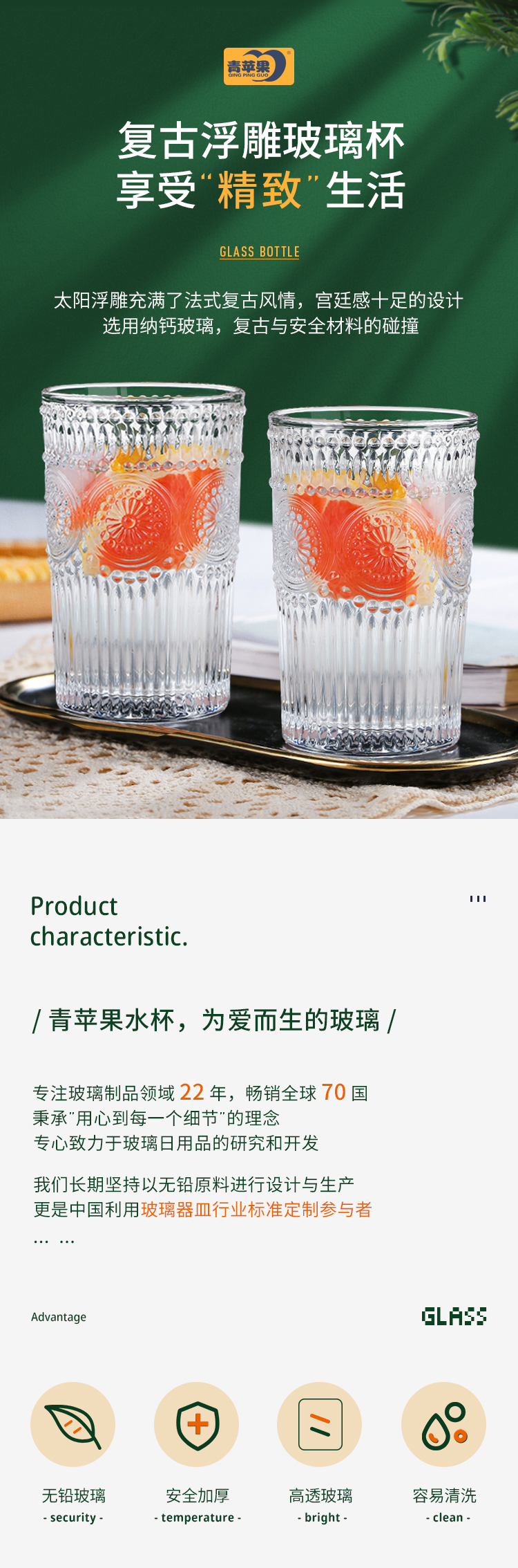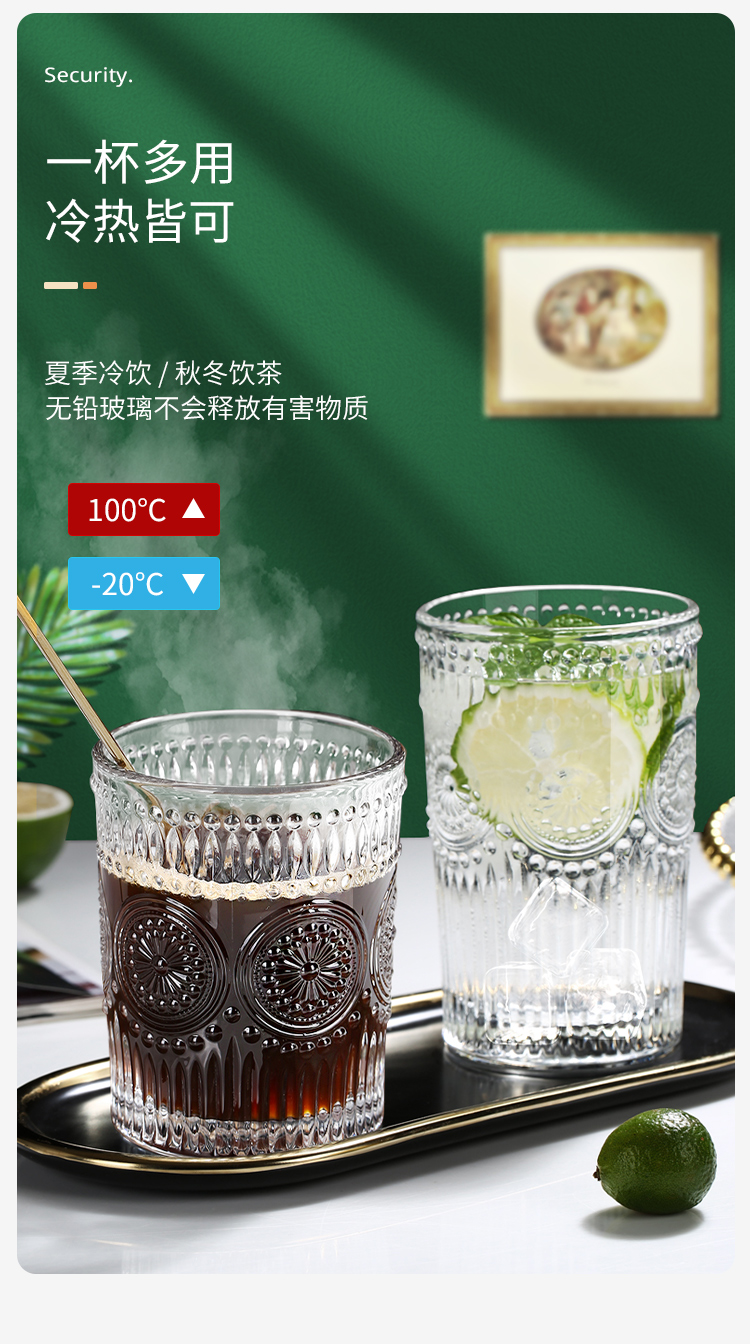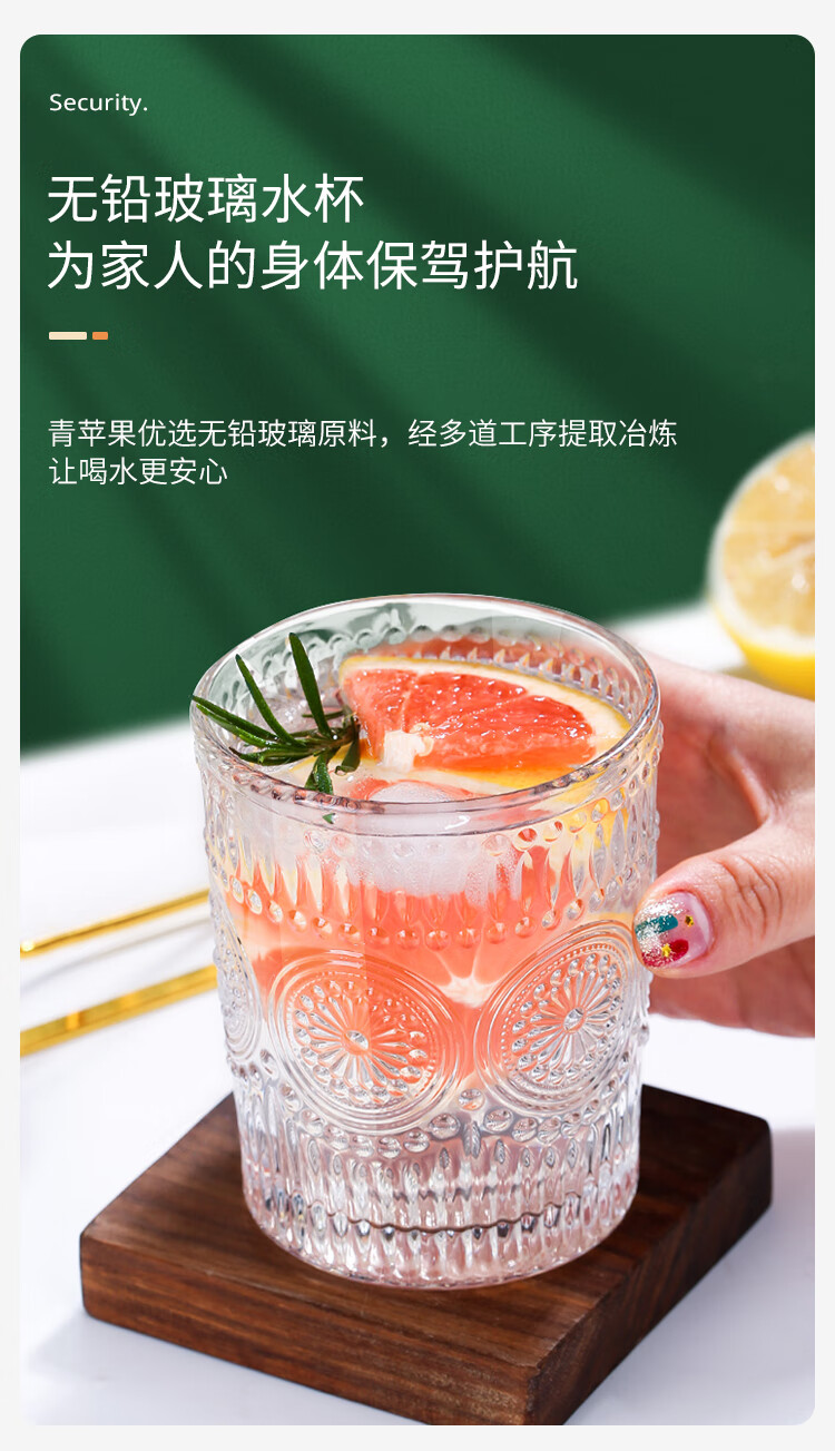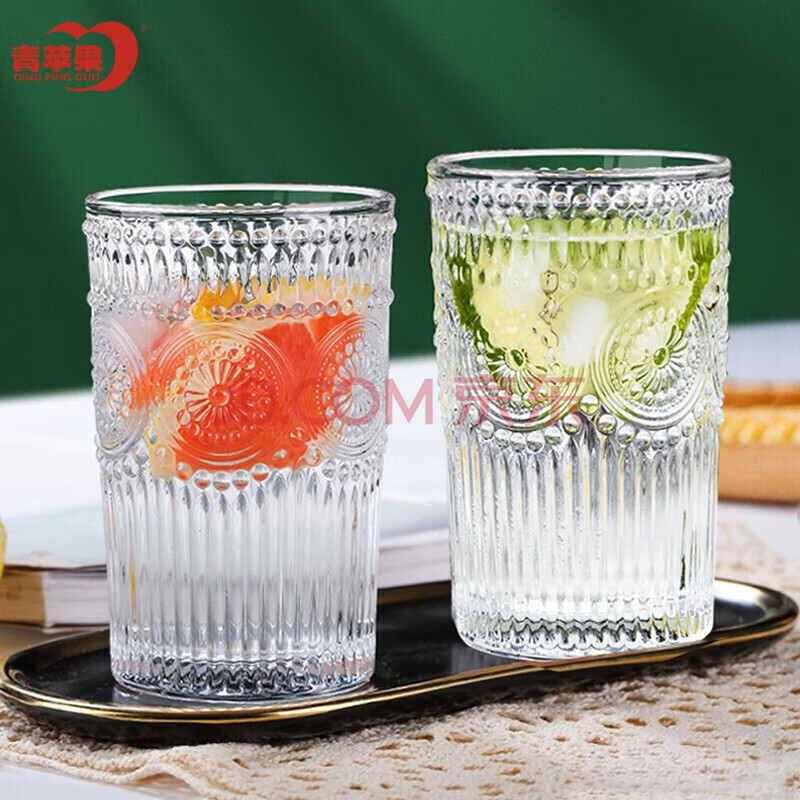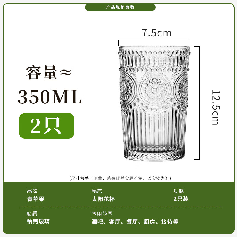 青苹果玻璃杯茶杯水杯牛奶杯耐热玻璃水杯家用杯2只装 350ml