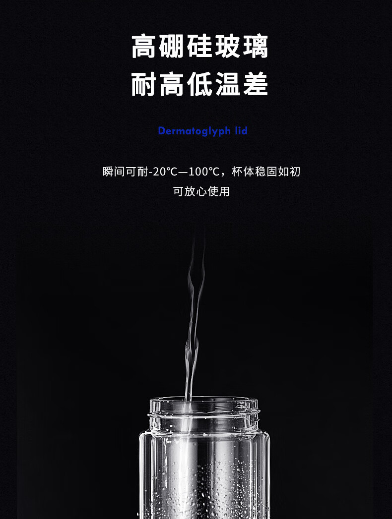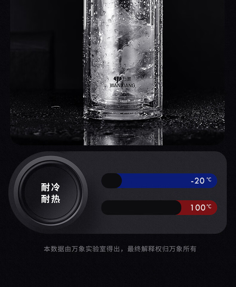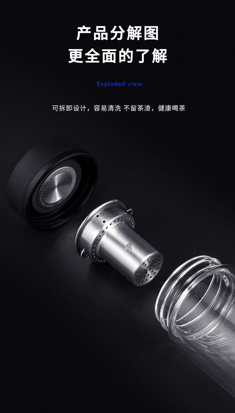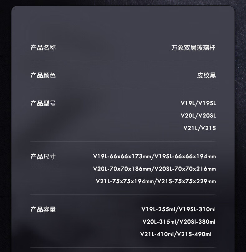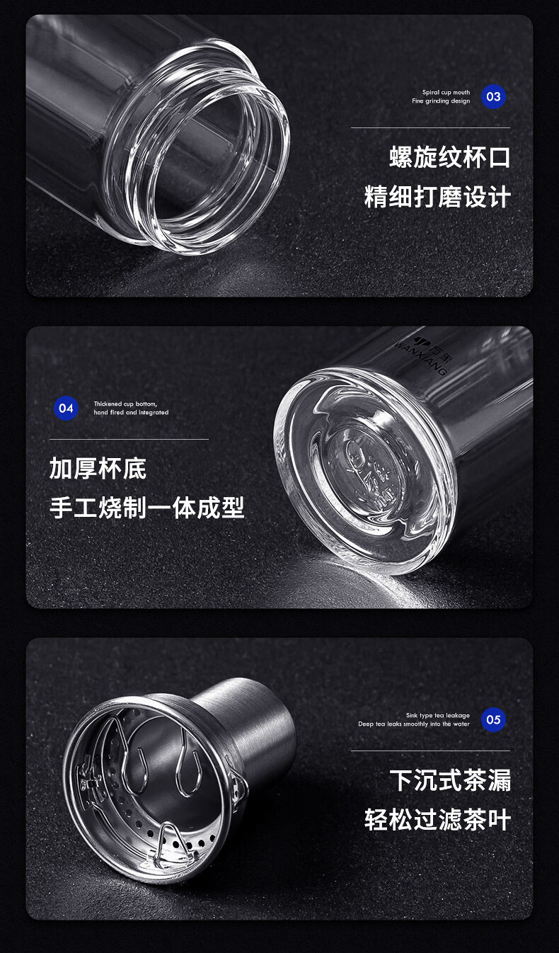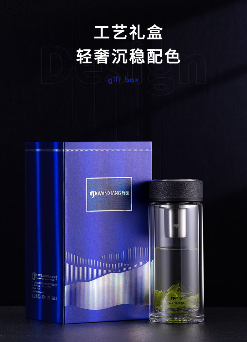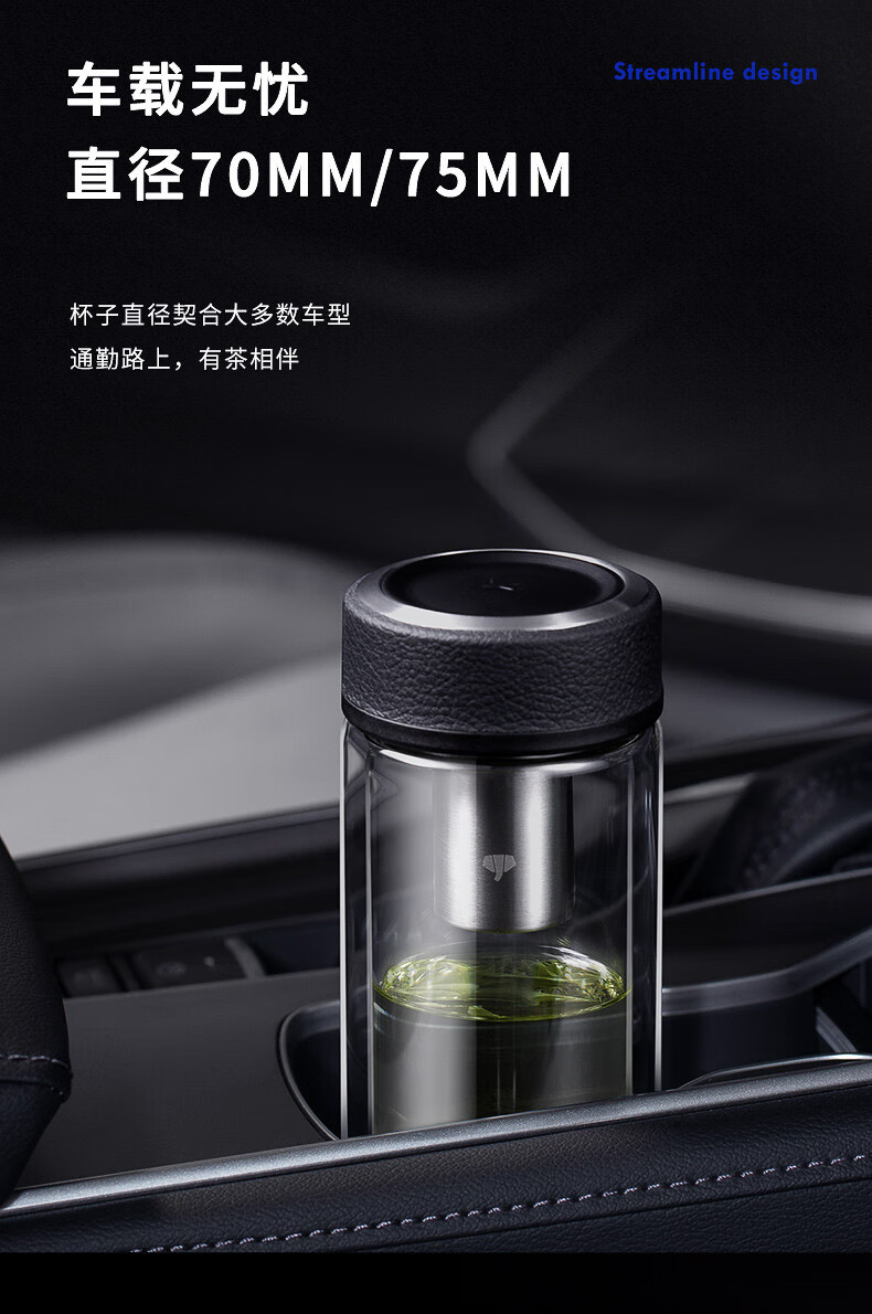 万象(WANXIANG) 玻璃杯商务便携直身办公室双层玻璃杯居家车载耐热带滤网茶杯 V19SL-皮纹黑