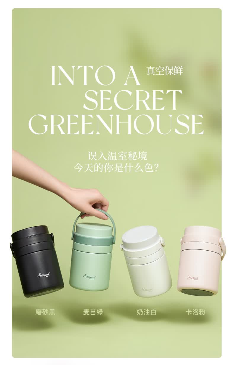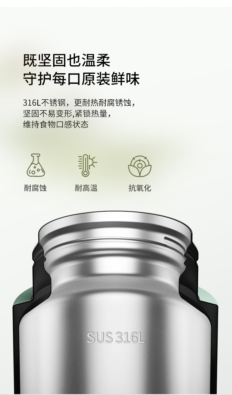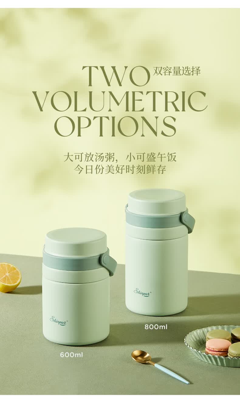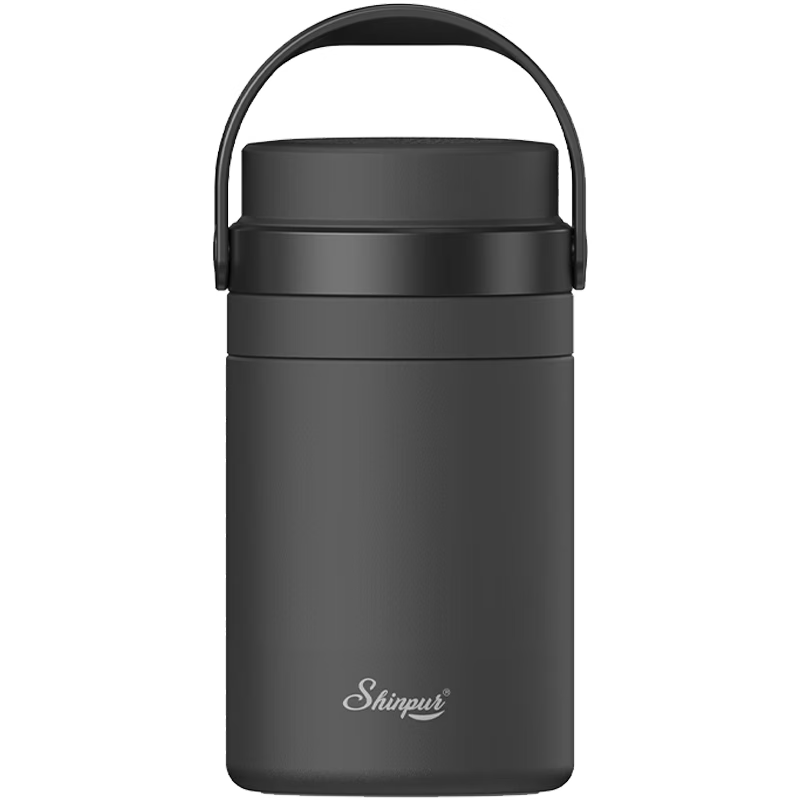 象普(SHINPUR)大容量焖烧杯真空焖烧罐保温焖粥杯手提便携闷烧壶罐 磨砂黑600ML