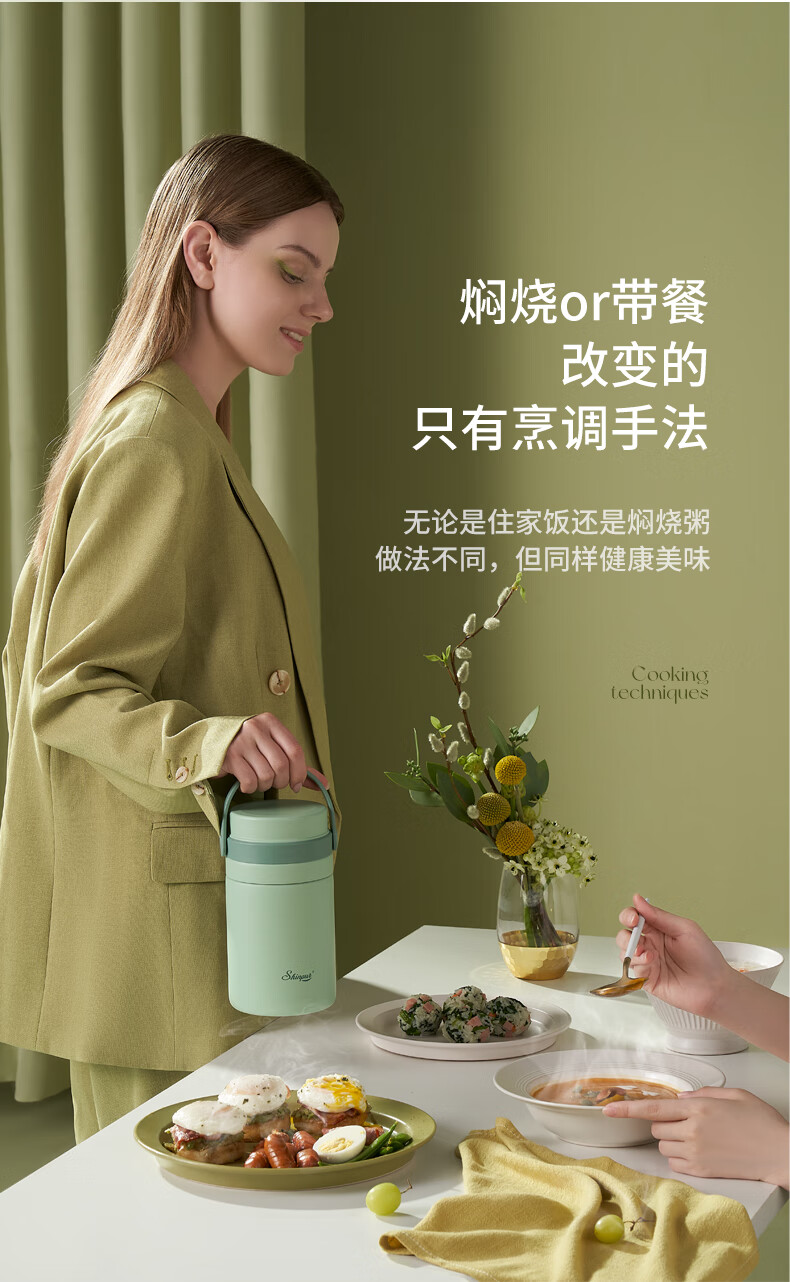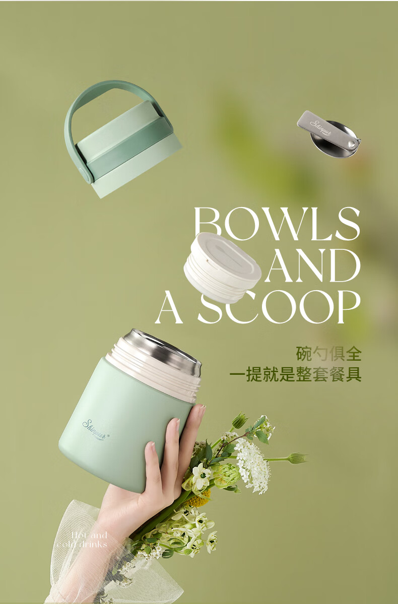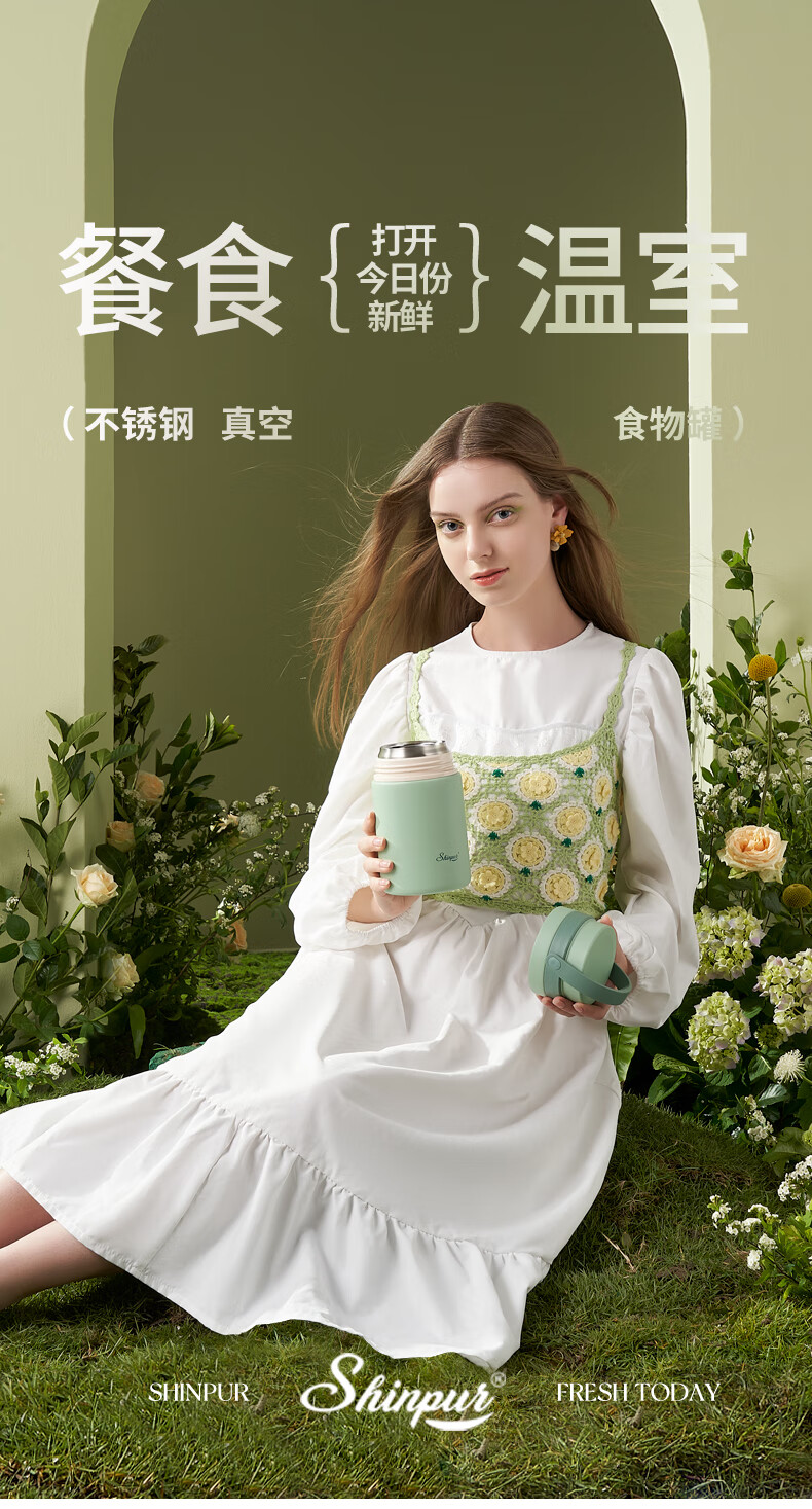 象普(SHINPUR)大容量焖烧杯真空焖烧罐保温焖粥杯手提便携闷烧壶罐 磨砂黑600ML