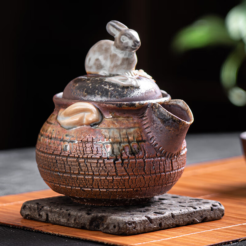 康乐品(KANGLEPIN)张英琪大师瑞兔吉祥宝瓶壶纯手工柴烧手抓壶复古陶瓷泡茶壶抢年货